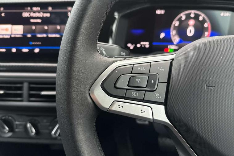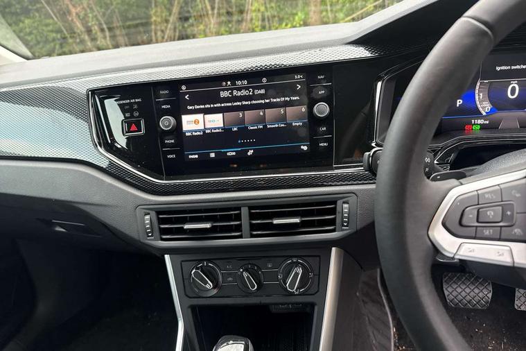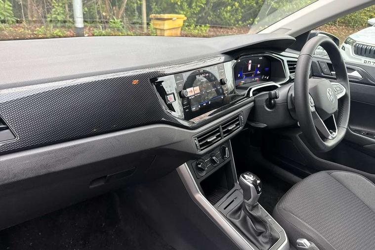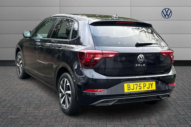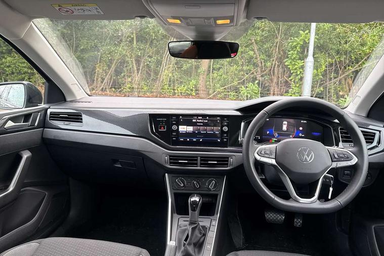 Advanced driver attention and drowsiness monitor, Bluetooth mobile phone interface, Dynamic road sign display, Emergency call service, Mobile phone preparation with inductive charging function, Multifunction front facing camera for distance control, Power assisted speed sensitive steering, Predictive adaptive cruise control without follow-to-stop and speed limiter, Preparation for navigation system with media and internet package, Preparation for We connect and We connect plus, Rear view camera, Speedo and rev counter, electronic odometer, trip, service interval display and exterior temperature gauge, Standard rear axle, Travel Assist - Lane keeping system and traffic jam assist, Travel assist including emergency assist, Trip computer, Warning signal and warning light for front and rear seatbelts not fastened, Washer fluid level indicator, Wireless app connect, Front wheel drive, Rear shock absorpion, Start-stop system with battery regeneration (recuperation - energy recovery during braking), DAB Digital radio, Diversity antenna for FM reception, Automatic dimming interior rear view mirror, Automatic headlight control with LED separate daytime running lights with coming/leaving home function, Body colour bumpers with chrome inserts, Body colour door handles, Body colour door mirrors, Electric front windows, Engine badge deletion, Headlight range adjustment, Heat insulating and laminated safety glass windshield, LED Headlights, LED rear combination lamps, Power folding adjustable/heated exterior mirrors and front passenger exterior mirror lowering function, Rain sensor, Rear electric windows, Rear fog light, Rear side wing doors, Rear tinted glass from B-pillar backwards approx 65% tinted, Rear windscreen washer and wiper with interval delay, Third brake light, 12V power socket in centre console, 2 front and 2 rear reading lights with switch off delay and dimmer, 2 USB-C ports in the front, 2 USB-C charging sockets on the center console in the rear, 3 rear head restraints, 60/40 split folding rear seat and rear seat bench not split, Ceramique roof lining, Chrome plated radiator grille inserts, air vent surrounds and light switch surrounds, Door and side trim panel, Driver and front passenger seat height adjustment, Driver/passenger sunvisors with illuminated vanity mirrors, Front centre armrest, Front seat backrest storage pockets, Front standard seats, Handbrake lever handle in leather, Hartley/Thomas cloth upholstery, Headliner in recycled material, Isofix child seat preparation easy-fit (for two outer rear seats, and front passenger seat) compatible with I-size, Leather trimmed gear knob, Luggage compartment cover, Luggage compartment lighting, Removable luggage compartment floor, Single front passenger seat, Standard climatic zones, Standard pedal cluster, Three spoke leather wrapped multifunction steering wheel with shifting paddles, Light and vision pack - Polo, 3 point height adj front seatbelts + pretensioners, 3 point seat belt for centre rear seat, 3 point seatbelts, outer rear with ECE lable, ABS, Driver and front passenger airbag with front passenger airbag deactivation, Drivers and front passengers safety optimised head restraints, ESC (Electronic stability control) + EDL (Electronic Differntial lock) and ASR (Traction control), Extended and predictive pedestrian/ cyclist protection, Front assist with autonomous emergency braking (for Adaptive Cruise Control ACC up to 130 mph), Front curtain and side airbags with center airbag, Front disc brakes, Hill hold control, Manual child lock in rear doors, Rear drum brakes, Single tone horn, Tyre pressure loss indicator, Alarm with interior protection, Anti-theft alarm system with interior monitoring, backup horn, and towing protection, Anti-theft wheel bolts, Electronic engine immobiliser, Lava stone black gloss/matt decorative inserts in dash and front door panels, 16" Torsby alloy wheels, Low rolling resistance tyres,