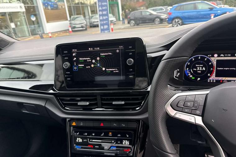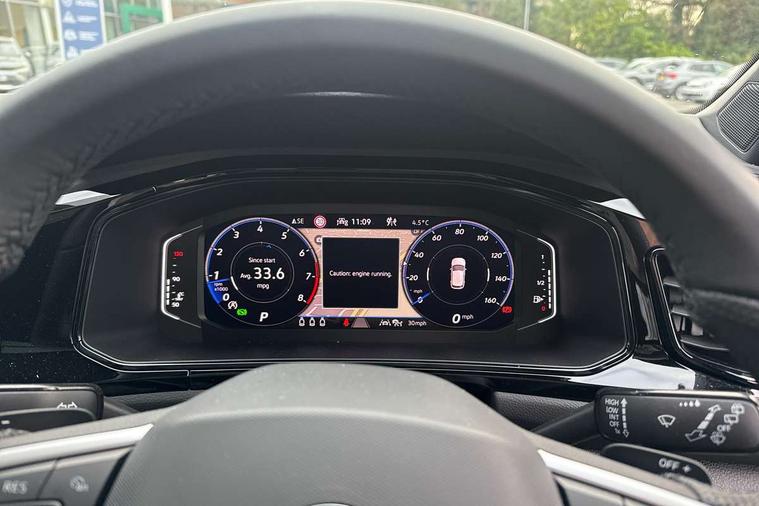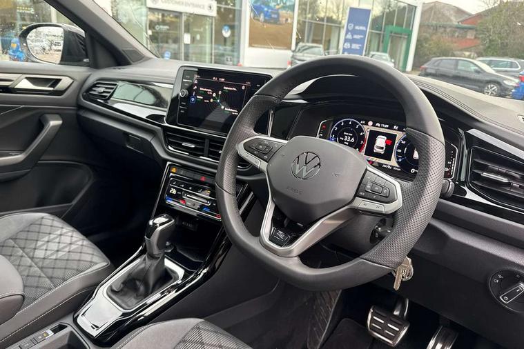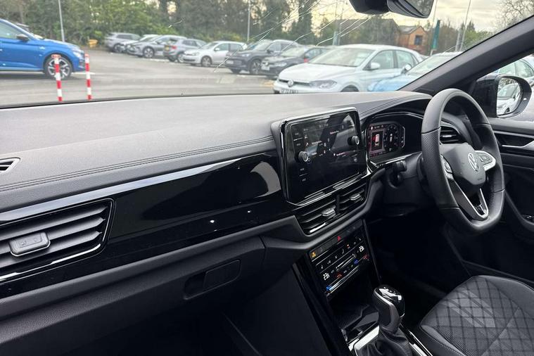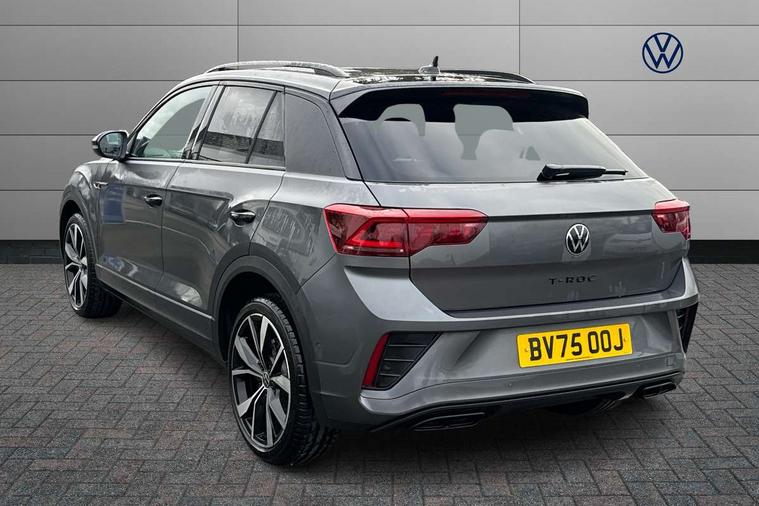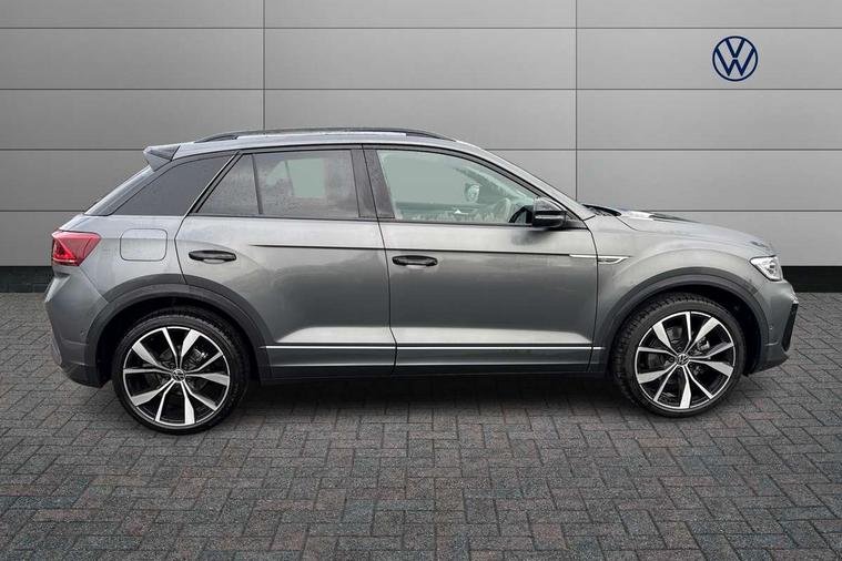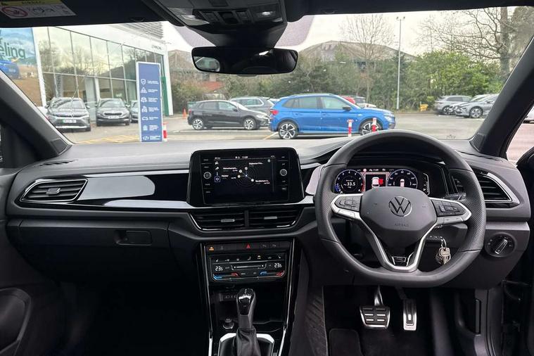 10.25" Digital cockpit pro, Advanced driver attention and drowsiness monitor, Emergency call service, Lane keeping system Lane Assist, Mobile phone interface, Modified key software - reduce switch off time for key status change to Long no motion, Online services, Park assist including front and rear parking sensors, Power assisted speed sensitive steering, Service interval indicator, Tailgate/trunk lid release from outside, Think blue trainer driver tips and journey analysis, Warning sound and light for front seatbelts unfastened, Wireless app connect, Battery regeneration during braking, Rear shock absorption chassis with increased ride height, Start/stop function with battery regeneration, DAB Digital radio, Diversity antenna for FM reception, Front and rear 6 speakers, Music playback - MP3, WMA and AAC files, Premium USB cable in choice of either Apple or Android smartphone compatibility, SD card slot, Simultaneous pairing of 2 compatible mobile devices, Title and cover art display, We Connect and We Connect Plus functionality, Auto dimming interior rear view mirror, Automatic hazard lights activation under emergency braking, Automatic headlight control with LED separate daytime running lights with coming/leaving home function, Dynamic cornering light, Electrically adjustable and heated door mirrors, Extended roof spoiler, Exterior mirrors aspherical on driver side, convex on front passenger side, External USB type C socket and charging sockets, Front windscreen wiper with intermittent wipe and 4 position delay, Heated rear window, Illuminated front grille, IQ LED matrix headlights, LED 3rd brake light, LED rear number plate lights, LED rear tail lights with dynamic turn signal, Light mode for poor weather, rain, fog or snow, Power windows with comfort operation and circuit breaker, R-Line design body coloured bumpers, Rain sensor, Rear exhaust tailpipe, Rear fog light on one side and reversing lights on both sides, Rear side wing doors, Rear wash/wipe with intermittent wipe setting, Remote electrically foldable door mirrors, puddle lights and reverse activated passenger's door mirror, 12V power socket in centre console, 3 rear head restraints, 3 seat bench in 2nd row, 4 load lashing points in luggage compartment, Air care climatronic air conditoning system with active combination filter and 2-zone temperature control, Artvelours cloth upholstery, Black roof lining, Chrome plated radiator grille inserts, air vent surrounds and light switch surrounds, Door and side trim panel with leatherette insert, Drawer under drivers seat, Driver seat height adjust, Driver's seat lumbar support, Front + rear carpet mats, Front centre armrest, Front comfort sports seats, Front cupholders x 2, Front footwell illumination, Front reading light, Front scuff plates with R Line logo, Front seat back storage pockets, Glove compartment door with light, Instrument lighting, white adjustable panel illumination, Interior ambient lighting and surround lighting, Interior light delay, Isofix child seat preparation, Leather gearshift handle, Leather wrapped multifunction steering wheel with paddle shift, Load-through provision with cup holder when folded down ('Unsplit rear seat bench, split folding backrest, with centre armrest), Luggage compartment lighting, Non-folding front passenger seat backrest, Passenger seat height adjuster, Passenger seat lumbar support, Single front passenger seat, Stainless steel pedals, Storage compartment in left and right luggage area, Storage compartment in rear doors, Storage compartments in driver and front passenger doors, Sunvisors with illuminated vanity mirrors, Variable boot floor, height adjustable and removable, Winter pack without heated windscreen washer jets - T-Roc, 3 point height adj front seatbelts + pretensioners, 3 point seatbelts in outer rear with ECE label, ABS, Child locks on rear doors, City emergency braking and pedestrian monitoring, Driver and front passenger airbag with front passenger airbag deactivation, Driver and front passenger safety-optimised head restraints, Drivers seatbelt reminder, Electronic parking brake, Electronic Stability Control (ESC) inc EDL (Electronic Differential Lock) and ASR (Traction Control), Front and rear passengers curtain airbag system including front side airbags, Front disc brakes, Hill start assist, Predictive pedestrian protection, Rear disc brakes, Two tone horn, Tyre pressure loss indicator, Volkswagen roadside assistance, Tool kit, Trims for alloy wheels, Tyre mobility kit including compressor and sealing foam,