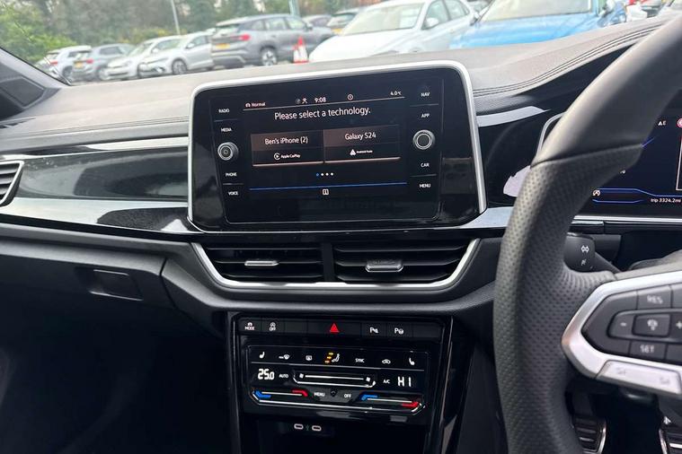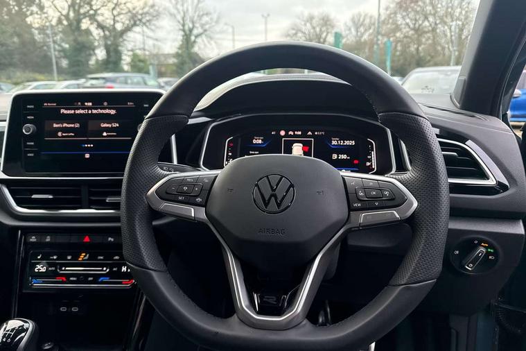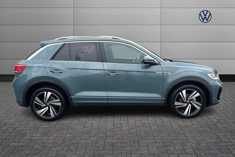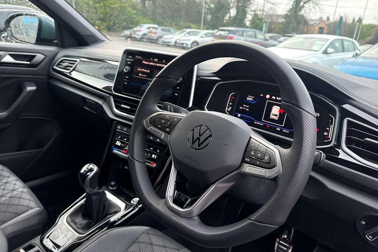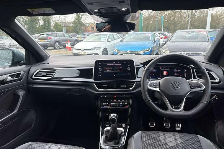 10.25" Digital cockpit pro, Advanced driver attention and drowsiness monitor, Emergency call service, Lane keeping system Lane Assist, Mobile phone interface, Modified key software - reduce switch off time for key status change to Long no motion, Online services, Park assist including front and rear parking sensors, Service interval indicator, Tailgate/trunk lid release from outside, Think blue trainer driver tips and journey analysis, Warning sound and light for front seatbelts unfastened, Wireless app connect, Battery regeneration during braking, Start/stop function with battery regeneration, DAB Digital radio, Diversity antenna for FM reception, Front and rear 6 speakers, Music playback - MP3, WMA and AAC files, Premium USB cable in choice of either Apple or Android smartphone compatibility, SD card slot, Simultaneous pairing of 2 compatible mobile devices, Title and cover art display, We Connect and We Connect Plus functionality, Auto dimming interior rear view mirror, Automatic hazard lights activation under emergency braking, Automatic headlight control with LED separate daytime running lights with coming/leaving home function, Body coloured exterior mirror housings and door handles, Electrically adjustable and heated door mirrors, Extended roof spoiler, Exterior mirrors aspherical on driver side, convex on front passenger side, External USB type C socket and charging sockets, Front windscreen wiper with intermittent wipe and 4 position delay, Heated rear window, LED 3rd brake light, LED rear combination lamps, LED rear number plate lights, Power windows with comfort operation and circuit breaker, Privacy glass for rear side windows and rear window, R-Line design body coloured bumpers, Rain sensor, Rear exhaust tailpipe, Rear fog light on one side and reversing lights on both sides, Rear side wing doors, Rear wash/wipe with intermittent wipe setting, Remote electrically foldable door mirrors, puddle lights and reverse activated passenger's door mirror, 12V power socket in centre console, 3 rear head restraints, 3 seat bench in 2nd row, 4 load lashing points in luggage compartment, Air care climatronic air conditoning system with active combination filter and 2-zone temperature control, Black roof lining, Chrome plated decorative trims, Chrome plated radiator grille inserts, air vent surrounds and light switch surrounds, Door and side trim panel with leatherette insert, Front + rear carpet mats, Front centre armrest, Front cupholders x 2, Front footwell illumination, Front reading light, Front scuff plates with R Line logo, Front seat back storage pockets, Glove compartment door with light, Instrument lighting, white adjustable panel illumination, Interior ambient lighting and surround lighting, Interior light delay, Isofix child seat preparation, Leather gearshift handle, Load-through provision with cup holder when folded down ('Unsplit rear seat bench, split folding backrest, with centre armrest), Luggage compartment lighting, Single front passenger seat, Stainless steel pedals, Storage compartment in left and right luggage area, Storage compartment in rear doors, Storage compartments in driver and front passenger doors, Sunvisors with illuminated vanity mirrors, Variable boot floor, height adjustable and removable, Driver assistance pack without proactive passenger protection - T-Roc, 3 point height adj front seatbelts + pretensioners, 3 point seatbelts in outer rear with ECE label, ABS, Child locks on rear doors, City emergency braking and pedestrian monitoring, Driver and front passenger airbag with front passenger airbag deactivation, Driver and front passenger safety-optimised head restraints, Drivers seatbelt reminder, Electronic parking brake, Electronic Stability Control (ESC) inc EDL (Electronic Differential Lock) and ASR (Traction Control), Front and rear passengers curtain airbag system including front side airbags, Hill start assist, Predictive pedestrian protection, Rear disc brakes, Two tone horn, Tyre pressure loss indicator, Volkswagen roadside assistance, Piano black decorative inserts in dashboard and front door trim panels, Trims for alloy wheels,