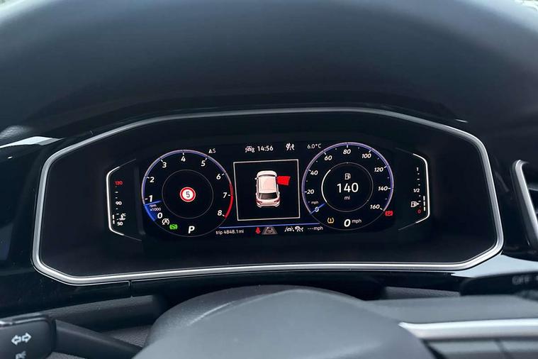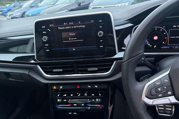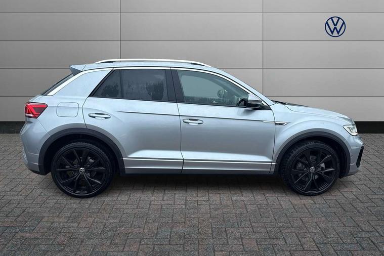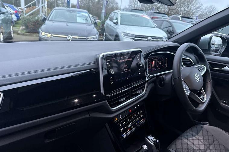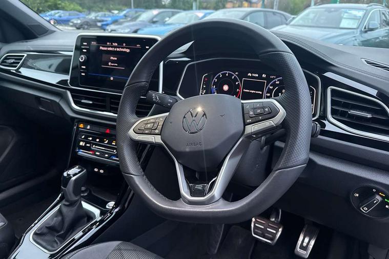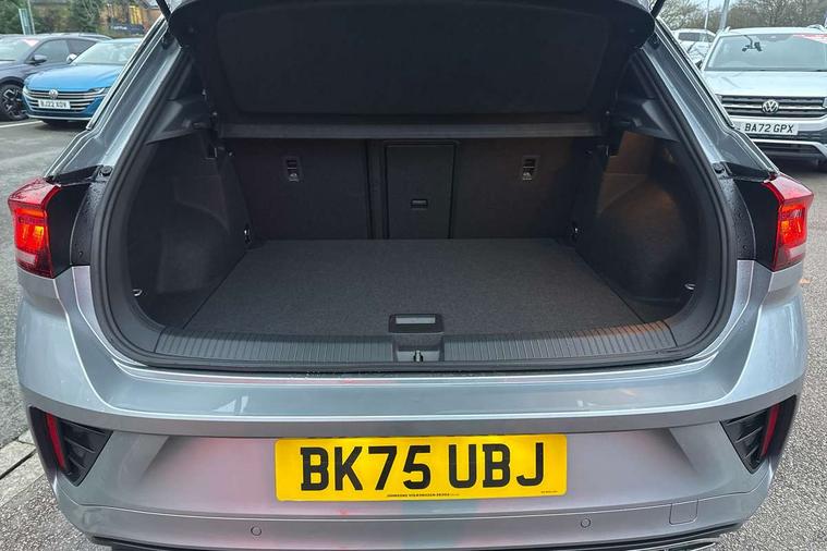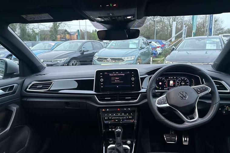 10.25" Digital cockpit pro, Advanced driver attention and drowsiness monitor, Emergency call service, Lane keeping system Lane Assist, Mobile phone interface, Modified key software - reduce switch off time for key status change to Long no motion, Online services, Park assist including front and rear parking sensors, Service interval indicator, Tailgate/trunk lid release from outside, Think blue trainer driver tips and journey analysis, Warning sound and light for front seatbelts unfastened, Wireless app connect, Battery regeneration during braking, Start/stop function with battery regeneration, DAB Digital radio, Diversity antenna for FM reception, Front and rear 6 speakers, Music playback - MP3, WMA and AAC files, Premium USB cable in choice of either Apple or Android smartphone compatibility, SD card slot, Simultaneous pairing of 2 compatible mobile devices, Title and cover art display, We Connect and We Connect Plus functionality, Auto dimming interior rear view mirror, Automatic hazard lights activation under emergency braking, Automatic headlight control with LED separate daytime running lights with coming/leaving home function, Body coloured exterior mirror housings and door handles, Electrically adjustable and heated door mirrors, Extended roof spoiler, Exterior mirrors aspherical on driver side, convex on front passenger side, External USB type C socket and charging sockets, Front windscreen wiper with intermittent wipe and 4 position delay, Heated rear window, LED 3rd brake light, LED rear combination lamps, LED rear number plate lights, Power windows with comfort operation and circuit breaker, Privacy glass for rear side windows and rear window, R-Line design body coloured bumpers, Rain sensor, Rear exhaust tailpipe, Rear fog light on one side and reversing lights on both sides, Rear side wing doors, Rear wash/wipe with intermittent wipe setting, Remote electrically foldable door mirrors, puddle lights and reverse activated passenger's door mirror, 12V power socket in centre console, 3 rear head restraints, 3 seat bench in 2nd row, 4 load lashing points in luggage compartment, Air care climatronic air conditoning system with active combination filter and 2-zone temperature control, Black roof lining, Chrome plated decorative trims, Chrome plated radiator grille inserts, air vent surrounds and light switch surrounds, Door and side trim panel with leatherette insert, Front + rear carpet mats, Front centre armrest, Front cupholders x 2, Front footwell illumination, Front reading light, Front scuff plates with R Line logo, Front seat back storage pockets, Glove compartment door with light, Instrument lighting, white adjustable panel illumination, Interior ambient lighting and surround lighting, Interior light delay, Isofix child seat preparation, Leather gearshift handle, Load-through provision with cup holder when folded down ('Unsplit rear seat bench, split folding backrest, with centre armrest), Luggage compartment lighting, Single front passenger seat, Stainless steel pedals, Storage compartment in left and right luggage area, Storage compartment in rear doors, Storage compartments in driver and front passenger doors, Sunvisors with illuminated vanity mirrors, Variable boot floor, height adjustable and removable, Driver assistance pack without proactive passenger protection - T-Roc, 3 point height adj front seatbelts + pretensioners, 3 point seatbelts in outer rear with ECE label, ABS, Child locks on rear doors, City emergency braking and pedestrian monitoring, Driver and front passenger airbag with front passenger airbag deactivation, Driver and front passenger safety-optimised head restraints, Drivers seatbelt reminder, Electronic parking brake, Electronic Stability Control (ESC) inc EDL (Electronic Differential Lock) and ASR (Traction Control), Front and rear passengers curtain airbag system including front side airbags, Hill start assist, Predictive pedestrian protection, Rear disc brakes, Two tone horn, Tyre pressure loss indicator, Volkswagen roadside assistance, Piano black decorative inserts in dashboard and front door trim panels, Trims for alloy wheels,