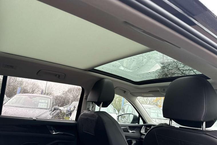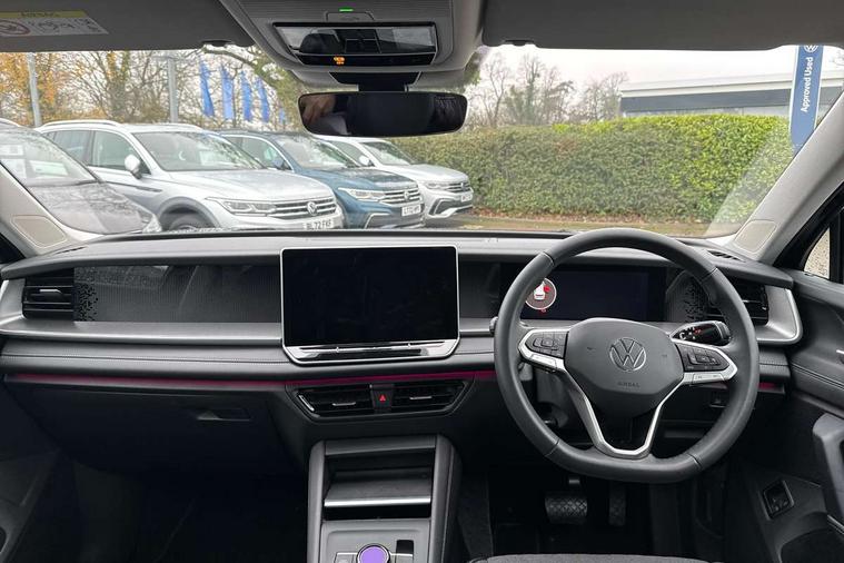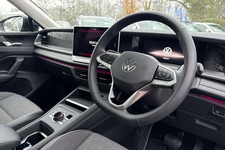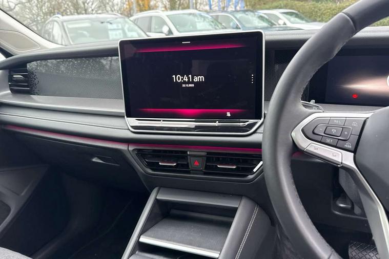 Adaptive cruise control (ACC), Digital Cockpit Pro - 10.25" high resolution dash display screen with customisable menus and information, Driver alert system, Driver attention monitoring system, Dynamic road sign display, E-Sim card for online connectivity, eCall emergency call system, Lane change system, Side assist, Rear traffic alert and Exit warning system, Multifunction front facing camera, Oncoming vehicle braking when turning including swerve support, Power assisted steering with speed sensitive, Start/stop system with regenerative braking, Voice activation spoken voice commands for telephone and navigation system, Warning signal and warning light for front and rear seatbelts not fastened, Wireless App-Connect, Adaptive chassis control DCC pro includes driving mode selection, Charging cable Mode 2 Type 2 / G (10A), Charging cable Mode 3 Type 2 / 3 (16A), Front shock absorption G08, Front wheel drive, Rear shock absorption, Digital radio reception (DAB), Diversity antenna for FM reception, Auto dimming interior rear view mirror, Automatic headlight control system, Body colour door handles, Body-coloured exterior mirror housings, Chrome moldings on the side windows, Comfort bumpers, Coming/leaving home lighting function, Exterior mirrors convex on the left and aspherical on the right, Heat insulating glass in side and rear windows, Laminated safety glass windshield, heat insulating, LED 3rd brake light, Puddle lights, Rain sensor windscreen wipers, Rear fog light on one side, reversing light on both sides, Rear side wing doors, Rear wiper, Reverse activated passenger's door mirror, Surround lighting with welcome light, Tilting and sliding panoramic sunroof with rear panoramic sunroof, 12V outlet in center console rear and in luggage compartment, 3 rear headrests, 3 rear seat bench in 2nd row, split folding, longitudinally movable and folding with load-through hatch, Carpet mats, front and rear, Centre console with illuminated storage compartment with sliding cover and two drinks holders, Door and side trim panel with leatherette insert, Flat luggage compartment floor, Front centre armrest, ISOFIX anchors for child seats on outer rear seats and front passenger seat compatible with i-Size, Mechanical rear seat release, Power adjustable lumbar support in front, Single front passenger seat, Sun visors with illuminated vanity mirrors, Comfort package with park assist pro - Tayron, 3 Point seat belts in front with pretensioners, 3 point seatbelts in outer rear with ECE label, Autonomous emergency braking front assist with pedestrian and cyclist monitoring, Driver and front passenger airbag with front passenger airbag deactivation, Electronic parking brake with auto hold, First aid kit with warning triangle and safety vest, Front and rear curtain airbags, Front and rear side airbags, Front centre airbag, Front disc brakes, Hill start assist, Rear disc brakes, Two tone horn, Decorative material set, Tool kit for tyre mobility set, Tyre mobility kit including compressor and sealing foam. In lieu of spare wheel,