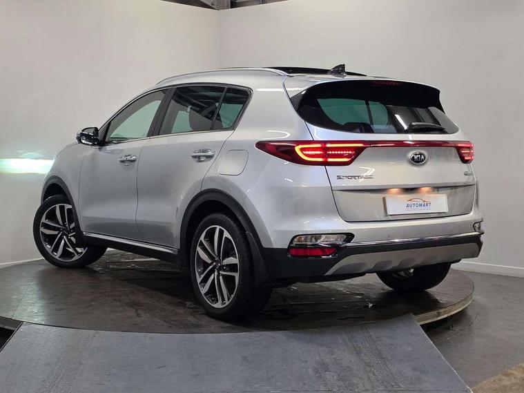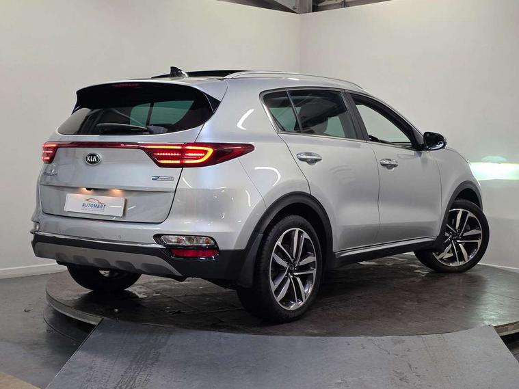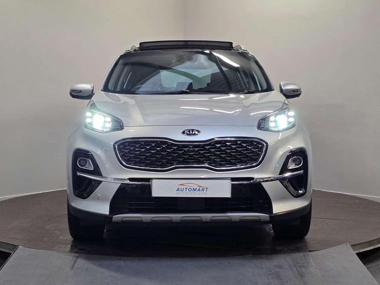 360 degree around view monitor, 4.2" supervision colour cluster display, 8" touchscreen satellite navigation with European mapping and traffic messaging channel, Android auto with voice control, Apple car play with voice control, Blind spot collision warning, Bluetooth connectivity with voice control, Cruise control + speed limiter, Driver attention warning, Emergency stop signalling system, Forward collision avoidance assist, Front parking sensor, Kia connected services featuring TomTom live, Lane keep assist, Rear parking sensor, Reversing camera, Speed limit information, Speed sensitive power steering, Trip computer, Windscreen washer level indicator, Intelligent Stop and Go, Bluetooth audio streaming, DAB Radio with MP3, JBL Premium sound system with 8 speakers, external amp, subwoofer and front centre speaker, Rear USB port, Steering wheel mounted audio controls, USB/iPod/auxiliary input connections, All round electric windows with drivers auto up/down function, Auto dimming rear view mirror, Automatic headlights, Automatic lighting control, Black wheel arch body mouldings and side sills with chrome insert, Body colour door handles with chrome inserts, Body colour door mirrors, Chrome front bumper insert, Chrome grille surround, Chrome window surround, EcoDynamics + Badge, Electric panoramic glass sunroof (Electric one touch with safety function), Electrically adjustable/heated/folding door mirrors with LED indicators, Front wiper de-icer, High beam assist, High gloss black diamond mesh radiator grille, LED Bi-Function headlights, LED daytime running lights, LED rear lights, Privacy glass (rear side windows and rear screen), Projection front fog lights, Rain sensing front wipers, Rear spoiler, Rear wiper, Roof rails, Shark fin antenna, Silver painted front and rear skid plates, Speed sensitive front wipers, Tinted glass, Trailer stability assist, Welcome and follow-me home light functionality, Wide view drivers door mirror, Windscreen wiper de-icer, 10 way driver/8 way passenger electrically power adjustable seats, 12V power in front and rear centre console, 3 x passenger assist grips, 60/40 split folding rear seat, Air filter, All-round height adjustable headrests, Aluminium door scuff plates, Centre console storage box, Door armrest in leather, Driver and front passenger side sunvisors with illuminated vanity mirrors, Drivers seat power lumbar support, Dual zone automatic air conditioning, Front and rear door storage, Front cabin LED map light with sunglasses case, Front door courtesy reflectors, Front seat and rear pockets, Front/rear centre armrests, Gear shift indicator, Glovebox illumination, Heated front and outer rear seats, Heated steering wheel, Interior door lock/unlock function, ISOFIX Child seat top tethers and anchor fixings, Leather steering wheel, Leather trimmed gearshift, Leather upholstery, Light grey headlining, Luggage area LED light, Luggage area load cover, Luggage net with hooks, Rear centre armrest with cupholder, Rear coat hooks, Satin chrome interior door handles, Side cabin LED lights, Tilt/telescopic adjustable steering wheel, Ventilation ducts to rear compartment, Active front headrests, All round 3-point seatbelts, Anti-lock braking system with electronic brakeforce distribution, Dual front side airbags, Electronic parking brake, Electronic stability control with downhill brake control, ESP + traction control, Front passenger airbag cut-off switch, Front seatbelt pretensioners + load limiters, Height adjustable front seatbelts, Hill start assist control (HAC), Impact sensing auto door unlocking, Rear door child safety locks, Twin curtain airbags with roll over sensor, Twin front airbags, Tyre pressure monitoring system, Advanced anti-theft system including immobiliser and alarm, Door deadlocks, Engine Start/Stop Button with Smart Entry System, Locking wheel nuts, Speed sensitive auto door locking, Visible vehicle identification number, High gloss black centre fascia, 19" Alloy wheels, Tyre mobility kit,