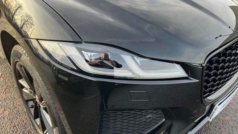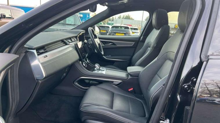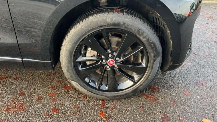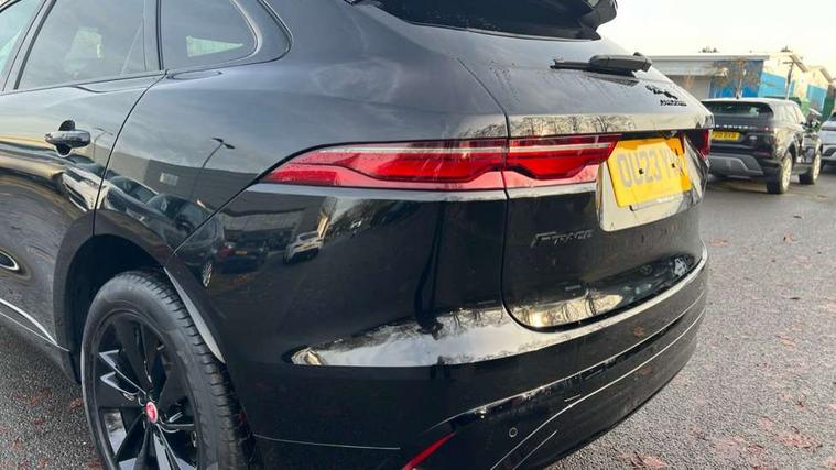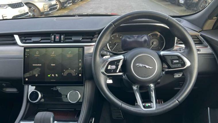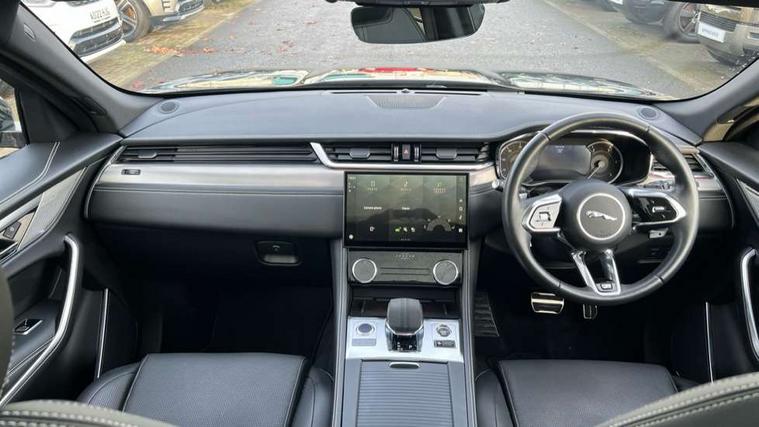 11.4" touchscreen, Android Auto, Apple car play, Blind spot assist, Bluetooth connectivity, Clear exit monitor, Driver alert system, Driver condition monitor, eCall emergency call system, Eco driving style assistant, Electric power assisted steering, InControl remote, Jaguar Toggle shift selector, Lane departure warning system, Lane keep assist, Outside temperature gauge, Personalisation profile management, Pivi pro connected navigation system with app interface and media storage, Pro services and wifi hotspot, Push button starter, Rear traffic monitor, Service interval indicator, Speed proportional steering, Start up sequence with movement in dials and lighting, Traffic sign recognition with adaptive speed limiter, Trip computer, Voice control system, 8 speed automatic transmission, All terrain progress control, All Wheel Drive (AWD), Open differential with torque vectoring by braking, AM/FM radio, Bluetooth streaming, DAB Radio (Digital Audio Broadcasting), Dynamic volume control, InControl apps, InControl protect, iPod integration, 3 flash lane change indicators, Animated directional indicators, Approach Illumination, Auto dimming rear view mirror, Automatic headlights, Body colour door mirrors, Electric heated/power fold memory door mirrors with approach lights and auto dimming driver side, Electric windows with one touch open/close and anti trap, F-Pace and R Dynamic badge, Green tinted glass, Heated front windscreen + heated washer jets, Heated rear window with timer, Jaguar script and leaper, LED High level third brake light, LED tail lights, Non acoustic front windscreen, R Dynamic badge on side door, Rain sensor windscreen wipers, Rear fog lights, Rear metal tread plates, Rear side wing doors, Rear wiper, Trailer stability assist, Variable front intermittent wipers, 12V power point front, 3 rear headrests, 3 seat bench in 2nd row, Air distribution speed, Bright metal foot pedals, Centre armrest console, Centre console with side storage, Deletion loadspace storage rails, Door sill tread plates, Fold flat front seats, Front centre armrest with storage compartment, Front door storage space, Glovebox finisher with jaguar script, Heated steering wheel, Hooks in loadspace, Illuminated glovebox, Interior front door handles with separate locking switches, ISOFIX on outer rear seats, Jaguar sense, Luggage tie downs in loadspace, Mist sensing, Multifunction steering wheel, Overhead lighting console, Overhead stowage for sunglasses, Passive front head restraints, Premium cabin lighting, Premium carpet mats, R-Dynamic branded leather steering wheel, Rear air vents, Rear armrest with twin cupholders, Rear centre headrest, Rear door storage space, Reversible boot floor, Satin chrome gearshift paddles, Shopping bag hook, Single front passenger seat, Sunvisors with illuminated vanity mirrors, Twin front cupholders with cover, Online Pack with data plan - F-Pace, 355mm front brakes and 325mm rear brakes, 3x3 point rear seatbelts, ABS, All surface progress control (ASPC), Brake pad warning light, DSC - Dynamic Stability Control, Electric parking brake (EPB), Emergency brake assist, Front airbags with passenger seat occupant detector, Front and rear seatbelt reminder, Front side airbags, Full length side window curtain airbag, Hill launch assist, Power operated child locks, Torque vectoring brake, Traction control, Tyre pressure monitoring system, Immobiliser, Keyless entry, Keyless Start, Locking wheel nuts, Perimeter alarm, Remote central locking, Valet mode,