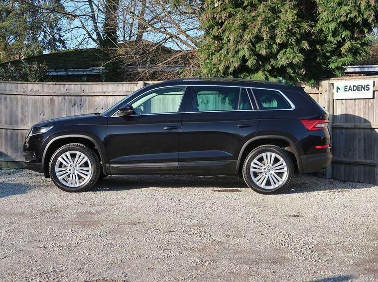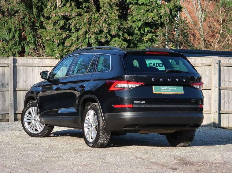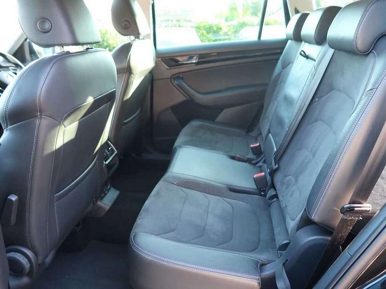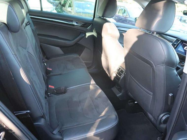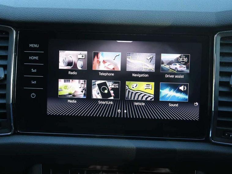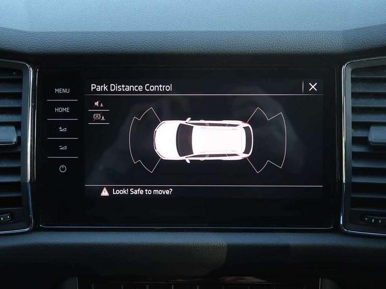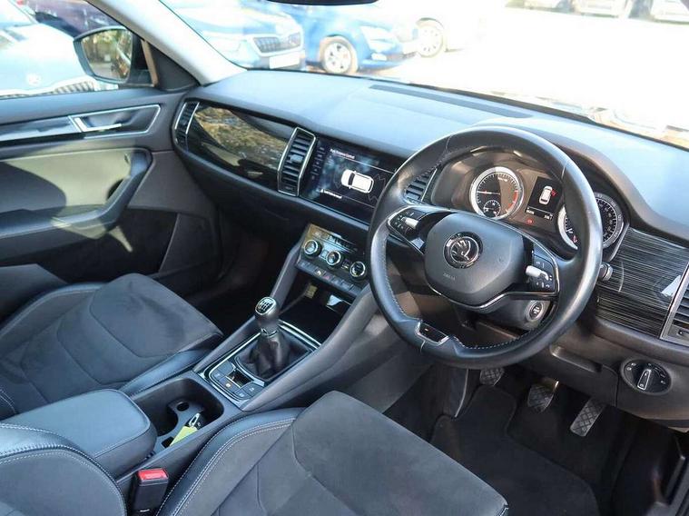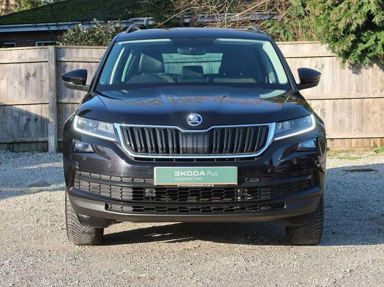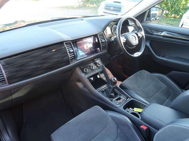 Bluetooth system, Columbus satellite navigation with 9.2" touch screen and integrated Wi-Fi + WLAN and web radio, Digital voice enhancement, ECO Stop/start function, Exterior temperature indicator, Map care, SmartLink plus, Speed limiter, USB C Port x 2 in front centre console, Bolero Radio, DAB Digital radio, DVD System, Aero front windscreen wipers with intermittent function, Aero rear window wiper, Auto dimming rear view mirror, Automatic activation of hazard warning lights, Black electric window control buttons, Black wheel arch surrounds, Body colour bumpers, Body colour door mirrors and handles, Electric front and rear windows, Electrically adjustable, heated and folding door mirrors, Front and Rear door steps, Full LED Headlights with adaptive front light system and LED daytime running lights, Headlight washers, Heated rear window, Invisible tailpipe, LED front fog lights with static cornering light function, LED rear fog light, LED third brake light in rear spoiler, Light assistant (coming home/tunnel light), Radiator grille frame in matt black with chrome strip, Rain and light sensors, Rear spoiler, Safety reflectors on front and rear doors, Sunset privacy glass, 12V socket in boot, 2 rails with 2 hooks including 4 hooks for net programme, 4 foldable roof handles with rear coat hooks, 4 lashing points on luggage floor, 60:40 foldable rear seat with sliding adjustment and backrest angle adjustment, Bottle holders in door panel in the 1.5 litre front and 1 litre rear, Cargo storage compartments, Centre console with open storage box, cup holder and 12V socket, Chrome headlight control button, Chrome interior door handles, Coat hooks on B pillar, Covered storage compartment on driver side, Front and rear door armrest with black adductor trim, Front and rear height adjustable headrests, Front centre armrest with storage compartment, cup holder and 12V socket, Front courtesy lights, Gear shift lever with chrome frame and black gloss insert, Illuminated and cooled glovebox, Illuminated luggage compartment, Isofix child seat fittings in outer rear seats with top tether, Manually adjustable steering column, Net programme in boot (1x horizontal Net, 2x vertical Nets), Overhead glasses storage compartment, Pollen filter, Rear centre armrest with cupholders, Roll up luggage compartment cover with intermediate position, Small Bags on the inner sides of the front backrests, Storage compartment in lower middle instrument panel with closing, Three rear height adjustable headrests, Ticket holder on A Pillar, Umbrella in door panel, Chrome pack - Kodiaq, Auto door release and activation of warning lights, Driver and passenger airbags, Electronic parking brake with hill hold control, Emergency rear braking signal, ESC (incl. ABS+MSR+ASR+EDS+HBA+DSR+RBS+MKB), Front and rear three point safety belt on all seats, Front assist includes AEB city/urban, Front passenger airbag deactivation switch, Front side airbags, Fuel cut off safety device, Head and knee airbags, Rear disc brakes, Safety vest holder in door, Seat belt reminder for all seats, Tailgate unlocking from outside, Two tone horn, Tyre pressure monitor, Warning lights in front doors, Alarm with interior monitoring and tilt sensor with safe function, Immobiliser, Keyless entry and start system (KESSY), Remote central locking,