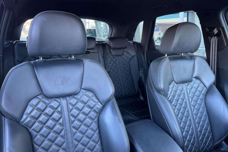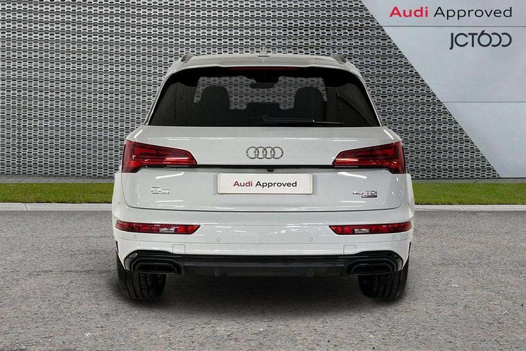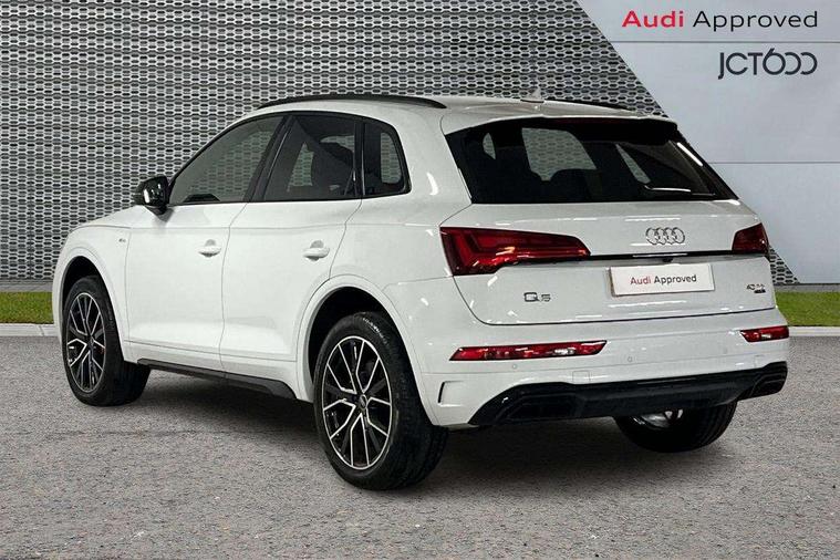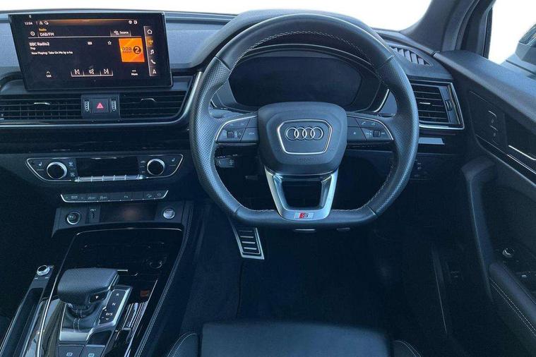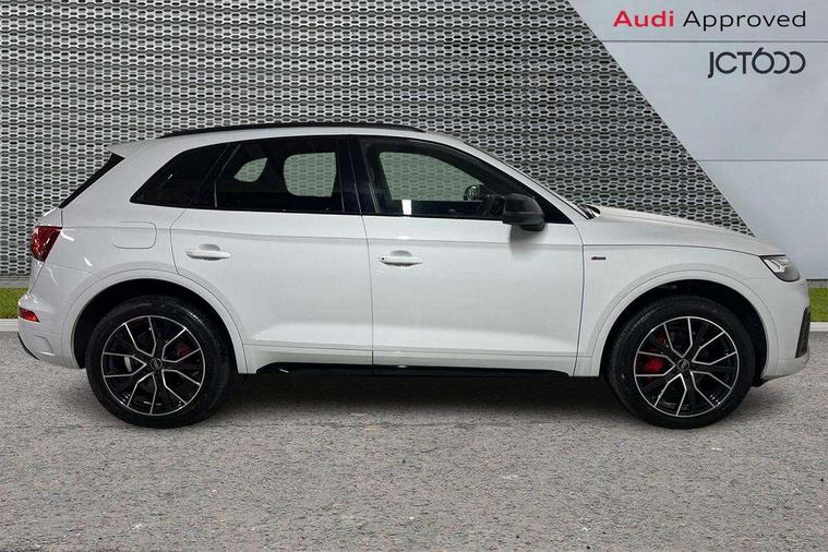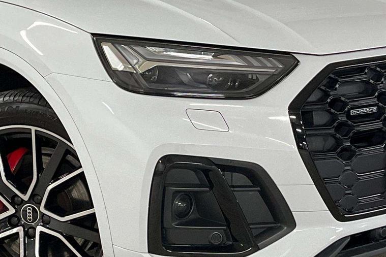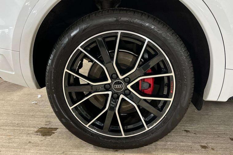 Acoustic front and rear parking sensor, Audi connect safety and service (e-call), Audi connect with Amazon Alexa Integration, Audi drive select, Audi virtual cockpit plus with 12.3" screen and three different layout designs, Audi wireless smartphone interface, Automatic start-stop system with coasting functionality and efficiency programme, Bluetooth interface, Electro - mechanical power assisted steering, MMI navigation plus with 10.1" touch screen, Power tailgate, Reversing camera, Service interval indicator, Voice control system with Audi hotword activation "Hey Audi", Diesel particulate filter, Quattro on demand, S line sports suspension, 8 loudspeakers, DAB Digital radio, Acoustic windscreen, Audi matrix LED headlights with dynamic front and rear indicators, Audi rings at front and rear in black, Audi rings decal on rear doors, Auto dimming door mirrors, Auto dimming frameless rear view mirror, Automatic headlight adjustment, Automatic headlights and windscreen wipers, Black roof rails, Body colour bumpers, Body colour underbody protection, Chrome plated exhaust trims, Daytime running lights, Door sills in Selenite silver, Electric adjustable/heated/folding door mirrors, Front air inlet surrounds in anthracite black, Front and rear electric windows, Headlight washers, High gloss black B pillar trims and triangular rear door trim, High level LED brake light, Rear chrome trim strip below lights, Rear privacy glass and rear side windows, Rear side wing doors, Rear wiper, Roof bars, S Line rear spoiler, 2 x USB charging port with aux input socket, 3 rear headrests, 4 way electric lumbar support for driver and front passenger, 40:20:40 split folding 3 rear bench seat in 2nd row with rear centre armrest, Black cloth headlining, Comfort front centre armrest, Contrast stitching on seats, steering wheel and gear lever gaiter, Deluxe 3 zone electronic climate control, Electrically adjustable front seats, Fine Nappa leather upholstery with diamond pattern contrast stitching + front sport seats with S embossed logo, Front/rear floor mats, Gear lever in black leather, Heated front seats, Height adjustable front head restraints, Height/reach adjustable steering column, Illuminated door sill trims with S logo, Luggage compartment cover, Rear seat bench plus-adjust for forwards/backwards position/backrest angle, cupholders in the armrest, load through hatch and remote backrest release, Removable luggage compartment floor, Single front passenger seat, Stainless steel pedals, Sunvisors with vanity mirrors, Black styling package - Q5 Edition 1, Extended interior upholstery pack - Q5, Extended LED Interior multi coloured Lighting Pack - Q5, 3 point seatbelts on all seats, 6 airbags - Driver, front passenger, curtain and side airbags, Electrically operated child locks on rear doors, Electromechanical parking brake, Electronic stabilisation control including ABS, ASR and EDL, First aid kit with warning triangle and vests, Front and rear brake calipers painted in red, Front passenger airbag deactivation, Hill descent control, Hill hold assist, ISOFIX child seat mounting for front passenger seat and ISOFIX child seat mounting with Top Tether for outer rear seats, Multi collision brake assist, Pop-up bonnet for pedestrian protection, Pre sense city, Seat belt force limiter, Seatbelt monitoring, Tyre pressure warning, Anti theft alarm, Anti-theft wheel bolts, Keyless Go access/ignition system, Remote central locking, Air vents inserts and centre console in gloss black, Piano black finish inlay,