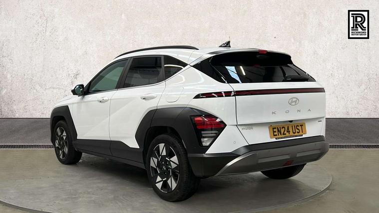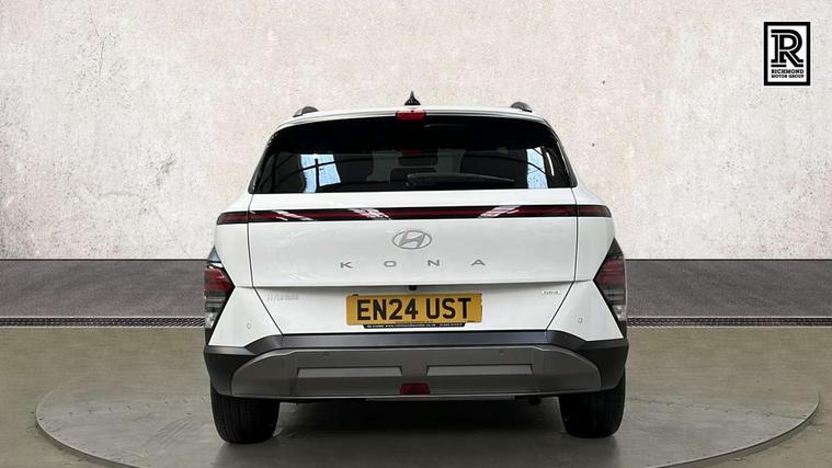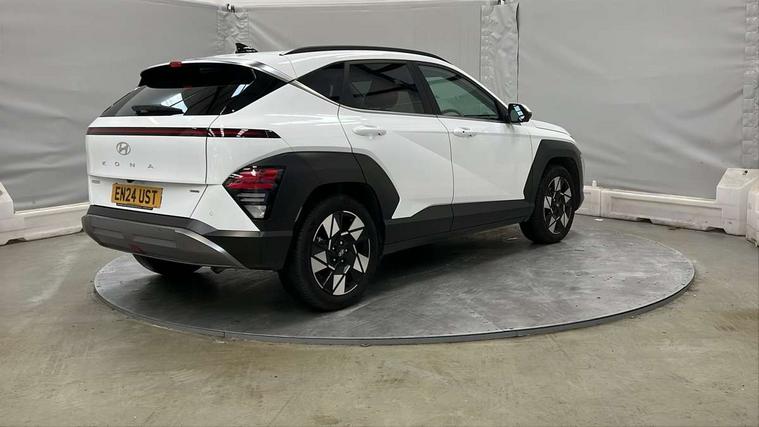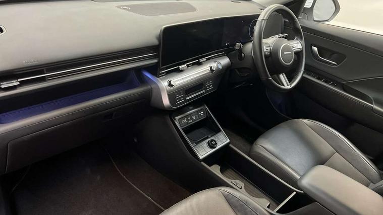 12.3" touchscreen centre console display satellite navigation with bluelink, live services and mapcare, Blind spot collision avoidance assist, Blind spot view monitor, Bluetooth connectivity with voice recognition, Digital clock, Driver status monitor (DSM), Driver supervision instrument cluster with 12.3" LCD display, eCall emergency call system, Feature on demand - Enabled, Forward collision avoidance assist (FCA 1.5) - Car, pededstrian, cycle and junction turning, Front parking sensor, HDA - Highway Drive Assist Level 1.5, Height adjustable power tailgate, Intelligent speed limit assist, Lane follow assist, Lane keep assist, Leading vehicle departure alert (LVDA), Parking Collision Avoidance Assist-Reverse (PCA-R), Parking distance warning - side, Parking system with rear camera and guidance system, PAS, Rear cross traffic collision avoidance (RCCA), Rear parking sensor, Roadside assistance, Safe exit warning (SEW), Smart cruise control with stop and go functionality, Surround view monitor, Windscreen washer fluid sensor and warning indicator, Wireless phone charging pad, Wireless Smartphone Integration includes Apple CarPlay and Android auto, 2 front USB C and 2 rear USB C charging points, Bose Premium Audio system with 7 premium speakers + subwoofer, DAB Digital radio, Steering wheel audio, phone and cruise controls, Auto dimming rear view mirror, Automatic headlights with dusk sensor, Automatic windscreen wipers with rain sensor, Black painted wheel arch inserts, Body colour bumpers, Body colour exterior door handles, Body coloured door mirrors, Door mirror LED indicator lights, Electric front windows with anti-trap mechanism and one touch control, Electric rear windows, Electric sunroof, Electrically adjustable and heated door mirrors, Horizon centre LED DRL, LED projector headlights, LED upper and lower rear lights, Power folding door mirrors, Privacy glass - Rear windows and tailgate, Rear roof spoiler with integrated LED brake light, Rear side wing doors, Rear skid plate - silver, Rear wiper, Roof rails, Solar glass with front door glass and windscreen, Tinted glass in front and rear doors, Windscreen auto defog function, 12V power outlet in front console, 2 zone climate control, 3 seat bench in 2nd row, 40/20/40 split folding rear seat, Adjustable head restraints, Ambient lighting, Driver and passenger front seat pockets, Driver's seat electric adjustments, Driver's seat lumbar support, Driver/passenger sunvisors and illuminated vanity mirrors, Floor mats, Front passenger's seat electric adjustments, Heated front seats, Heated rear seats, Heated steering wheel, Height/reach adjustable steering column, Isofix rear child seat fastenings, Leather upholstery, Leather wrapped steering wheel, LED centre interior light, LED front interior light, Luggage compartment LED lighting, Luggage net, Luggage shelf, Metal paint effect interior door handles, Parcel shelf, Rear centre armrest with cupholders, Rear centre console with air vents, Shift by wire SBW, Single front passenger seat, Ventilated front seats, Vertical adjustment rear head restraints, Trailer wiring package - Kona, Airbag - front, front side, curtain and centre front airbag, Anti-lock brake system (ABS), Childproof rear door locks, Downhill brake control, EBD + Brake Assist, Electric parking brake, Electronic stability control, Fasten seatbelt reminder, Fixed 3 point for second row centre passenger seatbelt, Front seatbelt pretensioners, Height adjustable front seatbelts, Hill start assist control (HAC), Passenger airbag deactivate switch, Rear seat alert, Traction control, Tyre pressure monitoring system, Alarm/immobiliser, Deadlocks, Folding key, Locking wheel nuts, Rear occupant alert, Remote central locking, Smart key with keyless entry and start/stop button, Five year annual vehicle health checks, 18" Alloy wheels, Temporary mobility kit (TMK),