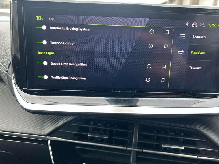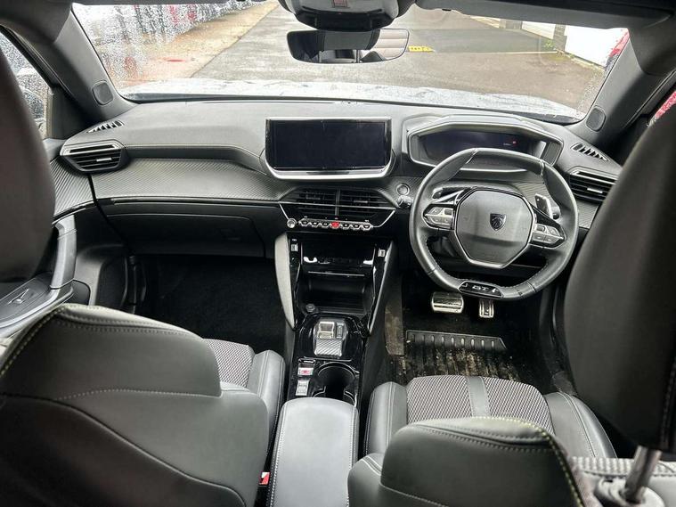 Bluetooth telephone facility, Driver attention warning, E-call, Exterior temperature indicator with ice warning, Multi function trip computer, PEUGEOT i-Cockpit with compact steering wheel, PEUGEOT i-Cockpit with configurable 3D headup instrument panel, PEUGEOT SOS and assistance, Smartphone charging plate, Speed limit recognition and recommendation, Wireless mirror screen with mirror link, apple carplay and android auto, Petrol Particulate Filter, 1x USB-C socket in rear and 1x USB-A socket in rear, 2 USB-C ports in the front, 6 speakers radio with mp3 compatible, DAB Radio (Digital Audio Broadcasting), Voice recognition for radio, navigation and telephony features, 2 X Rear number plate lights, Aluminium door sill scuff plates with peugeot lettering, Automatic hazard light activation upon heavy brake application, Black diamond roof, Black front wing trim with gloss black detail and GT badging, Body coloured exterior door handles, Dark tinted rear side and tailgate windows, Diamond black mirror shells, Diamond black rear roof spoiler, Electric, heated, and power folding door mirrors, Frameless electrochrome interior rear view mirror, Front bumper - Meteor grey lower trim, Full LED headlights with smartbeam assist with auto height adjustment, Gloss black finish on B pillar, Gloss black rear cluster connecting strip, Gloss black roof bars, Gloss black window surround, GT model designation badging on tailgate, Headlights left on audible warning, LED daytime running lights with distinctive 3 claw signature, LED side indicator lights integrated into door mirrors, LED third brake light, Model designation badges front and rear, One touch electric front/rear windows with pinch protection, Radiator grille - body coloured vertical chequered grille, Radiator grille - gloss black top edge trim, Rear full LED 3D peugeot signature claw effect lights with daylight function, Rear reversing lights, Rear side wing doors, Rear windscreen wiper triggered automatically in reverse gear, Tailgate with heated rear windscreen and wiper blade, Twin chromed exhaust pipes, Wheel arch extensions, 1/3 to 2/3 split folding rear seats, 12V socket, 3 seat bench in 2nd row, 8 Colour personalisable ambient lighting, Automatic air conditioning with pollen and active carbon filter, Central front armrest with storage compartment, Driver and front passenger sport seats, Electric power steering with reach and rake adjustable steering column, Front and rear carpet mats in black, Front LED interior light with 2 reading spotlights and rear interior light with timer, Front passenger seat manual adjustment - height, longitudinal and back rest angle, High centre console, ISOFIX child seat mounting points on passenger seat, Mistral full-grain perforated leather steering wheel with Lime Green stitch detail and satin chrome 'GT' emblem, Multifunction steering wheel, Piano keys: Gloss black and chrome toggle switches to access main functions of the vehicle and touchscreen functions, Roof lining - Mistral black, Seatbelt unfastened on the move audible and visual alert for front and rear seats, Single front passenger seat, Two position modular boot floor, Visibility pack - 2008, 2x 2nd row ISOFIX child seat mountings, ABS (Anti-lock Braking System) with EBD (Electronic Brakeforce Distribution) and EBA (Emergency Braking Assistance), Active safety brake with night function/cyclists/pedestrians, Adaptive driver and front passenger airbags with passenger airbag deactivation function, Child locking functionality on rear doors, Driver/front passenger side airbags, Electric parking brake, ESP (Electronic Stability Program) + Hill Start Assist, Front and rear curtain airbags, Front and rear disc brakes, Front and rear three-point retractable seatbelts, with force limiters, Front optimised safety headrests and rear retractable headrests (x3), height adjustable, Tyre pressure sensor, Automatic door locking when moving off, Deadlocks, Electronic code immobiliser, Peugeot Open and Go (keyless entry and push button start), Thatcham category 1 alarm, Carbon effect Dashboard, front and rear door panel finish,