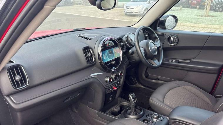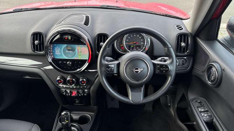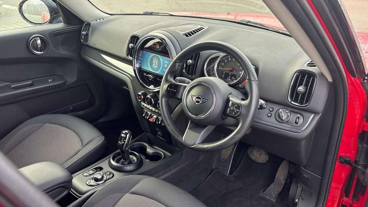 Active Guard incl speed limiting and lane departure functions with auto steering, and front collision warning with brake intervention, Automatic start/stop function with brake energy recuperation, Compatible mobile phone bluetooth with audio streaming, Cruise control with brake assist, Electro-mechanical speed dependant steering assistance, Instrument cluster, Mini E-call, On board computer, Rear parking distance control, 51 Litre fuel tank, Double Vanos system, Fully variable valve control, High precision injection, Performance Control, Steptronic transmission with double clutch, FM tuner and DAB digital radio, 3rd brake light, Body colour fuel filler cap, Day time driving lights, Door sill strips, Dynamic brake lights, Electric windows, Heated rear window, Heated windscreen washer jets, LED fog lights, LED Headlights, Left exhaust tailpipe with chrome finisher, Model logo, Model logo on Tailgate, Radiator grille, Rain sensor with auto headlights, Rear fog lights, Rear side wing doors, Rear window wiper, Side scuttle panel with integrated indicator, Split rear doors, Sun/heat protection glass, White indicator lenses, 12V socket in centre console, 3 seat bench in 2nd row, 3 spoke sport leather steering wheel + limiter function and audio controls, 360L luggage compartment capacity, 4 lashing eyes in luggage compartment, 40:20:40 split folding rear seats, Chrome interior highlights, Colour line - Carbon black, Cupholders, English handbook, Floor mats, Front headrests, Glove compartment, Headliner with grab handles and clothes hooks, Height and length steering column adjustment, Interior lighting with 12 basic colours selectable via toggle switch in roof, Isofix rear child seat preparation, Leather gearshift lever and handbrake gaiters, LED reading lights, vanity mirror lights, front foot well light and spotlight on front seats, Manual air conditioning, Mechanical seat adjustment, driver seat height adjust, forward/back and front seats backrest, Multifunction steering wheel, Passenger seat height adjuster, Rear headrests, Single front passenger seat, Storage compartments in doors, Sunvisors with vanity mirrors, Excitement pack - Countryman, Navigation pack - Countryman, 2 tone horn, 3 point seatbelts on all seats, 6 Airbags - front, side, head and seat belt tensioners, Anti-lock braking system (ABS), DSC - Dynamic Stability Control, Electronic handbrake, Front and rear disc brakes, Hill start assist, Manual rear child locks, Tyre pressure monitoring system, Alarm system with tilt sensor, monitoring doors, bonnet interior and tailgate, Auto drive away locking, Deadlocking function, Electronic vehicle immobiliser, Locking wheel bolts, Start/stop toggle with keyless go, Tool kit,