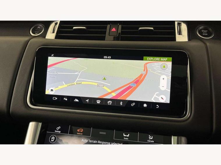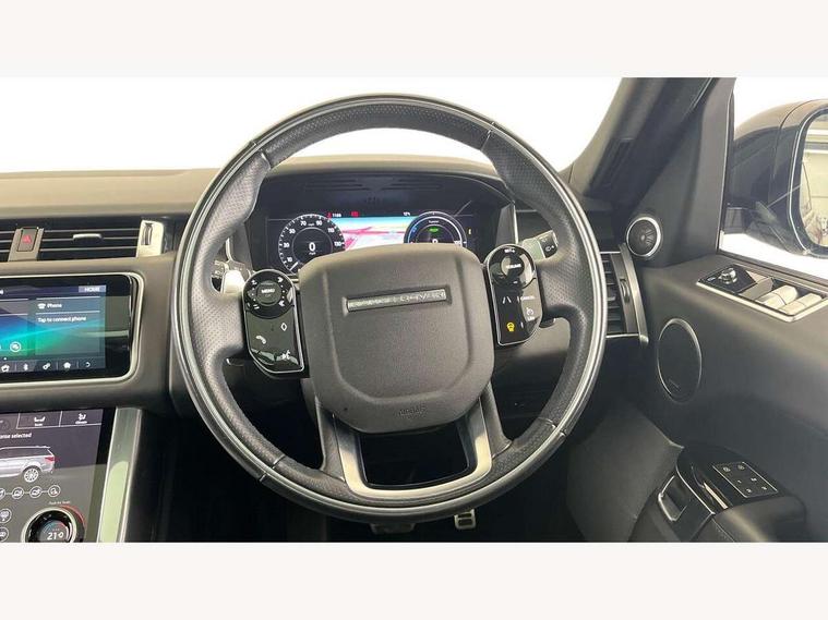 All Terrain Info Centre, Android Auto, Apple car play, Bluetooth connectivity, Electric power assisted steering (EPAS), Incontrol apps in vehicle touchscreen, Interactive Driver display instrument cluster, Mist sensor, Navigation pro system with 10" touch screen, app interface and media storage, Powered gesture tailgate/boot lid, Pro services and wifi hotspot, Push button start, Remote premium - Upgraded Incontrol remote app including remote climate control (engine dependent), remote lock + Unlock and remote beep + flash, TFT Virtual Instrument Panel, Touch pro duo system, Trip computer, 7 kW onboard charger, Adaptive dynamics, Electronic active differential with brake torque vectoring, Electronic air suspension, Gradient release control (GRC), Public charging cable, Terrain Response 2 with dynamic program, Twin speed transfer box, Bluetooth audio streaming, DAB Radio (Digital Audio Broadcasting), Incontrol protect - SOS emergency call with automatic collision detection, optimised assistance call and Incontrol remote app essential, USB/aux input socket, Acoustic front and toughened rear side glass, Acoustic laminated front windows, Adaptive brake lights, Auto dimming interior rear view mirror, Automatic headlights, Body coloured side sills and bumpers corners, Electric windows with one touch open/close and anti trap, Electrical towing preparation, Engine cover, Follow me home lighting, Front and rear recovery eyes, Front fog lights, Headlight power wash, Heated rear window, Heated windscreen includes heated washer jets, Illuminated metal treadplates with brand name script, LED rear lamps, Privacy glass (Tinted glass rear of B pillar), Rain sensing windscreen wipers, Rear fog lights, Rear wash/wipe, Remote window closing, Side repeater indicators in mirror, Sport Badge in black, Standard bonnet, Trailer stability assist, Twin bright tailpipes, 2 way active front head restraints, 2 way rear head restraints, Auto air recirculation, Bright metal foot pedals, Centre console with armrest, Climate control memory, Customer configurable single point entry, Driver's footrest, Extended leather upgrade includes door top rolls and leather instrument panel mid section, Front and rear cupholders, Front door storage space, Front map lights, Front seat back map pockets, Front stowage pocket, Front/rear passenger grab handles, Heated steering wheel, Isofix child seat preparation, Leather steering wheel with Atlas inserts, Loadspace light, Loadspace mounting provisions, Lockable glovebox, Multifunction steering wheel, Perforated Windsor leather upholstery, Pollen filter, Power socket, Reach/rake electric adjustable steering column + entry/exit tilt away, Rear centre armrest, Rear ISOFIX, Roller blind loadspace cover, Satin chrome gearshift paddles, Sports pedals, Three 12V accessory power outlets, Black Exterior pack - Range Rover Sport Dynamic, Smartphone pack - Range Rover Sport, 3 point seatbelts on all seats, Anti-lock braking system (ABS), Brake pre-fill technology, Cornering brake control (CBC), Curtain airbags, Customer configurable autolock, DSC - Dynamic Stability Control, Dual stage driver/passenger airbags, EBD - Electronic brakeforce distribution, Electric parking brake, Electronic traction control, Emergency braking includes city, urban AEB and pedestrian, Front seatbelt pretensioners, Gradient acceleration control, Height adjustable front seatbelts, Hill descent control, Hill launch assist, Low traction launch, Passenger seat occupant detector with front airbags, Power operated child locks, Roll stability control, Seatbelt warning, TPMS (Tyre pressure monitoring system), Immobiliser, Intrusion sensor, Keyless entry, Locking wheel nuts, Perimetric and volumetric anti theft alarm, Remote locking, Grand black veneer, 21" 9 spoke gloss black alloy wheels - style 9001, Tyre repair system,