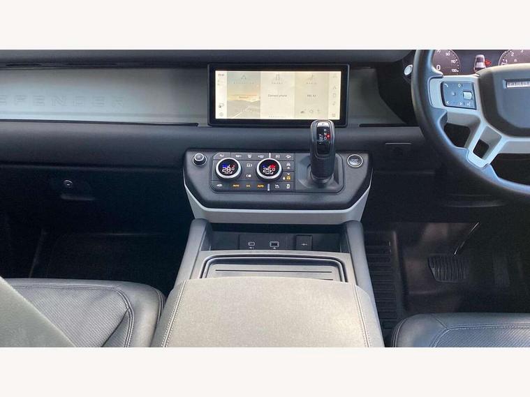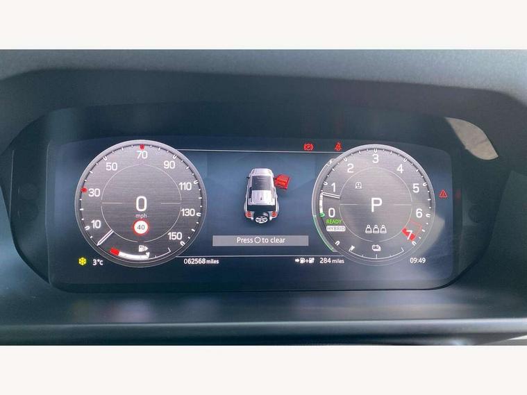 360 degree parking aid, 3D Surround Camera with 360 View, 180 Rear View, Front Traffic Detection, Forward Vehicle Guidance, Tow Hitch Assist and clear sight Ground View, Android Auto, Apple CarPlay, Assisted tailgate with soft close, Blind spot assist, Bluetooth system, Brake pad wear indicator, Clear exit monitor, Connected navigation pro, Cruise control + speed limiter, Driver condition monitor, Electric power assisted steering (EPAS), Lane keep assist, Push button start, Rear traffic monitor, Traffic sign recognition with adaptive speed limiter, Trip computer, Wade Sensing, Wireless device charging with phone signal booster, 7 kW onboard charger, 8 speed automatic transmission, AC/DC charging, Adaptive dynamics, All wheel drive system, Electronic air suspension, Home charging cable mode 2 basic, Public charging cable, Twin speed transfer box, DAB Radio (Digital Audio Broadcasting), Meridian 400w sound audio system with 11 speakers and subwoofer, Pivi pro connected, Automatic headlight levelling, Automatic headlights, Body coloured roof, Centre high mounted stop light, ClearSight interior rear view mirror, Electric heated/power fold door mirrors with approach lights and auto dimming driver side, Electric windows with one touch open/close and anti-trap, Follow me home lighting, Front fog lights, Heated rear window with timer, Heated windscreen, Illuminated metal treadplates with brand name script, LED tail lights, Matrix LED headlights with signature DRL, P400e badge, Privacy glass, Puddle lights, Rain sensing windscreen wipers, Rear fog lights, Rear side wing doors, Rear wiper, Side hinged tailgate, Signature graphic (with interior storage), Sliding panoramic roof, Solar attenuating windscreen, Trailer stability assist, 12 way heated and cooled electric memory front seats with 2 way manual headrests, 12V power socket in loadspace, 3 seat bench in 2nd row, 40:20:40 folding rear seats with centre armrest, Air quality sensor, Alpine lights, Cabin Air Purification plus, Durable rubber cabin flooring, Durable rubber loadspace flooring, Electric cabin pre conditioning, Electric reach + rake adjustable steering column, Footwell lights, Front centre console refrigerator compartment, Front passenger isofix child seat attachment, Grained Leather upholstery, Heated steering wheel, Leather gearshift, Light oyster morzine headlining, Loadspace cover, Loadspace Hook, Multifunction steering wheel, Overhead stowage for sunglasses, Premium cabin lighting, Rear headrests, Rear ISOFIX, Rear reading lights, Single front passenger seat, Standard interior, Standard leather steering wheel, Standard seat configuration, Storage glovebox, Sunvisors with illuminated vanity mirrors, Three zone climate control, Twin front cupholders with cover, Online pack with data plan - Defender, XS Edition exterior pack - Defender, 5 x 3 point seatbelts, ABS, Brake hold function, Cornering brake control (CBC), Cross car beam in light grey powder coat brushed finish, Customer configurable autolock, DSC - Dynamic Stability Control, EBD - Electronic brakeforce distribution, Electric parking brake (EPB), Emergency brake assist, Emergency braking, ESP + traction control, Front airbags with passenger seat occupant detector, HDC - Hill descent control, Hill launch assist, Low traction launch, Power operated child locks, Remote for (e-Call, Optimised assistance call, InControl app, Climate, beep and flash and door), RSC - Roll stability control, Seat belt reminder, TPMS (Tyre pressure monitoring system), Alarm, Immobiliser, Intrusion sensor, Keyless entry, Locking wheel nuts,