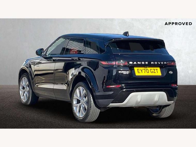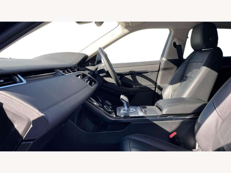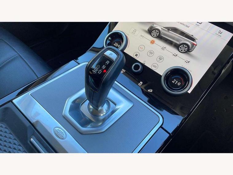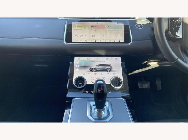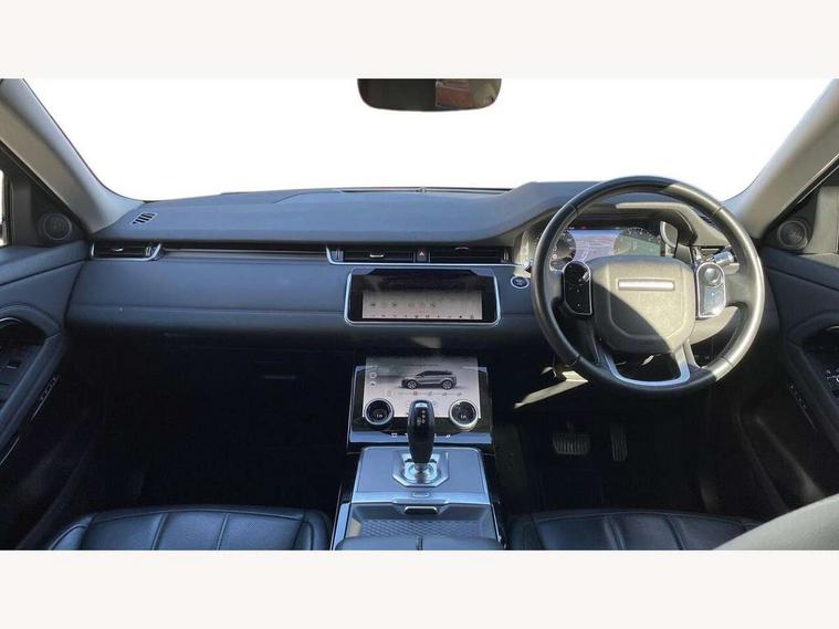 3D 360 degree surround camera, Android Auto, Apple car play, Blind spot assist, Bluetooth connectivity, Brake pad wear indicator warning light, Clear exit monitor, Driver condition monitor, Duo touch pro, Electronic power assisted steering (EPAS), InControl remote, Interactive Driver display instrument cluster, Land Rover InControl apps, Lane keep assist, Pivi pro connected includes upgraded infotainment, smart settings, connected navigation pro, Nuance speech licence, Push button starter, Rear traffic monitor, Traffic sign recognition with adaptive speed limiter, Voice control system, Wade Sensing, All terrain progress control, Efficient Driveline, Large fuel tank, Passive suspension, Terrain Response 2 Auto, Digital Audio Broadcast radio-DAB, Steering wheel mounted controls, Automatic headlight levelling, Electric windows with one touch open/close and anti trap, Evoque badge, Flush deployable exterior door handles, Heated rear window with timer, Heated washer jets, Heated windscreen, Power fold, auto-dimming, heated door mirrors with approach lights and auto dimming driver side, Rain sensing windscreen wipers, Rear fog lights, Tailgate spoiler, 40:20:40 split folding rear seats with centre headrest and armrest, Ambient interior lighting, Isofix system on outer rear seats, Overhead lighting console, Overhead stowage for sunglasses, Passive front head restraints, Rear air vents, Rear centre headrest, Sunvisors with illuminated vanity mirrors, Twin sliding front centre armrest, 3 rear 3 point seatbelts, Anti-lock braking system (ABS), Customer configurable autolock, DSC - Dynamic Stability Control, Electronic brake force distribution, Electronic parking brake, Electronic traction control, Emergency braking, Front and rear seatbelt reminder, Hill descent control, Hill launch assist, Low traction launch, Power operated child locks, Roll stability control, Six airbags - Driver and passenger airbags/driver knee airbag/front side airbag and curtain airbags, Torque vectoring brake, Tyre pressure monitoring system, Alarm, Immobiliser, Intrusion sensor, Locking wheel nuts,