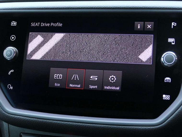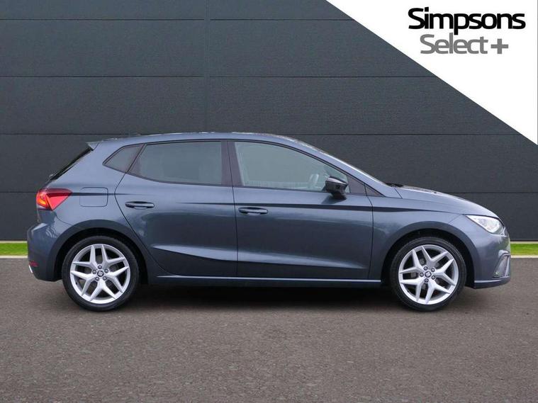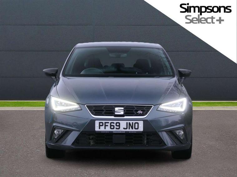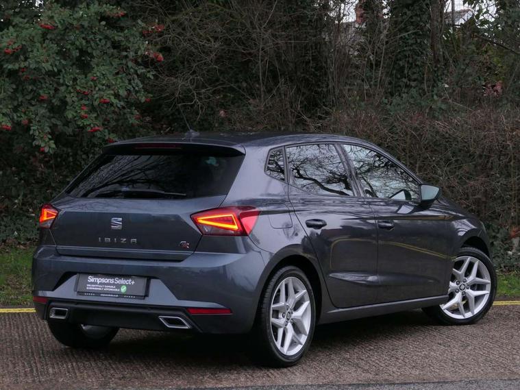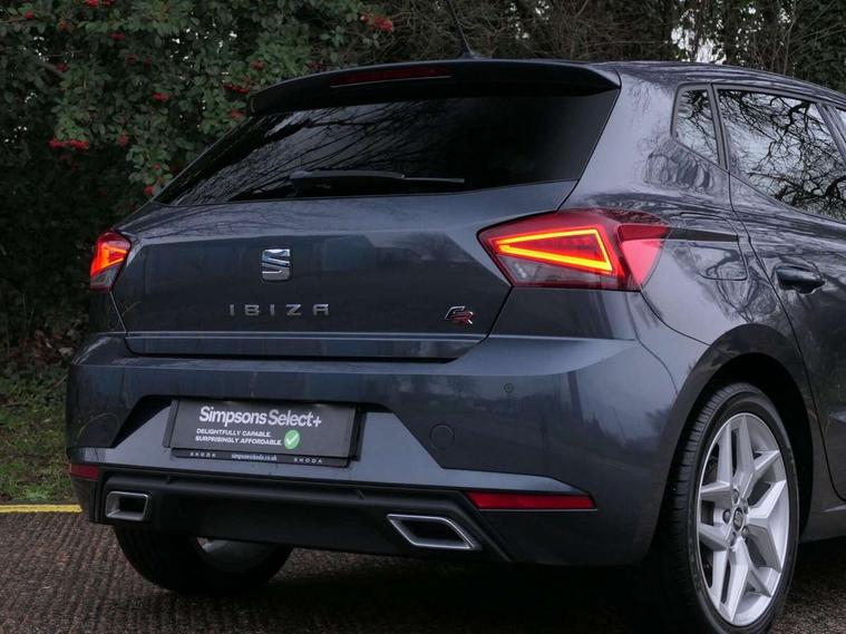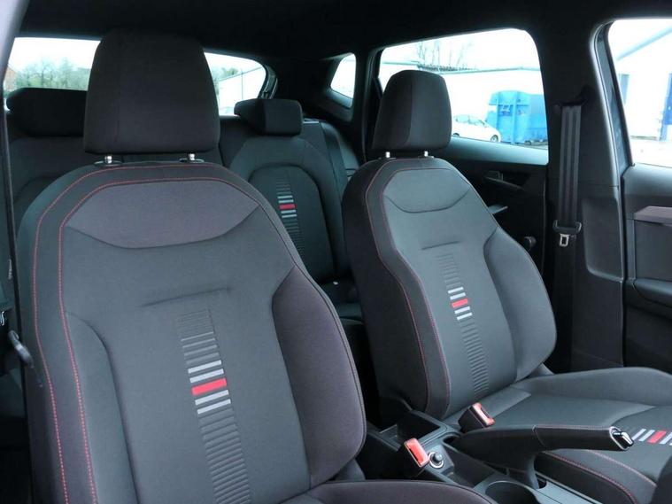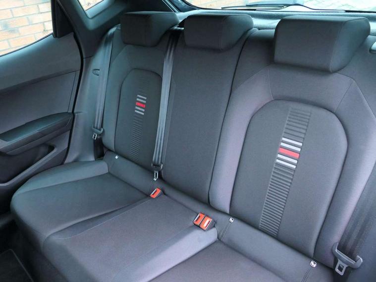 'Lights On' Reminder warning buzzer, Bluetooth Handsfree Phone Connection, Cruise control, Digital clock, Full Link Smartphone Integration with Mirror Link, Apple Car Play, Google Android Auto, Low fuel warning light, Outside temperature gauge, Power Steering, Satellite navigation system with 3D mapping, 8" touch screen, voice control and additional USB port, SEAT Drive profile, SEAT logo boot release, Trip computer, Sports suspension, 6 speakers, Auxiliary input socket, CD player, Digital Audio Broadcast (DAB) Tuner, Radio/MP3 player, SD card slot, SEAT USB media cable, Steering wheel mounted controls, USB port, Anti theft roof antenna, Auto dimming rear view mirror, Automatic headlights, Automatic rain sensing wipers, Body colour bumpers, Body colour door handles, Brilliant black door mirrors, Chrome front grille frame, Chrome grille, Coming/leaving home lighting function, Cornering front fog lights, Dark tinted rear windows, Electric folding door mirrors, Electric front windows, Electric headlight adjustment, Electrically adjustable and heated door mirrors, Exclusive FR rear bumper, Full LED headlights, LED daytime running lights, LED tail lights, Rear fog lights, Twin exhaust pipes, 3 rear headrests, 60/40 split folding rear seat, Air conditioning, Door and steering wheel ice metal decorative inserts, Driver's sunvisor with ticket holder/vanity mirror, Dust/pollen filter, Flat bottomed perforated leather steering wheel with red stitching and FR logo, Front courtesy lights, Front cupholders x 2, Front reading lights, Gear shift indicator, Glovebox, Height adjustable driver's seat, Height adjustable front/rear head restraints, Height adjustable passenger seat, Height/reach adjust steering wheel, Illuminated boot, Instrument lighting with brightness control, Leather handbrake, Multi-colour ambient interior lighting, Nora cloth upholstery, Passenger sunvisor, Rear top tether child seat ISOFIX attachment, Sports seats, Full LED headlight pack - Ibiza, 3 point seatbelts on all 3 rear seats, ABS, Active front headrests, Child locks on rear doors, Curtain airbags, Driver/Front Passenger airbags, ESP+EBA, Front assist (AEB), Front passenger airbag deactivation, Front side airbags, Hill hold control, Multi-Collision braking, Seatbelt warning, Tiredness recognition system, Tyre pressure monitoring system, Electronic engine immobiliser, Locking wheel bolts, Remote central locking + deadlocks, Volumetric alarm with back up horn, Leather dashboard, 17" Dynamic alloy wheels,