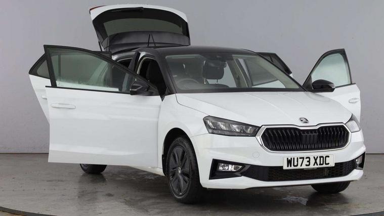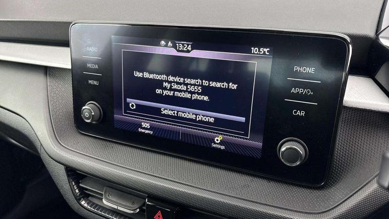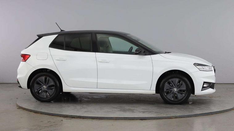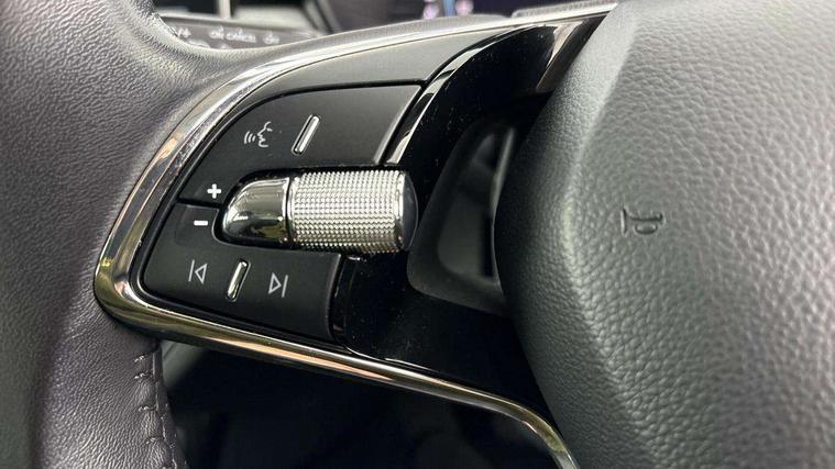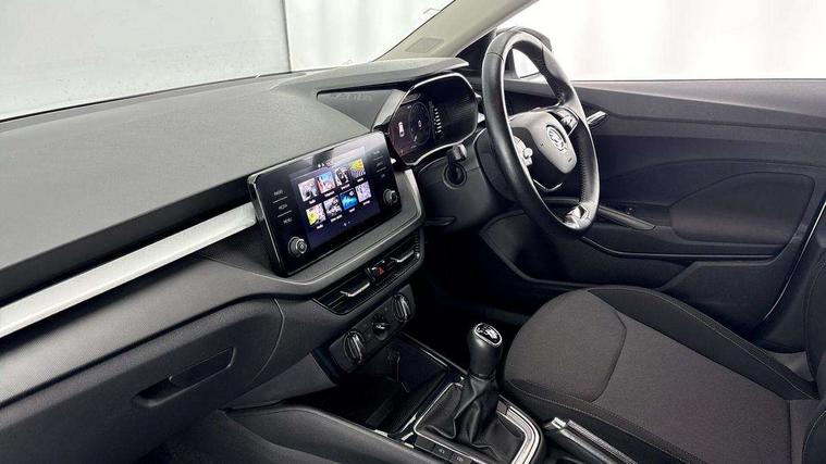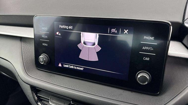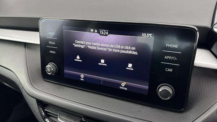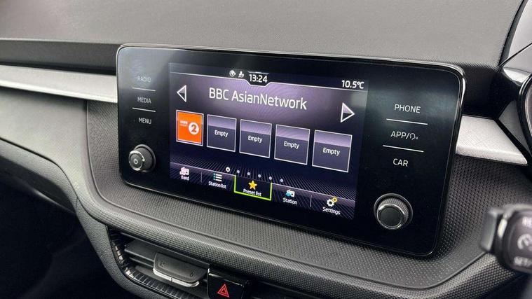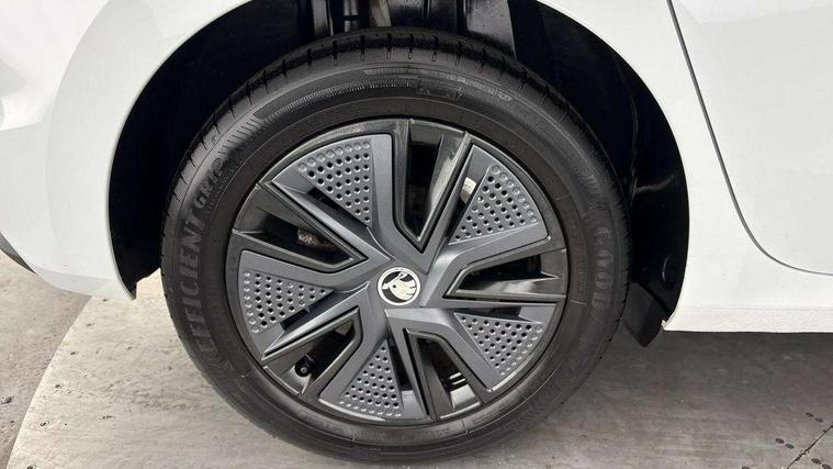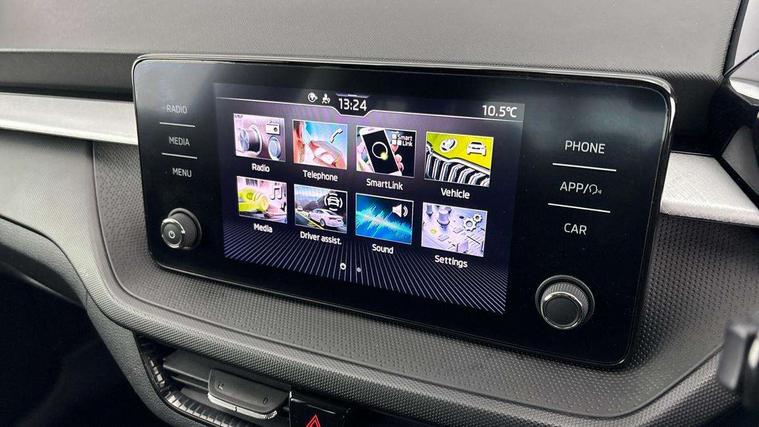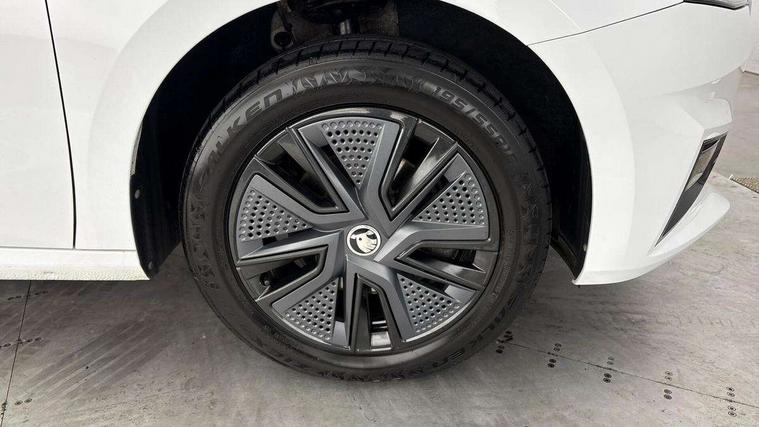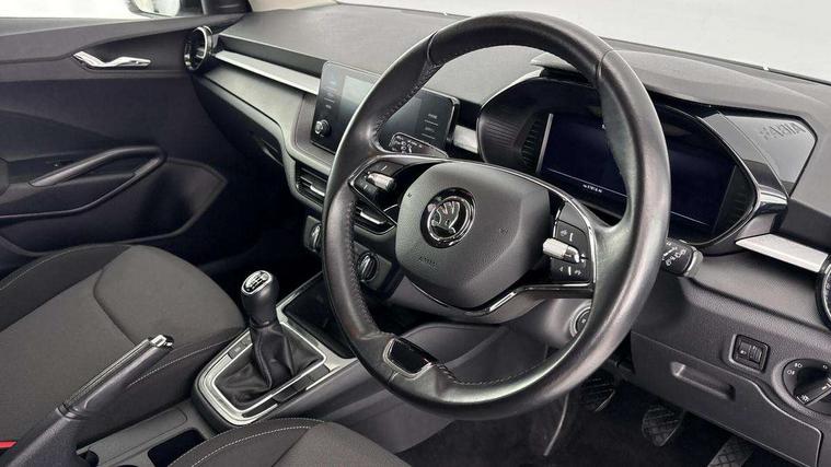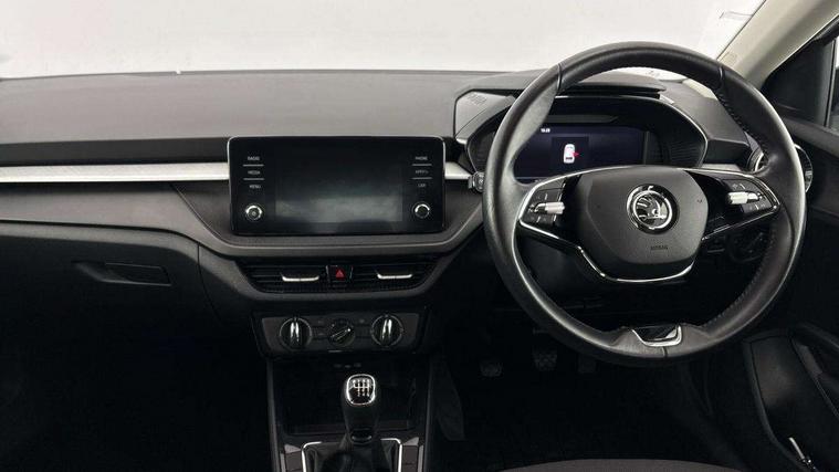 Bluetooth connection, Driver alert system - DAS, Electromechanical power steering, Exterior temperature gauge, Lane assist including road edge detection, Service interval indicator, Virtual cockpit with 10.25" colour display, 2x USB-C in the front (for data transmission and charging), 6 Speakers (4 in front and 2 in rear), Auxiliary socket for external MP3 player, Bolero radio with 8" colour display, DAB digital radio reception, Basic rear lights, Body coloured bumpers, Dimming rear view mirror with black frame, Door mirror integrated indicators, Electrically adjustable and heated door mirrors, Electrically adjustable front windows with function auto up/down, Front window wiper intermittent control, Headlight range control - Automatic, Ice scraper in fuel cap, LED daytime running lights with coming and leaving home feature, Mechanical adjustable rear windows, Privacy glass, Rear LED fog light, Rear side wing doors, Rear window wiper with washing nozzles, Roof colour door mirrors, Roof mounted spoiler, SKODA tailgate lettering in chrome, Third brake light, 3 rear headrests, Backrest split and folding, Central console with fixed cup holder and storage box, Chrome handbrake release button, Fabric upholstery, Gearshift knob/handle in leather, Grain satin black interior door handles, Hand brake lever handle in leather, Height adjustable front headrests, Height adjustable steering wheel, ISOFIX and TopTether anchorage points to the outer rear seats, ISOFIX and TopTether on the front passenger seat, Luggage compartment lighting, Pollen filter, Rear seat bench unsplit, Single front passenger seat, Storm grey headlining, Sun visors with mirror and airbag label on passenger side, Ticket holder, Umbrella in drivers door, 3-point height adjustable front seats belts with pretensioner and force limiter, Automatic warning lights in case of crash, Driver and passengers airbag with switch off function, e-Call+, ESC including ABS, MSR, ASR, EDS, HBA and XDS, Front and rear seat belt warning, FRONT ASSIST (AEB City and AEB Inter Urban), Front side airbags, Head airbags, One tone horn, Pedestrian protection, Three rear 3-points safety seat belts with pretensioner and force limiter including stop function for outer rear seat belts, Tyre pressure monitoring system, Anti-theft alarm system including immobiliser, interior monitoring, backup horn, and towing protection, Anodized cross line upper decorative trim, Colour Edition air vents, Grain satin black central console cover, Grain satin black lower decorative trim, Satin black door and side trim panel in front, Anti-theft wheel bolts protection, Super-low rolling resistance tyres,