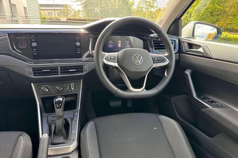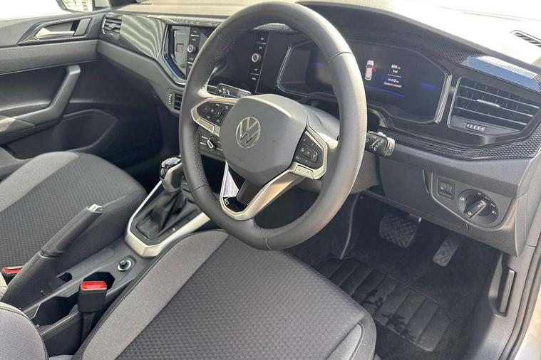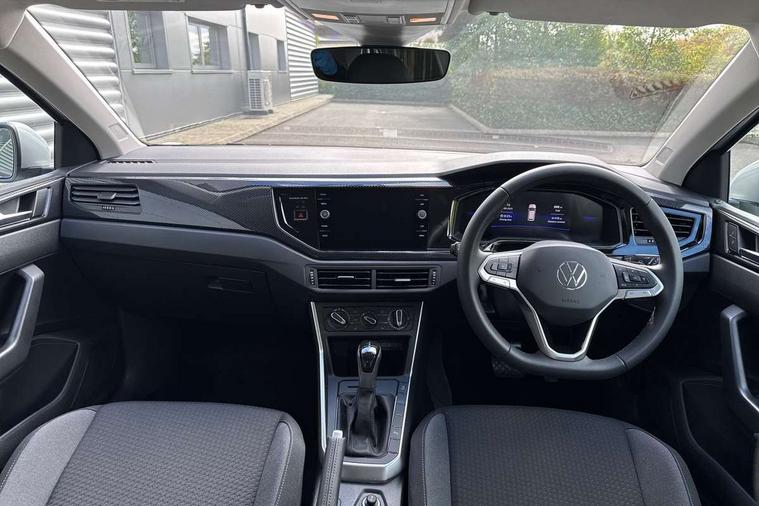 Advanced driver attention and drowsiness monitor, Bluetooth mobile phone interface, Dynamic road sign display, Emergency call service, Mobile phone preparation with inductive charging function, Multifunction front facing camera for distance control, Power assisted speed sensitive steering, Predictive adaptive cruise control without follow-to-stop and speed limiter, Preparation for navigation system with media and internet package, Preparation for We connect and We connect plus, Rear view camera, Speedo and rev counter, electronic odometer, trip, service interval display and exterior temperature gauge, Standard rear axle, Travel Assist - Lane keeping system and traffic jam assist, Travel assist including emergency assist, Trip computer, Warning signal and warning light for front and rear seatbelts not fastened, Washer fluid level indicator, Wireless app connect, Front wheel drive, Rear shock absorpion, Start-stop system with battery regeneration (recuperation - energy recovery during braking), DAB Digital radio, Diversity antenna for FM reception, Automatic dimming interior rear view mirror, Automatic headlight control with LED separate daytime running lights with coming/leaving home function, Body colour bumpers with chrome inserts, Body colour door handles, Body colour door mirrors, Electric front windows, Engine badge deletion, Headlight range adjustment, Heat insulating and laminated safety glass windshield, LED Headlights, LED rear combination lamps, Power folding adjustable/heated exterior mirrors and front passenger exterior mirror lowering function, Rain sensor, Rear electric windows, Rear fog light, Rear side wing doors, Rear tinted glass from B-pillar backwards approx 65% tinted, Rear windscreen washer and wiper with interval delay, Third brake light, 12V power socket in centre console, 2 front and 2 rear reading lights with switch off delay and dimmer, 2 USB-C ports in the front, 2 USB-C charging sockets on the center console in the rear, 3 rear head restraints, 60/40 split folding rear seat and rear seat bench not split, Ceramique roof lining, Chrome plated radiator grille inserts, air vent surrounds and light switch surrounds, Door and side trim panel, Driver and front passenger seat height adjustment, Driver/passenger sunvisors with illuminated vanity mirrors, Front centre armrest, Front seat backrest storage pockets, Front standard seats, Handbrake lever handle in leather, Hartley/Thomas cloth upholstery, Headliner in recycled material, Isofix child seat preparation easy-fit (for two outer rear seats, and front passenger seat) compatible with I-size, Leather trimmed gear knob, Luggage compartment cover, Luggage compartment lighting, Removable luggage compartment floor, Single front passenger seat, Standard climatic zones, Standard pedal cluster, Three spoke leather wrapped multifunction steering wheel with shifting paddles, Light and vision pack - Polo, 3 point height adj front seatbelts + pretensioners, 3 point seat belt for centre rear seat, 3 point seatbelts, outer rear with ECE lable, ABS, Driver and front passenger airbag with front passenger airbag deactivation, Drivers and front passengers safety optimised head restraints, ESC (Electronic stability control) + EDL (Electronic Differntial lock) and ASR (Traction control), Extended and predictive pedestrian/ cyclist protection, Front assist with autonomous emergency braking (for Adaptive Cruise Control ACC up to 130 mph), Front curtain and side airbags with center airbag, Front disc brakes, Hill hold control, Manual child lock in rear doors, Rear drum brakes, Single tone horn, Tyre pressure loss indicator, Alarm with interior protection, Anti-theft alarm system with interior monitoring, backup horn, and towing protection, Anti-theft wheel bolts, Electronic engine immobiliser, Lava stone black gloss/matt decorative inserts in dash and front door panels, 16" Torsby alloy wheels, Low rolling resistance tyres,