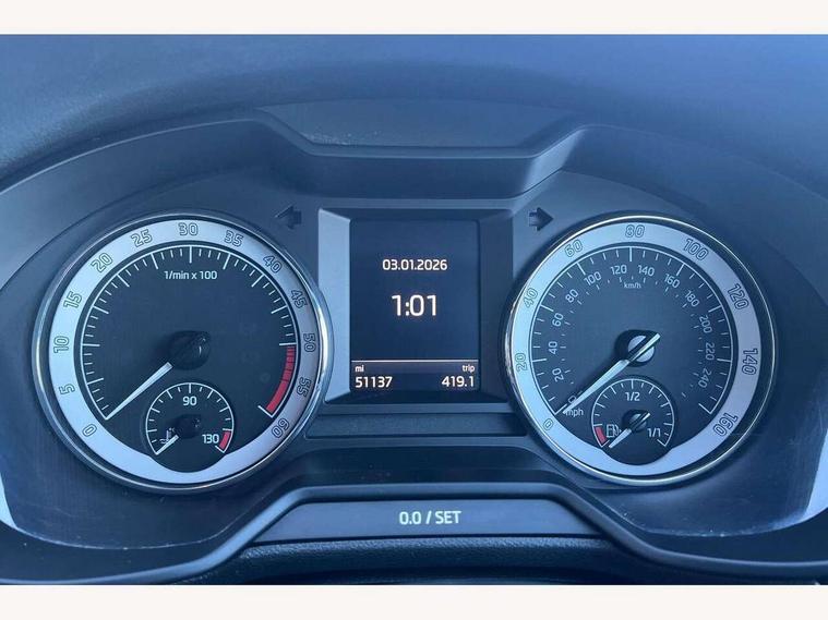 Bluetooth system, Drive mode selector, Driver alert system, Driver fatigue sensor, Driver profile selection, Electro-mechanical power steering, Front assist with pedestrian protection, Outside temperature gauge, Service interval indicator, Stop/start system, Voice control system, Diesel particulate filter, XDS electronic differential lock, Auxiliary input socket, Bolero Radio, DAB Digital radio, Multi device interface, Aero wiper + intermittent function, Auto dimming rear view mirror, Body colour door mirrors and handles, Body coloured bumpers and protective side mouldings, Chrome trim to front bumper, Coming/leaving home lighting function, Electric front and rear windows with child safety lock, Full LED Headlights with adaptive front light system and LED daytime running lights, Headlight washers, High gloss black front grille, High level third brake light, Intelligent light assist with high beam control, Internally adjustable headlight beam level, Privacy glass, Rain sensor, Rear mudflaps, Rear wiper, Tinted glass, Air re-circulation and pollen filter, Chrome inner door handles, Driver + passenger vanity mirrors, Dual zone automatic air conditioning with humidity sensor and control, Front centre armrest, Front seat and rear pockets, Gear shift indicator, Height adjustable front and rear head restraints, Height/reach adjust steering wheel, Illuminated air conditioned glovebox, Illuminated luggage compartment, Interior courtesy light operated by door switches, Lashing eyelets in boot, Rear armrest with storage, Rear seat backrest release, Split folding rear seat backrests, Split folding rear seats with centre armrest and storage, Sunglasses storage, Textile floor mats, Two isofix child seat fitting in rear, Umbrella under front passenger seat, 3 rear 3 point seatbelts + pretensioners, Automatic post collision braking, Driver and passenger front and side airbags, Drivers knee airbag, Energy recovery system, ESC including ABS, EBV, MSR, ASR, EDS, HBA, DSR, Fuel supply cut off, Head and curtain airbags, Height adjustable front seatbelts + pretensioners, Hill hold control, Passenger airbag deactivate switch, Seatbelt warning lamp, Tyre pressure monitor, Alarm, Electronic engine immobiliser, Remote central locking,