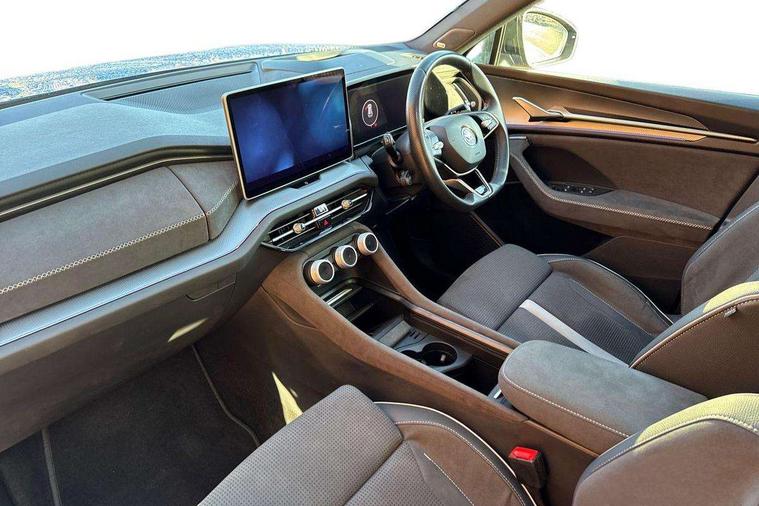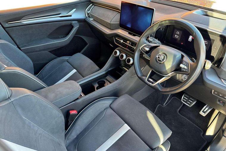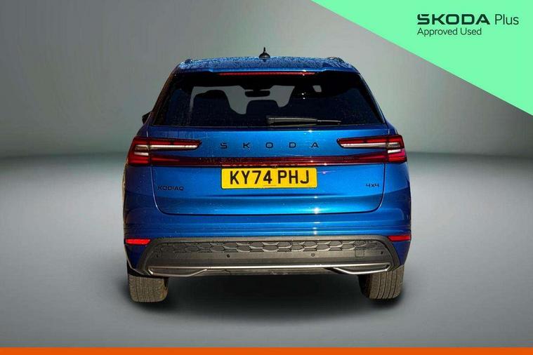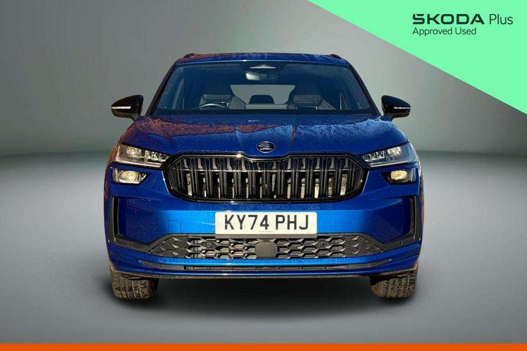 13" satellite navigation touchscreen display, Blind spot detection with door exit warning, Bluetooth system, ChatGPT functionality, Driver alert with fatigue sensor, Driver drowsiness alert system, Dry display cleaner, e call+, Front cross traffic assist, Lane assist, Off road modes, PAS, Rear traffic assist, Tailgate unlocking from outside, Traffic sign recognition, USB C Port x 2 in front centre console, Virtual Cockpit - 10.25" digital display, Voice control system, Wireless charging for two smartphones (15W) with cooling function, Wireless SmartLink for Apple CarPlay and Android Auto, Dynamic chassis control with drive mode select, Stop/start function, 2x USB-C in the rear, DAB Digital radio, Aero front windscreen wipers with intermittent function, Auto dimming rear view mirror, AWL (all weather lighting) and all weather light with cornering function, Black diffuser and decorative tailpipe with a unique dark chrome finish, Black sports styling including front grille and window surrounds, Black wheel arch surrounds, Body colour door handles, Cornering light and poor weather light, Electric folding /adjustable/separted heated/folding door mirrors, auto dimming with boarding sports and memory function, Electric front and rear windows, Front and rear sports bumpers including lower rear chrome strip, Gloss black door mirrors, Heat insulating glass in windshield, Heated rear window, Ice scraper in fuel tank cap, Invisible tailpipe, LED daytime running lights, LED rear fog light, LED third brake light in rear spoiler, Light assistant with automatic headlight control and coming home feature, Logo projection in door mirrors, Privacy glass, Rear side wing doors, Rear spoiler, Rear window wiper, Red decorative strip between rear LED lights, Safety reflectors on front and rear doors, Sportline badge on front fenders, Tailgate lettering in Black, Window control switches with black trim, Windscreen wipers with rain sensor, Without engine designation, 1.5l bottle holder points in all door, 12V socket in boot, 1x centre rear reading light, 2 seat bench in 3rd row, 3 configurable smart dials with 32mm coloured display, 3 seat bench in 2nd row, 4 foldable roof handles with rear coat hooks, Aluminium pedals, Ambient interior lighting - Dashboard, front-door stowage compartments, front and rear door panels and footwell lighting, Automatic gear selector on steering wheel, Chrome interior door handles, Driver/front passenger reading lights, Fabric headlining, Fixed bench 40:60:40 split folding backrests, Front and rear floor mats, Front centre armrest with jumbo box storage compartment, cup holder and 12V socket, Front courtesy lights, Front sports comfort seats, Height adjustable front headrests, Interior black decorative trims, Isofix child seat fittings in outer middle row rear seats and front passenger with top tether, Manually adjustable steering column, Pollen filter, Rear centre armrest with cupholders, Rear seat boot backrest release, Retractable luggage compartment cover, Single front passenger seat, Sliding trunk cover, Small Bags on the inner sides of the front backrests, Storage pocket including mobile phone pockets on the backs of the front seats, Sunvisors with illuminated vanity mirrors, Three rear height adjustable headrests, Ticket holder on A Pillar, Tri zone climate control, Umbrella in door panel x1 made from sustainable materials, Upper and lower glovebox with card holder and coin compartment, USB C port by rear view mirror for charging only (15W), Acoustic package - Kodiaq, Performance package - Kodiaq, Sportline design selection pack - Kodiaq, Auto door release and activation of warning lights in the event of an accident, Driver and front passenger airbag with knee airbag and front passenger airbag deactivation, Electric child locks, Electronic parking brake, ESC (incl. ABS+EMD+MSR+ASR+EDL+HBA+DSR+RBS+ESBS+MCB+TSA+XDS), Front assist with braking reaction to vehicles, pedestrians and cyclists, Front disc brakes, Fuel cut off safety device, Height adjustable front 3 point seatbelts + pretensioners, Hill hold control, Junction assist with automatic emergency braking, Rear disc brakes, Safety vest holder in door, Seat belt reminder for all seats, Three point rear seat belts, Two tone horn, Tyre pressure monitor, Alarm with interior monitoring and tilt sensor with safe function, Anti-theft wheel bolts, Immobiliser, Remote central locking with 2 keys, 20" Rila anthacite polished alloy wheel with black matte aero covers, Breakdown kit,
