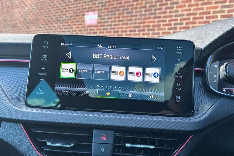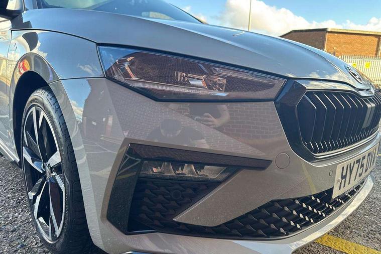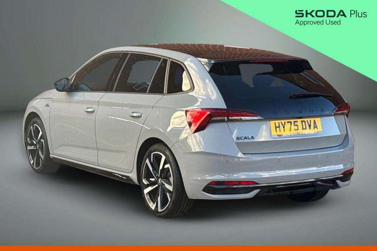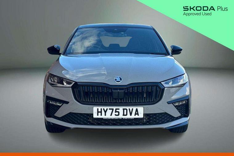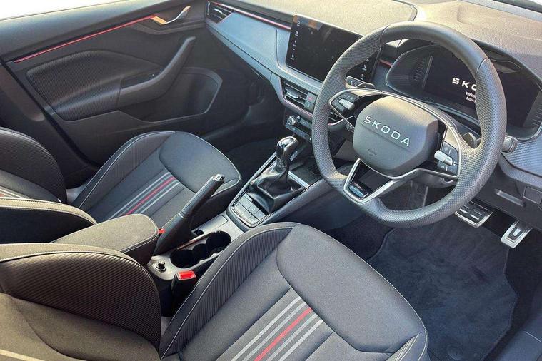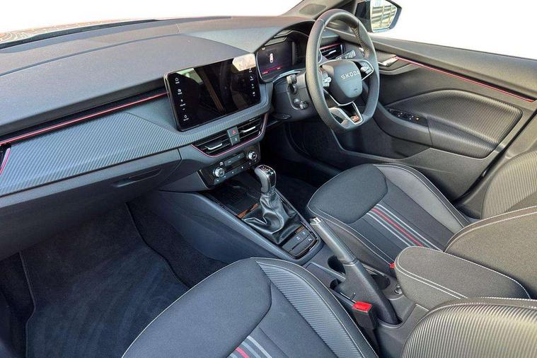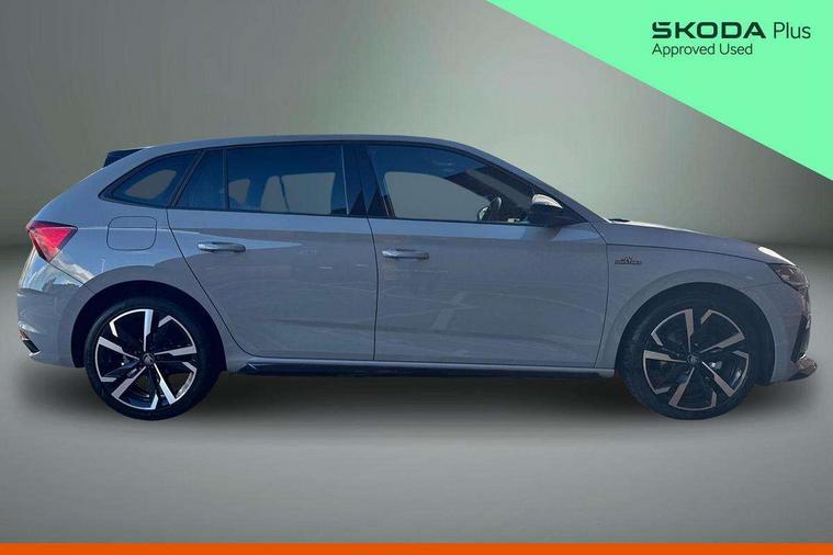Advanced driver attention and drowsiness monitor, Bluetooth, e-Call (emergency call), Front assist system, PAS, Rear parking sensors, Rear view camera, Speed limiter, Tailgate, Traffic sign recognition, Virtual Cockpit - 10.25" digital display, Voice control system, Wireless smartlink, Drive mode select with Sport Chassis Control and ECO mode, 4 USB C ports, 8 Speakers, 9.2" Skoda navigation display, DAB radio, Auto dimming rear view mirror, Automatic headlight control with manual coming and leaving home feature, Automatic intermittent wipers, Black door mirrors, Black lettering on boot lid, Black radiator grille, Black rear diffuser, Black roof spoiler, Black window frames, Body colour bumpers, Body colour door handles, Extended tailgate glass, Front and rear electric windows, Heated rear window, LED 3rd brake light, LED daytime running lights, LED high beam, LED low beam, Light sensors, Monte carlo plaque, Panoramic glass roof, Privacy glass, Rear LED fog light, Rear side wing doors, Rear wiper, Tinted windows, Unique dark chrome design logo on alloy wheels, 12V socket in luggage compartment, 3 seat bench in 2nd row, Aluminium pedals, Ambient lighting in white/red, Black / White armrest stitching, Black roof headlining, Cargo elements, Chrome inner door handles, Door inserts in art.leather carbon, Driver and passenger sun visors with vanity mirror, Dual zone climate control, Front and rear roof lights, Front centre armrest, Front head restraints, Height adjustable driver seat, Height adjustable passenger seat, Ice scraper, Illuminated glove compartment, Inner circulation control with pollen filter, ISOFIX for front passenger seat, Isofix preparation for back seats, Leather gearknob and handbrake lever, Luggage net under rear parcel shelf, Manual lumbar support for front seats, Monte Carlo cloth upholstery, Net package and top tether hooks in boot space, Pocket on the back of both front seats, incl. mobile phone pockets, Rear centre armrest, Red hotstamping, Single front passenger seat, Skoda lettering on steering wheel, Sport seats, Textile floor mats, Third rear headrest, Ticket holder, Top tether for front passenger seat, Umbrella in driver's door, Light and view plus pack - Scala, 3x3 point rear seatbelts, ABS, Child locks, Curtain airbags and front side airbags, Disc brakes, Driver and front passenger airbags, ESP, Hill hold control, Manual leather parking brake, One tone horn, Passenger airbag switch off function, Seatbelt reminder for driver and front passenger, Tyre pressure monitoring system, Anti theft alarm system with interior monitoring, backup horn and towing protection, Anti-theft wheel bolts, Remote central locking with 2 remote folding keys, SAFE function for remote central locking, Carbon effect decorative inserts, 18" Ursa black diamond cut alloy wheels,