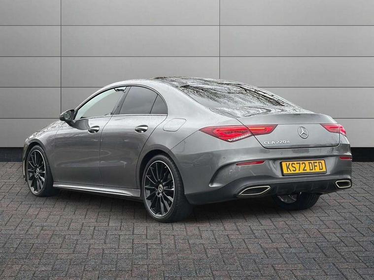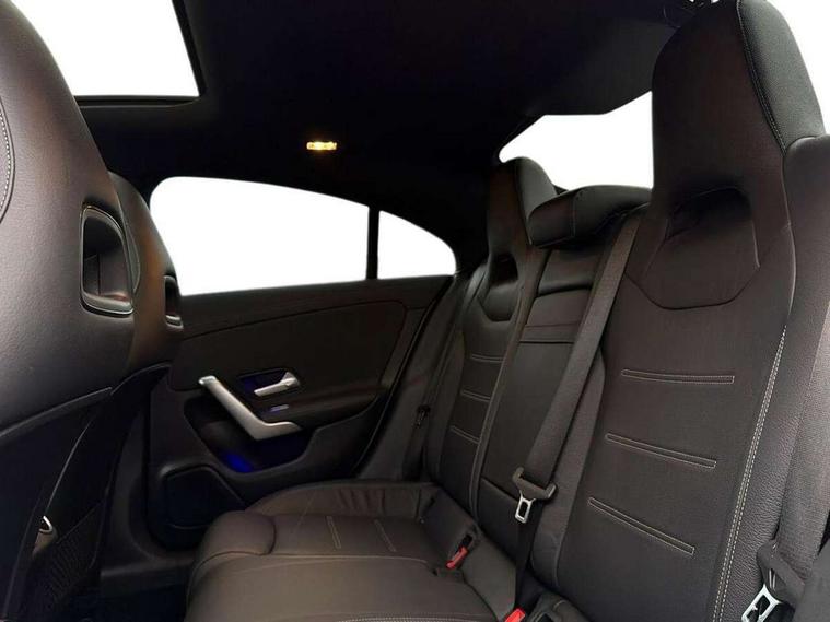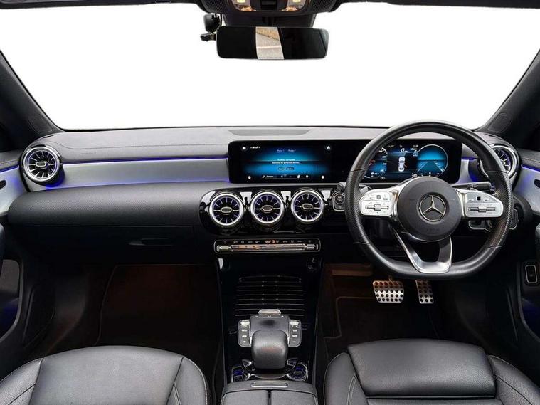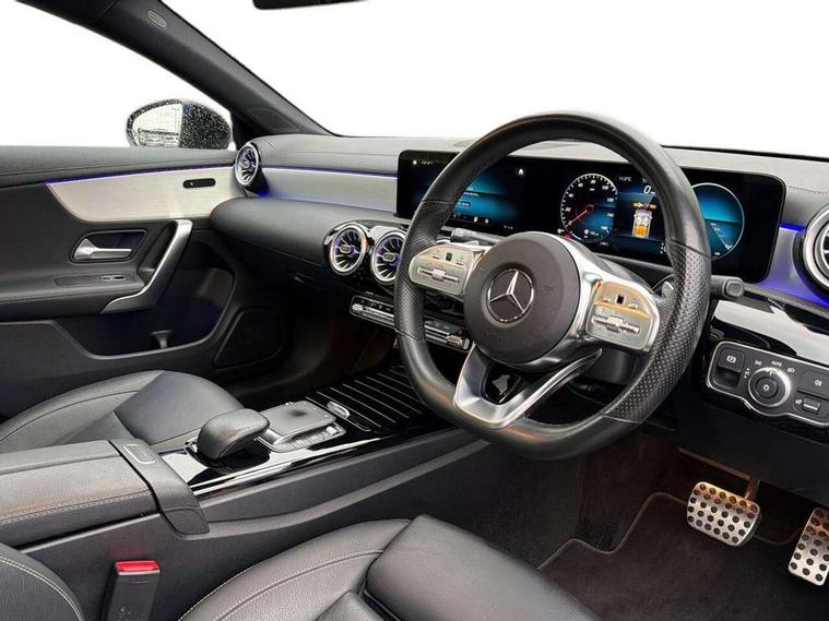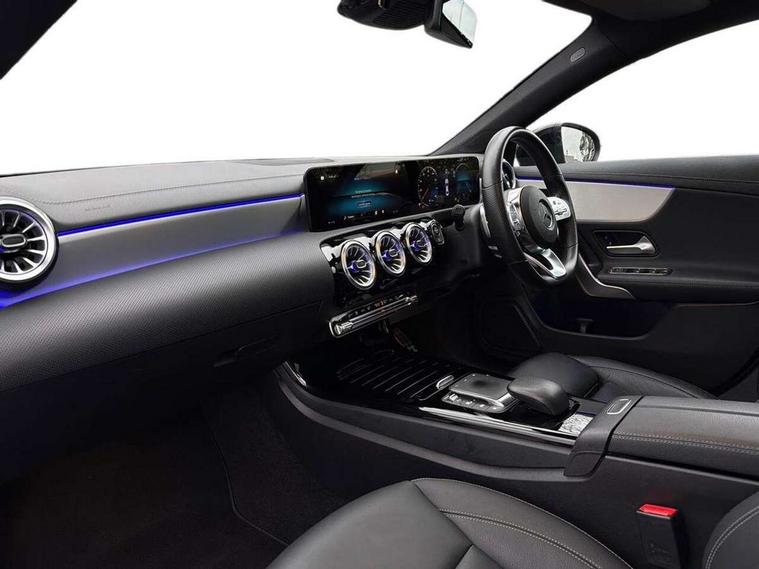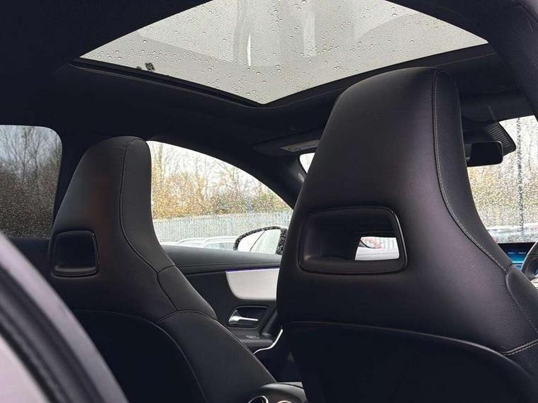 10.25 inch Instrument display with digital cockpit, 10.25 inch touchscreen central media display, Active lane keeping assist, Attention assist - Monitors steering behaviour and long journey fatigue, Blind spot assist, Bluetooth connection, Car wash mode, Cruise control with limiter, Direct steer system with speed sensitive power steering, DYNAMIC SELECT with a choice of driving modes (ECO, Comfort, Sport and Individual), ECO start/stop function, Fluid level warning indicator for fuel, oil, coolant and washer fluid, Hard-disk navigation, Hey Mercedes Voice activation, Lamp failure indicator, Mercedes me connect including emergency call system, accident recovery, breakdown and maintenance management, Mercedes me remote services, Outside temperature gauge, Owners manual and service booklet in English, Pre-installation of private car share, Preinstallation for Mercedes Benz link, Radio aerial integrated into front and rear windshields, Service indicator (ASSYST), Smartphone integration with Apple CarPlay and Android auto, Speed limit assist, Traffic sign assist, Trip computer in multifunction display with current consumption indicator, Lowered comfort suspension, Rear axle multi-link, DAB digital radio tuner, MBUX multimedia system, Mid-range sound system, USB (type C) ports (2) in stowage compartment and 1 in front of centre console, Adaptive brake lights, AMG body styling with AMG front apron and rear apron and visible exhaust tailpipe in chrome trim elements, AMG bodystyling side skirts, Body colour bumpers, Body colour door handles, Chrome beltline strips, Diamond radiator grille pins in chrome, Electric panoramic sunroof with automatic tilt and convenience closing fuinctions, rain sensor auto closing and electronic roller sunblind, Electric windows, Electrically adjustable and heated door mirrors with integrated LED indicators, Exhaust system with 2 Visible tailpipe trim elements and rear apron with trim in chrome, Headlamp assist automatic headlamp activation, Heated glass rear windscreen + timer control, High level LED third brake light, Integrated LED daytime running lights, Interior mirror with black reading lamps and frameless, LED tail lamp, Multibeam LED headlamps with adaptive highbeam assist plus, Privacy glass with dark tinting on rear side windows and rear window, Rain sensing windscreen wipers with two sensitivity settings, Rear boot, Rear fog lamp, Rear side wing doors, Variable front intermittent wipers, Window line trim strip in chrome, 3 seat bench in 2nd row, 3 spoke flattened bottom nappa leather multifunction steering wheel with perforated leather in grip area, 40:20:40 split folding rear seat backrests, Air conditioning - Two zone thermotronic luxury automatic climate control with display, Air vents with surround in silver chrome, Artico man-made leather upholstery, Automatic child seat recognition sensor, Black roof lining, Brushed stainless steel sports pedals with rubber studs, Electrically adjustable front memory seats including lumbar support, Floor mats with stitched AMG lettering, Front centre armrest with stowage, Galvanished gear shift paddles on steering wheel, Heated front seats, Illuminated front door sills with changeable cover, Illuminated glove compartment stowage, Interior lighting - 64 colour Ambient lighting, Luggage net on driver/front passenger seat backrest, Manually adjustable front seats, Manually height and reach adjustable steering column, Rear armrest with two integral cup holders for drinks, Rear head restraints, Single front passenger seat, Sport seats with fixed head restraints, Stowage compartment in centre console with retractable cover, Sunvisors with illuminated vanity mirrors, Touchpad on center console, Twin front cupholders, Two outer rear seat isofix and top tether child seat fixing points, Keyless go comfort pack - CLA, Light and sight pack - CLA, Mirror pack - CLA, Night package - CLA, Parking package - CLA, Active bonnet pedestrain safety measure which detects an impact and raises bonnet by 65mm, Active brake assist includes forward collision warning system with autonomous braking, Adaptive brake assist with hold function and hill start assist, Anti lock braking system (ABS) with brake assist, Black seat belts, Bonnet with power domes, Brake pad wear warning indicator, Childproof locks manually operated for rear doors and electrically operated for rear power windows, Crash responsive emergency lighting, Driver and front passenger head and sidebags, Driver and front passenger windowbags, Drivers knee airbag, Dual stage driver and front passenger airbags, Electric parking brake, Electronic stability programme with acceleration skid control, ESP curve dynamic assist, Exit warning, Front and rear seatbelt reminder, Front passenger seat occupancy sensor, Three point rear seat belts, Tyre pressure monitoring system, Warning triangle and first aid kit, Guard 360 degree guard vehicle protection system with immobiliser and interior protection, Remote central locking and crash sensor with emergency opening function, Light aluminium with longitudinal grain interior trim, 19" AMG multi-spoke black painted light alloy wheels with high sheen rim finish, Summer tyres, Tirefit tyre sealant kit,