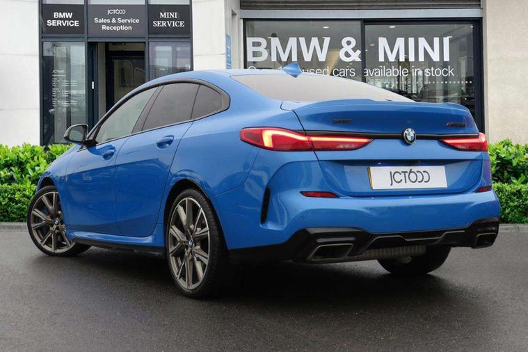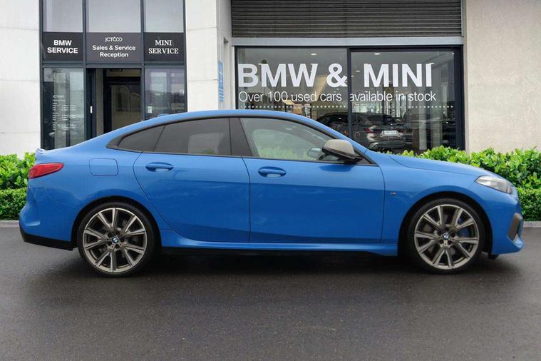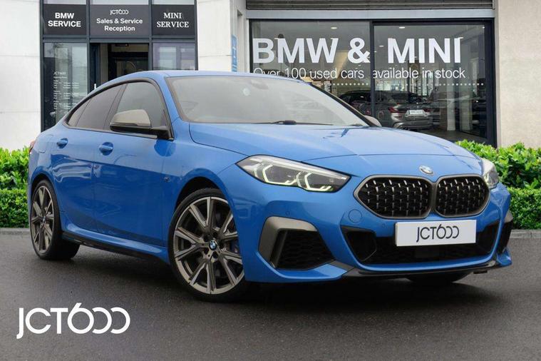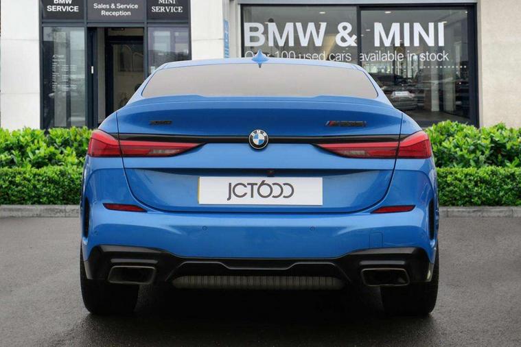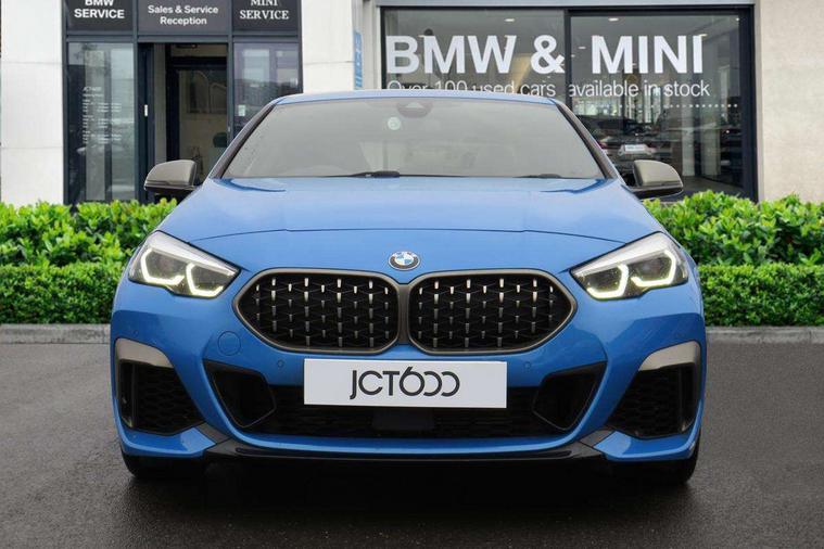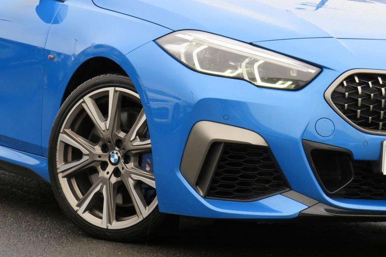 Active guard plus, Attentiveness assist, Auto start-stop, BMW Intelligent Personal Assistant, BMW Live Cockpit Professional with 10.25" high resolution instrument and control display, BMW Online services, BMW operating system with 7.0 mid interface, BMW Teleservices, Check Control warning system for monitoring of lights and door/luggage compartment open warning, Electro hydraulically controlled multi plate clutch in rear axle, Energy efficient operating strategy, iDrive controller with touch function and 7 short cut favourite buttons on centre console, Integrated navigation data with map data via USB +features such as 3D landmarks and micro city models, Integrated owners handbook, Intelligent voice assistant, M Sport steering with M235i xDrive M performance specific settings, On board computer - average speed+fuel consumption, service interval, clock/date, odometer/trip meter, outside temperature display and ice warning, Optimum shift indicator, Personal Profile, Pull away assistant, Speed limiting function, 2 balance shafts, 8 speed sport automatic transmission with electronic selector lever, auto P function, coasting idle, race track, sport, gearchange display manual mode, Aluminium lightweight construction, Double VANOS, Drive performance control with ECO PRO comfort + sport mode, Electronic differential lock, Engine cover with M performance designation, High precision injection, Larger fuel tank capacity (50 litres), Launch control, M235i specific heavily de-throttled engine intake air guide, M235i specific high-performance cooling package, M235i specific larger turbocharger with integrated divert-air valve, Petrol Particulate Filter, Power transmission of front wheel drive on the rear axle via angle transmission on the front axle differential and two part cardan shaft, VALVETRONIC engine management, Variable, stepless and infinitely adjustable distribution of drive torque between the front and rear axles, xDrive intelligent all wheel drive with M235i specific reinforced components, 2x USB Type C ports (for charging and data transfer), 4G LTE Connectivity with hard wied 4G network sim card, DAB digital radio, MP3 players and RDS double tuner, Automatically dimming rear view mirror, Body colour door handles, Direction indicator side lights integrated exterior mirrors, Electric windows - front and rear, with open/close fingertip control and trap release, Exterior mirrors - electrically folding with anti-dazzle, Fading support, Follow me home headlights, Front and rear bumper system with replaceable deformation elements, Front door sill finishers in black plastic with M235i designation, Heated, electrically adjustable exterior mirror aspheric on driver side, convex on passenger side, High gloss black B pillar finish, High gloss shadow line exterior trim, High level third brake light, LED daytime running lights, LED front fog lights, Lightweight engineering, M Performance exhaust system with valve control and minimised exhaust back pressure, M rear spoiler, Model designation on right side of tailgate includes xDrive designation onleft handside for M235i xDrive, Preparation for high beam assistant, Rain sensor with automatic headlight activation, Rear fog lights, Reinforced crank drive, new pistons and adapted con rods, Reversing light in rear light cluster, Welcome lighting, 12V power socket in centre console, 2 cupholders in front centre console, 3 rear seat head restraints, 3 spoke M sports design leather steering wheel finished in nappa leather with specific M badge, Additional under floor storage in luggage compartment, Anthracite finished floor mats with contrasting surround, Anthracite headlining, Automatic two zone climate control air conditioning, Child seat ISOFIX attachment for two outer rear seats and front passenger seat with anchorage points, Conditioned based service, Driver and front passenger seat heating, Front and rear door pockets including bottle trays, Front and rear side armrests integrated into door trim, Front armrest foldable with integrated storage compartment, Front centre interior light over interior mirror and rear centre automatic interior light when door is opened/ignition switched off or via remote key, Front head restraints, Front M Sport seats, Glove compartment, Glovebox with light, Luggage compartment lighting, Manually adjustment steering wheel column, Multi-function controls for steering wheel, Shift-by-wire selector shift, Steering wheel paddles, Sun visors with vanity mirrors and insert tab, Through loading system with 40/20/40 split folding rear seat, Two lashing eyes, Connected pack professional - 2 Series Gran Coupe, Extended Lighting pack - 2 Series Gran Coupe, Extended storage pack - 2 Series Gran Coupe, M Sport exterior styling aerodynamics pack - 2 Series Gran Coupe 235i, 2 tone horn, Airbag - Front driver and passenger, front and rear head, front side, curtain head protection, manual deactivation of front passenger airbag possible, Anti lock braking system (ABS) with cornering brake control, BMW emergency call, Brake drying, Braking readiness, Crash sensor activating of airbags, Unlocking doors, hazard warning lights, interior light, safety battery terminal, Dynamic stability control + (DSC+), Dynamic Traction Control - DTC, Electrically operated hand brake, Integrated torsen mechanical limited slip differential on front axle, M Sport braking system in blue high gloss + blue painted brake calipers with M designation, M sport seatbelt, Rear brake discs, Rear child proof door locks, Seat belt security check for driver and front passenger, Seatbelt warning, Side impact protection, Three point seat belts on all seats including front belt stopper, pyrotechnic belt tensioners and belt force limiters, Trailer stability control, Tyre pressure monitoring system, Ventilated front disc brakes, Warning triangle and first aid kit, Central locking switch for all doors, fuel filler cap and luggage compartment, Deadlocking function system to all doors, Dri