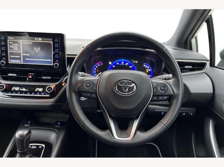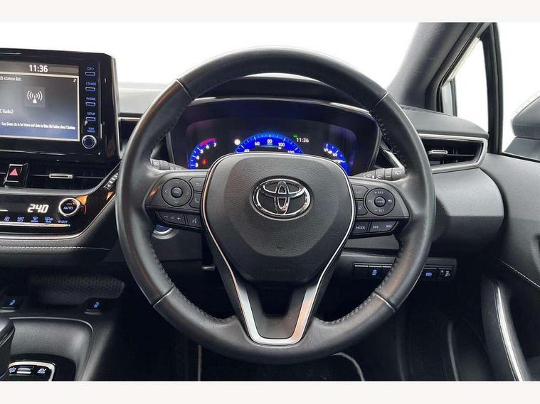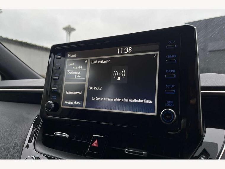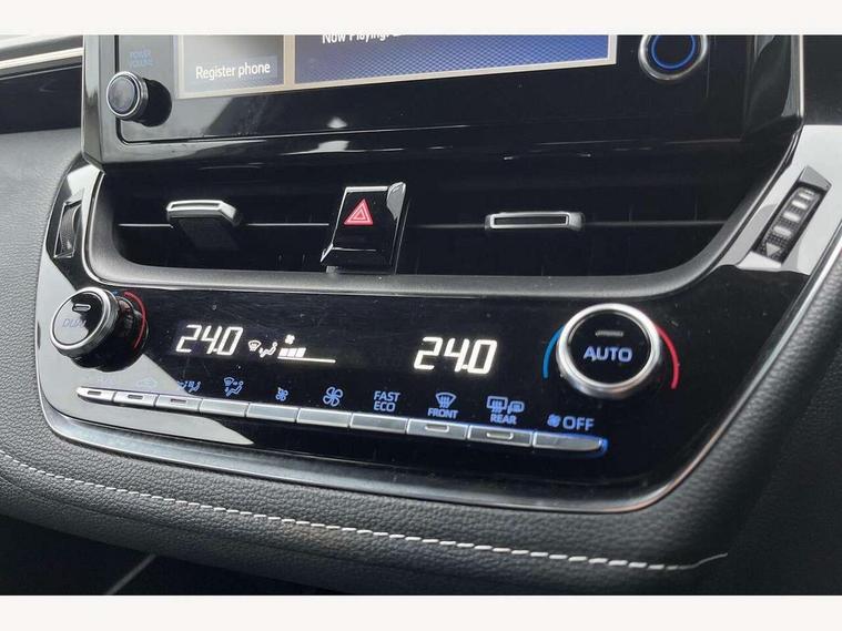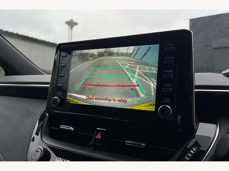 7" Multi information display screen, Bluetooth telephone connectivity, Connected car functionality upgrade, tracker, remote status and e-care, Dynamic radar cruise control (with RSA) including switch on steering wheel, E-call, Electrically assisted power steering, EV drive indicator, Lane Departure Alert (LDA) switch on steering wheel, Memory on adjustable speed limiter, Push button start, Reversing camera, Smartphone integration with Apple CarPlay and Android auto, Gasoline particulate filter, Vehicle Stability Control (VSC), 6 speakers, 8" Touchscreen with MM19 Multimedia system and voice recognition, AM/FM radio, DAB Digital radio, USB and Aux in connectors + 12V front outlet, USB charging port in centre storage box, Aluminium roof rails, Anti-jam protection on power windows, Auto up and down function on all power windows, Automatic headlights with high beam assist, Black metallic surround on lower front grille, Black toyota logo in front, Body colour rear spoiler, Body coloured bumpers, Body coloured door mirrors, Body coloured outside door handles, Follow me home headlights, LED daytime running lights, LED front fog lights, LED Headlights, LED High mounted stop light, Manual day/night rear view mirror, Noise reduction layer on front windows, Power adjustable heated door mirrors, Power front windows, Power rear windows, Rain sensor, Rear side wing doors, Rear window defogger, Rear window wiper, Shark fin antenna, Time adjustment on intermittent wiper, Turning signal integrated indicators in door mirrors, Unique lower skirt, Unique side rocker with black insert, UV-filter on driver and passenger windows, 12v power outlet - luggage side, 3 rear headrests, 3 seat bench in 2nd row, 3 spoke leather steering wheel + gear knob, 60/40 split folding rear seat, Adjustable speed limiter switch on steering wheel, Audio, multimedia and telephone switches on steering wheel, Boot light, Boot underfloor storage, Clean air filter, Driver and front passenger personal light, Driver and passenger assist grip, Driver and passenger sun visor with mirror and light, Dual sided deck board in boot, Dual zone automatic air conditioning with ECO mode switch, Fabric armrests, Front and rear cup and bottle holders, Front and rear door pockets, Front head restraints, Front passenger seat, Heated driver and front passenger seats, Illuminated entry system in room lamp, ISOFIX seat fixing (2 fixings on rear outer seats), Leather gear shift with satin chrome on gear shift console, Manual height adjustable for driver and front passenger seat, Passenger seat back pocket, Pollen filter, Power adjustable lumbar support on driver seat, Power window switches with satin chrome inserts, Quilted fabric upholstery with grey stitches seats, Rear armrest with 2 cupholders, Rear passenger air vents, Rear passenger coat hooks (2), Rear passenger personal lights, Retractable tonneau cover with luggage partition net, Satin chrome inside door handles, Shopping bag hooks in luggage compartment, Side storage in boot, Sliding armrest on centre console box, Slow opening glovebox with lights, Tilt/telescopic steering column, Tonneau cover with under floor storage, Voice recognition switch on steering wheel, Whiplash Injury Lessening (WIL) feature (active headrest) for seats, Toyota safety sense 2 pack - Corolla, 3x3 point rear seatbelts, Adjustable driver and front passenger seat belt extender to top anchor point, Anti lock braking system + Electronic brake force distribution, Brake assist function, Child locks on rear doors, Downhill Assist Control (DAC), Electronic parking brake, Emergency brake light signal (EBS), Front passenger airbag on/off switch, Front seatbelt reminder, HAC - Hill start assist control, Rear seat belt reminder, Seatbelt pretensioners and force limiters, Supplemental restraint system (SRS) 7 airbags - dual driver, dual side curtain, side impact and driver knee airbags, Traction control, Tyre pressure warning system, Acoustic vehicle alert system (AVAS), Alarm with motion sensor and immobilizer, Remote central locking + deadlocks, Satin chrome dash trim, Soft touch texture on upper dashboard, Stitching on lower dashboard, Space saver spare wheel, Unique wheel finish with red wheel cap,