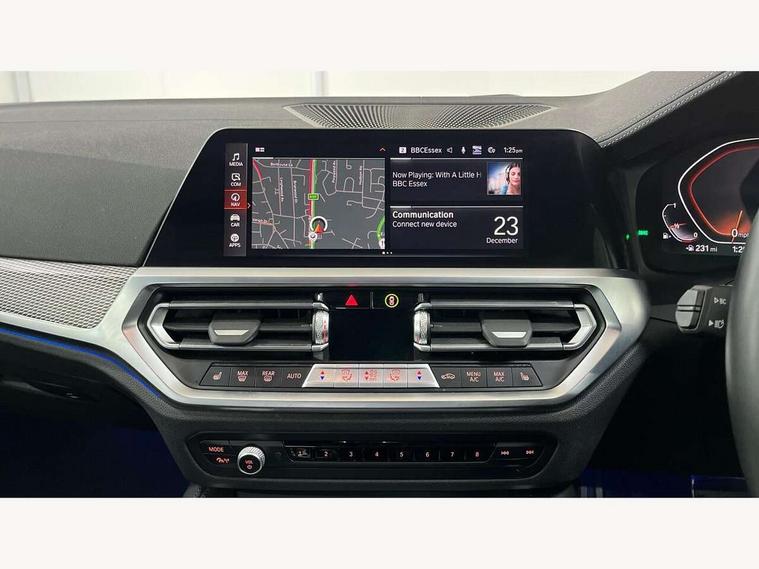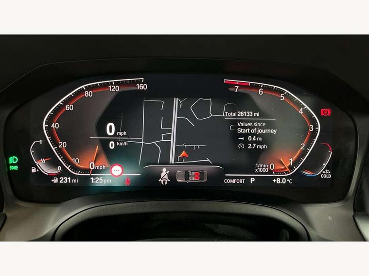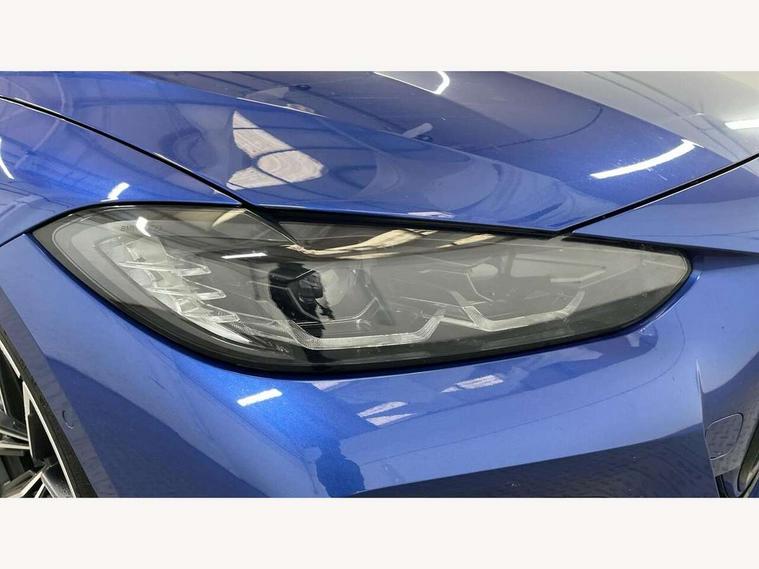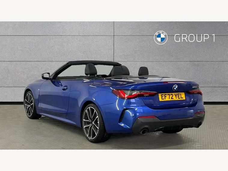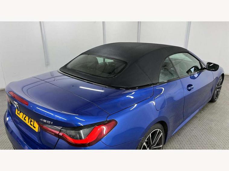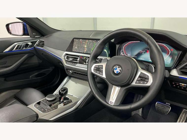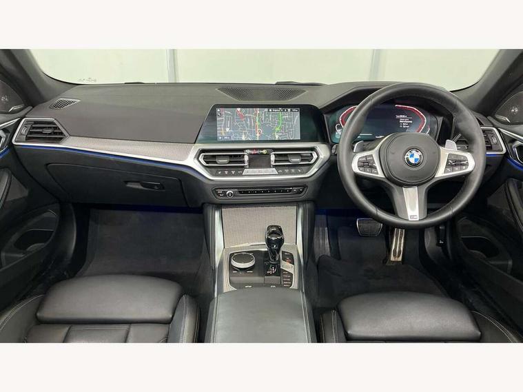 Active guard plus, Attentiveness assist, Auto start-stop, BMW ConnectedDrive online services, BMW iDrive controller on centre console, BMW Live Cockpit Professional Nav with 12.3" instrument display + 10.25" display, Intelligent Voice Assist, BMW OS 7, HDD, 2USB, 4G LTE connect, BMW service history, BMW Teleservices, Brake pad wear indicator in front and rear, Check Control warning system for monitoring of lights and door/luggage compartment open warning, Condition based service, Cruise control with speed limit function, Electric power steering with Servotronic steering optimised at all speed ranges, Gearshift time display in manual mode, Instrument cluster with speedometer with mph readout, tachometer, fuel gauge and oil temperature gauge, Integrated owners handbook, Oil sensor for level and grade, warning by check control system, On board computer - average speed, fuel consumption, outside temp display with acoustic warning, clock/date, service interval, odometer/trip meter, Optimum shift indicator, Run flat indicator, Shifting point display, Variable sport steering, 8 speed automatic steptronic transmission with gearshift paddles, Balanced 50/50 weight distribution, Double joint spring strut front axle, Double VANOS, Drive performance control - ECO PRO, comfort and sport modes, High precision injection, Low centre of gravity, M sport suspension, Petrol Particulate Filter, Stroke dependent dampers, VALVETRONIC engine management, 2x USB Type C ports in front centre console for charging and data transfer, 2x USB Type C ports in rear centre console for charging, DAB tuner, Electronic service booklet, Acoustic glazing, Automatic headlight beam throw control with load dependent regulating reaction, dynamic compensation of braking dive and acceleration squat, Automatic windscreen wipers and automatic headlight, Automatically dimming electrochromatic rear view mirror, BMW emblem on engine compartment lid and tailgate, BMW kidney grille with mesh grille front side of the nuggets in matt aluminium and frame in chrome high gloss, Body colour fuel filler flap, Body colour roof fin, Brushed aluminium inserts in the front door sill finishers with BMW designation, Door sill strips, Dynamic brake lights, Electric windows - front and rear, with open/close fingertip control, anti trap facility and comfort closing function all round, Exterior mirrors - electrically folding with anti-dazzle, Fading support, Follow me home headlights, Front and rear bumper system, Front apron plastic in body colour, Green tinted heat protection glazing, High gloss shadow line exterior trim, Illuminated bow type door handles in body colour drivers side with door lock, Interior rear view electrochromatic mirror with automatic anti dazzle function, LED daytime running lights, LED front fog lights, LED front indicators, Licence plate panel integrated into front bumper and tailgate, Lightweight engineering, M designation on front side panels, left and right, Model designation on right side of tailgate, One piece front bumper cover including towing eye cover in body colour, Preparation for high beam assistant, Rear boot, Reversing light, Side frame decorative moulding black matt, Third brake light, Two part LED tailights in L-shape with components in smoked glass, brake light, LED turn indicator and rear fog light, Visible exhaust tailpipe finisher, Visible VIN plate, Welcome lights in interior and door handle area, Widened track and increased camber values for max transverse dynamics, agility and steering precision, Window recess cover black high gloss, Windscreen wipers with integrated heated washing jets, 12V power socket in front centre console, 2 2nd row folding seats, 2 front cupholder in centre console with clamping elements and matt black inlay, 2 Rear seat headrests, 2nd row centre armrest with built-in cupholders, 3 spoke M sport leather multifunction steering wheel, 3 zone automatic air conditioning, 4 pieces lashing eyelets in luggage compartment, Armrest integrated in front and rear door trim + front centre console armrest, BMW ID, Electric seat adjustment with memory, Four grab handles integrated in roof lining, Front and rear door pockets, Front and rear reading lights, Front sport seats, Heated driver and front passenger seats, Height adjustable front headrests, Height adjustable mechanically and infinitely variable steering column, Illuminated armrest storage compartment, Illuminated glove compartment with separate small compartment, Make-up mirror lights, Single front passenger seat, Storage compartment in rear centre console, Sunvisors with illuminated vanity mirrors and ticket pocket, Through load system, Toolkit located in luggage compartment, Velour front floor mats, Vernasca leather upholstery, Ambient lighting pack - 4 Series, Connected professional pack - 4 Series, M sport exterior styling pack - 4 Series, 2 x 3-point rear seatbelts, Battery safety cut-off, BMW emergency call, Brake energy regeneration, Braking pre-tensioning, Coasting in idle in ECO PRO mode, Cornering brake control (CBC), Crash sensor activating of airbags, Unlocking doors, hazard warning lights, interior light, safety battery terminal, Driver and front passenger side airbags, integrated in the door side seat backrest bolsters for all seat variants, Driver/Front Passenger airbags, Dry braking, Dynamic brake control, Dynamic stability control + (DSC+) - Anti-lock Braking System (ABS) with brake assist and cornering brake control + Automatic Stability Control (ASC), Dynamic Traction Control - DTC, Electric parking brake including automatic hold function and automatic release of the parking brake when driving off, Electronic differential lock control (EDLC), Front and rear ventilated brake disc, Front passenger manual airbag deactivation, Head airbags for all 4 outer seats, Hill start assistant, Seat belt security check for driver and front passenger, Seat belt with belt stopper, pyrotechnic belt tensioners and belt force limiters, Seat 