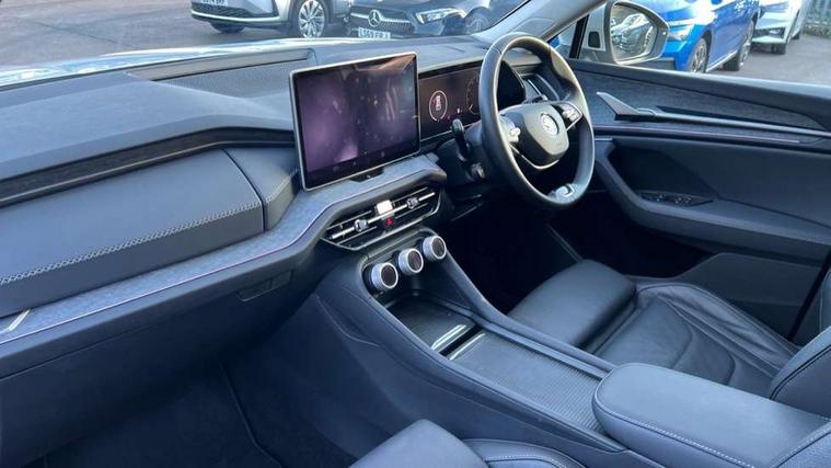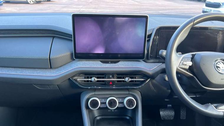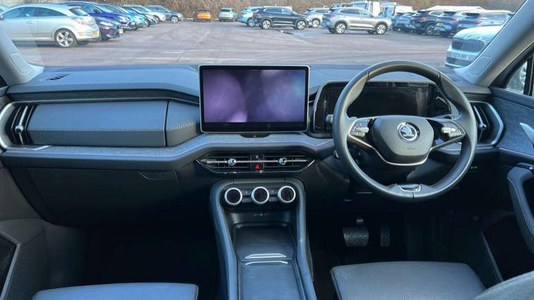 13" satellite navigation touchscreen display, Blind spot detection with door exit warning, Bluetooth system, Drive mode selector, Driver alert with fatigue sensor, Driver drowsiness alert system, Dry display cleaner, e call+, Front cross traffic assist, Lane assist, PAS, Rear traffic assist, Tailgate unlocking from outside, Traffic sign recognition, USB C Port x 2 in front centre console, Virtual Cockpit - 10.25" digital display, Voice control system, Wireless charging for two smartphones (15W) with cooling function, Wireless SmartLink for Apple CarPlay and Android Auto, Stop/start function, 2x USB-C in the rear, DAB Digital radio, Aero front windscreen wipers with intermittent function, Auto dimming rear view mirror, Black wheel arch surrounds, Body colour bumpers, Body colour door mirrors and handles, Cornering light and poor weather light, Electric folding /adjustable/separted heated/folding door mirrors, auto dimming with boarding sports and memory function, Electric front and rear windows, Heat insulating glass in windshield, Heated rear window, Ice scraper in fuel tank cap, Invisible tailpipe, LED daytime running lights, LED rear fog light, LED third brake light in rear spoiler, Light assistant with automatic headlight control and coming home feature, Logo projection in door mirrors, Privacy glass, Rear side wing doors, Rear spoiler, Rear window wiper, Safety reflectors on front and rear doors, Window control switches with black trim, Windscreen wipers with rain sensor, Without engine designation, 1.5l bottle holder points in all door, 12V socket in boot, 1x centre rear reading light, 2 seat bench in 3rd row, 3 configurable smart dials with 32mm coloured display, 3 seat bench in 2nd row, 4 foldable roof handles with rear coat hooks, Automatic gear selector on steering wheel, Chrome interior door handles, Driver/front passenger reading lights, Fabric headlining, Fixed bench 40:60:40 split folding backrests, Front and rear floor mats, Front centre armrest with jumbo box storage compartment, cup holder and 12V socket, Front courtesy lights, Height adjustable front headrests, Interior ambient lighting, Isofix child seat fittings in outer rear seats and front passenger with top tether, Manually adjustable steering column, Pollen filter, Rear centre armrest with cupholders, Rear seat boot backrest release, Retractable luggage compartment cover, Single front passenger seat, Sliding trunk cover, Small Bags on the inner sides of the front backrests, Storage pocket including mobile phone pockets on the backs of the front seats, Sunvisors with illuminated vanity mirrors, Three rear height adjustable headrests, Ticket holder on A Pillar, Tri zone climate control, Umbrella in door panel x1 made from sustainable materials, Upper and lower glovebox with card holder and coin compartment, USB C port by rear view mirror for charging only (15W), Exterior styling package - Kodiaq, Auto door release and activation of warning lights in the event of an accident, Driver and front passenger airbag with knee airbag and front passenger airbag deactivation, Electric child locks, Electronic parking brake, ESC (incl. ABS+EMD+MSR+ASR+EDL+HBA+DSR+RBS+ESBS+MCB+TSA+XDS), Front assist with braking reaction to vehicles, pedestrians and cyclists, Front disc brakes, Fuel cut off safety device, Height adjustable front 3 point seatbelts + pretensioners, Hill hold control, Junction assist with automatic emergency braking, Rear disc brakes, Safety vest holder in door, Seat belt reminder for all seats, Three point rear seat belts, Two tone horn, Tyre pressure monitor, Anti-theft wheel bolts, Immobiliser, Remote central locking with 2 keys, Black/grey fabric with green cross stitching on dashboard, Swan feathers grey dashboard and door decorative inserts, Breakdown kit,