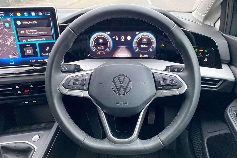 Activated carbon canister, Adaptive cruise control (ACC) with speed limiter and front assist (reacting to vehicles pedestrians and cyclists), Advanced driver attention and drowsiness monitor, Driver alert system, Dynamic road sign display, E-Sim card for online connectivity, eCall emergency call system, Multi-color Digital cockpit pro, selection of different info profile possible, Multifunction camera for distance control, Navigation system, Oncoming vehicle braking when turning including swerve support, Power assisted speed sensitive steering, Preparation for light assist system, Speedo, rev counter, electronic odometer, trip, service interval display, exterior temperature and fuel gauge, Voice assistant and voice enhancer with chat GPT, Warning signal and warning light for front and rear seatbelts not fastened, We connect plus preparation, We connect preparation, Wireless app connect, Petrol Particulate Filter, Start-stop system with battery regeneration (recuperation - energy recovery during braking), XDS electronic differential lock for improved traction and handling, 2 USB C ports in front, 2 USB charging sockets on the centre console in the rear charging capacity upto 45W, Comfort telephony + wireless charging, without wireless aerial connection, Digital radio reception (DAB), Diversity antenna for FM reception, Gaming platform via car app, Infotainment system with 12.9" display, 3rd brake light, Auto headlights, Automatic headlamp activation with Coming home and Leaving home feature, Body colour door handles, Body colour door mirrors, Chrome plated radiator grille inserts and light switch surrounds, Dynamic headlight range control, Exterior mirrors convex on the left and aspherical on the right, Front and rear electric windows, Heat insulating windshield made of laminated glass, LED daytime running lights, LED rear combination lights, Rear exhaust tailpipe, Rear fog light on one side and reversing lights on both sides, Rear side wing doors, Rear tinted glass 65% light absorbing from B pillar backwards, Rear windscreen washer and wiper with interval delay, Remote electrically foldable door mirrors, puddle lights and reverse activated passenger's door mirror, Standard bumpers, Welcome light with surround lighting, 12V socket in front centre console, 12V socket in luggage compartment, 3 rear head restraints, 3 seat bench in 2nd row, Front centre armrest, Front head restraints, Front passenger seat, ISOFIX anchors for child seats on outer rear bench seats and on front passanger seat compatible for i-Size, Leather gearshift handle, Luggage compartment lighting, Rear cupholder and loadthough, Soul black instrument panel, Split folding backrest with centre armrest and unsplit rear seat bench, Standard pedal cluster, Storm grey roof lining, Sun visors with illuminated vanity mirrors, 3 point height adj front seatbelts + pretensioners, 3 rear three point seatbelts, ABS, Autonomous emergency braking front assist with pedestrian and cyclist monitoring, Child locks on rear doors, Driver and front passenger airbag with front passenger airbag deactivation, Electronic parking brake with auto hold, ESC (Electronic Stability Control), Extended pedestrian protection measures, Rear disc brakes, Two tone horn, Tyre pressure monitoring system, Volkswagen roadside assistance, Anti theft wheel bolts, Preparation for alcohol interlock, Nature cross brushed decorative inserts for dashboard and front door panels,