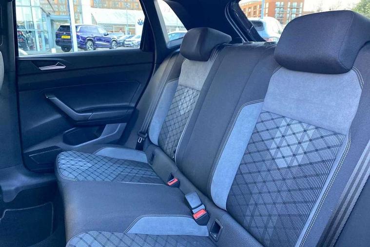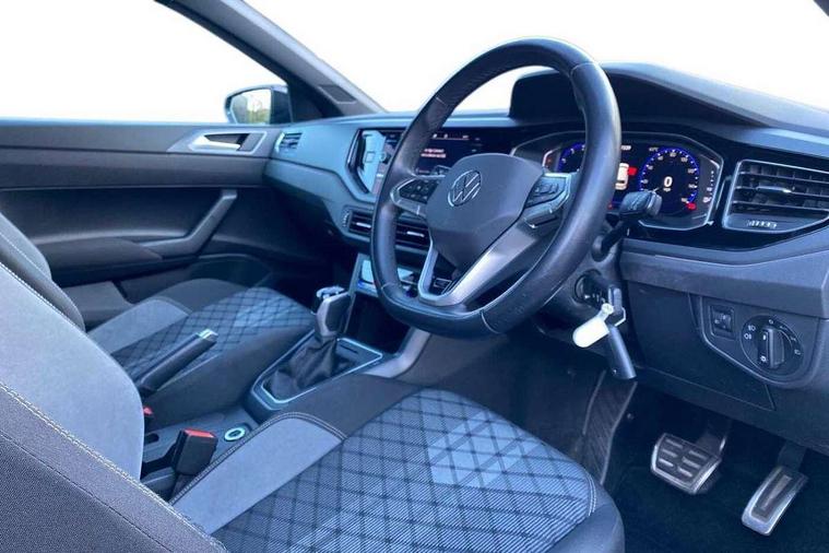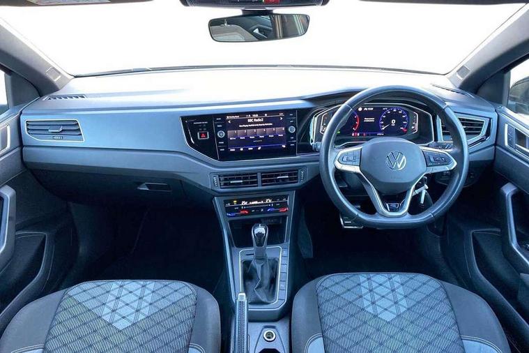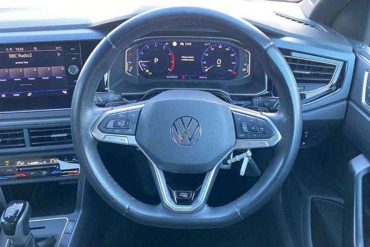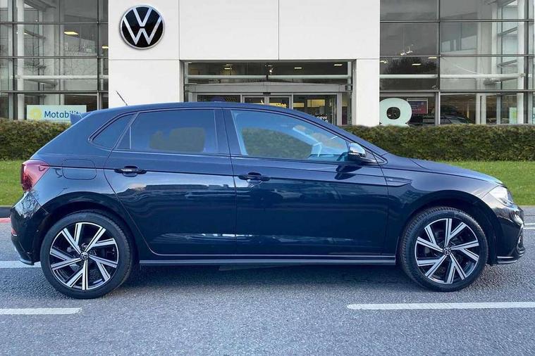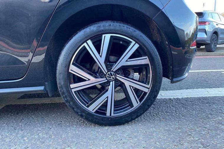 Adaptive cruise control with follow-to-stop and speed limiter, Bluetooth mobile phone interface, Digital Cockpit Pro with 10.25" Display, Driver alert system, Dynamic road sign display, Emergency call service, Power assisted speed sensitive steering, Preparation for We connect and We connect plus, Speedo and rev counter, electronic odometer, trip, service interval display and fuel gauge, Standard rear axle, Travel Assist - Lane keeping system and traffic jam assist, Travel assist including emergency assist, Trip computer, Warning signal and warning light for front and rear seatbelts not fastened, Washer fluid level indicator, Wireless app connect, Front wheel drive, Rear shock absorpion, Start-stop system with battery regeneration (recuperation - energy recovery during braking), DAB Digital radio, Diversity antenna for FM reception, Front and rear 6 speakers, Body colour bumpers, Body colour door handles, Body colour door mirrors, Electric front windows, Front scuff plates with R-Line logo, Heat insulating darkened glass in side and rear windows, Heat insulating glass windscreen, Power folding adjustable/heated exterior mirrors and front passenger exterior mirror lowering function, Rear electric windows, Rear fog light, Rear side wing doors, Rear tinted glass from B-pillar backwards approx 65% tinted, Rear windscreen washer and wiper with interval delay, Third brake light, 12V power socket in centre console, 2 USB-C ports in the front, 2 USB-C charging sockets on the center console in the rear, 3 rear head restraints, 60/40 split folding rear seat and rear seat bench not split, Air care climatronic air conditoning system with active combination filter and 2-zone temperature control, Black roof lining, Ceramique headliner, Chrome plated radiator grille inserts, air vent surrounds and light switch surrounds, Door and side trim panel, Driver and front passenger seat height adjustment, Driver/passenger sunvisors with illuminated vanity mirrors, Front + rear carpet mats, Front centre armrest, Front footwell illumination, Front seat backrest storage pockets, Front sports comfort seats, Handbrake lever handle in leather, Isofix child seat preparation easy-fit (for two outer rear seats, and front passenger seat) compatible with I-size, Karoso artvelours cloth upholstery, Leather trimmed gear knob, LED interior light with switch off delay and dimmer, 2 reading lights front and rear, Luggage compartment cover, Luggage compartment floor, Luggage compartment lighting, Lumbar adjustment for front seats, Single front passenger seat, Stainless steel pedals, Standard pedal cluster, Three spoke leather wrapped multifunction steering wheel with shifting paddles, Light and sight pack - Polo R-Line/Black Edition, 3 point height adj front seatbelts + pretensioners, 3x3 point rear seatbelts, ABS, Driver and front passenger airbag with front passenger airbag deactivation, Drivers and front passengers safety optimised head restraints, ESC (Electronic stability control) + EDL (Electronic Differntial lock) and ASR (Traction control), Extended and predictive pedestrian/ cyclist protection, Front curtain and side airbags with center airbag, Front/rear disc brakes, Hill hold control, Manual child lock in rear doors, Single tone horn, Tyre pressure loss indicator, Alarm with interior protection, Anti-theft alarm system with interior monitoring, backup horn, and towing protection, Anti-theft wheel bolts, Electronic engine immobiliser, Chrome applications on rotary light, mirror adjustment, window regulator switches, outlet with frame in black, Dark grey anodised matt decorative inserts in dash and front door panels, Low rolling resistance tyres,