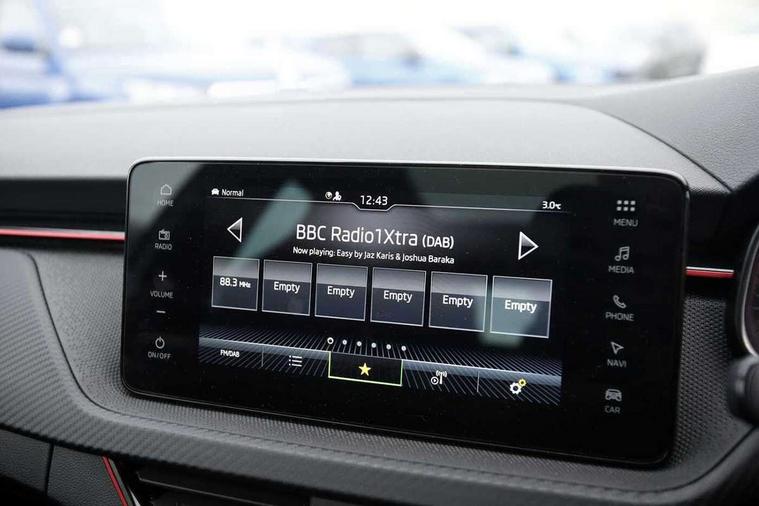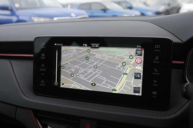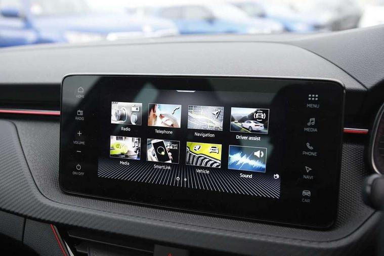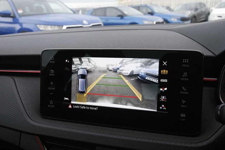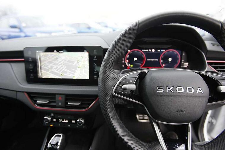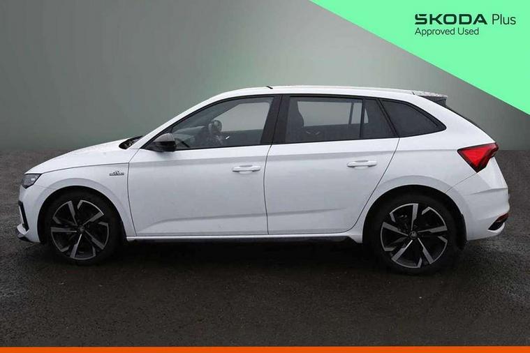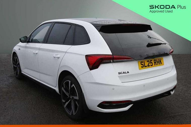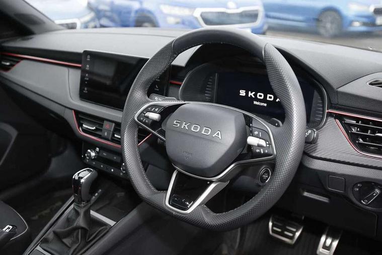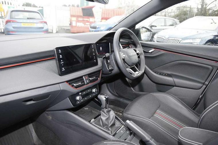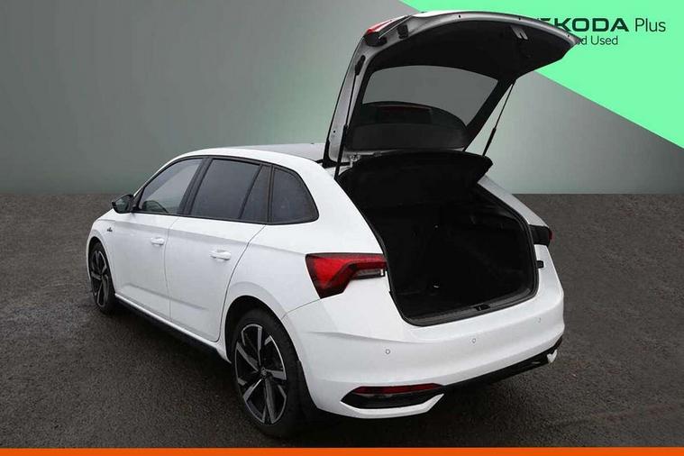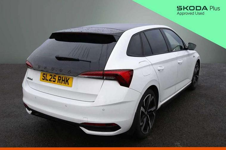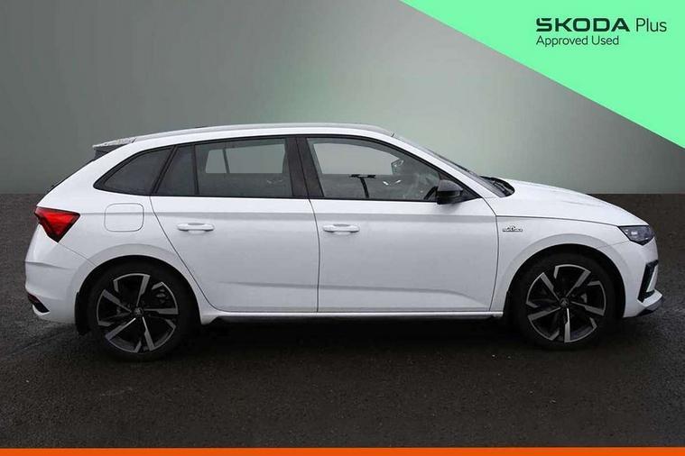 Advanced driver attention and drowsiness monitor, Bluetooth, e-Call (emergency call), Front assist system, PAS, Rear parking sensors, Rear view camera, Speed limiter, Tailgate, Traffic sign recognition, Virtual Cockpit - 10.25" digital display, Voice control system, Wireless smartlink, 4 USB C ports, 8 Speakers, 9.2" Skoda navigation display, DAB radio, Auto dimming rear view mirror, Automatic headlamp activation with Coming home and Leaving home feature, Automatic high/low beam, Automatic intermittent wipers, Black door mirrors, Black lettering on boot lid, Black radiator grille, Black rear diffuser, Black roof spoiler, Body colour bumpers, Body colour door handles, Chrome moulding around grille, Extended tailgate glass, Front and rear electric windows, Heated rear window, LED 3rd brake light, LED brake lights, LED daytime running lights, LED high beam, LED low beam, Light sensors, Monte carlo plaque, Panoramic glass roof, Privacy glass, Rear LED fog light, Rear side wing doors, Rear wiper, Tinted windows, Unique dark chrome design logo on alloy wheels, 12V socket in luggage compartment, 3 seat bench in 2nd row, Aluminium pedals, Ambient lighting in white/red, Black / White armrest stitching, Black ceiling, Black roof headlining, Cargo elements, Chrome inner door handles, Door inserts in art.leather carbon, Driver and passenger sun visors with vanity mirror, Dual zone climate control, Front and rear roof lights, Front centre armrest, Front head restraints, Height adjustable driver seat, Height adjustable passenger seat, Ice scraper, Illuminated glove compartment, Inner circulation control with pollen filter, ISOFIX for front passenger seat, Isofix preparation for back seats, Leather gearknob and handbrake lever, Luggage net under rear parcel shelf, Manual lumbar support for front seats, Monte Carlo cloth upholstery, Net package and top tether hooks in boot space, Pocket on the back of both front seats, incl. mobile phone pockets, Rear centre armrest, Red hotstamping, Single front passenger seat, Skoda lettering on steering wheel, Sport seats, Textile floor mats, Third rear headrest, Ticket holder, Top tether for front passenger seat, Umbrella in driver's door, Light and view plus pack - Scala, 3x3 point rear seatbelts, ABS, Child locks, Curtain airbags and front side airbags, Disc brakes, Driver and front passenger airbags, ESP, Hill hold control, Manual leather parking brake, One tone horn, Passenger airbag switch off function, Seatbelt reminder for driver and front passenger, Tyre pressure monitoring system, Anti theft alarm system with interior monitoring, backup horn and towing protection, Anti-theft wheel bolts, Remote central locking with 2 remote folding keys, SAFE function for remote central locking, Carbon effect decorative inserts, 18" Ursa black diamond cut alloy wheels,