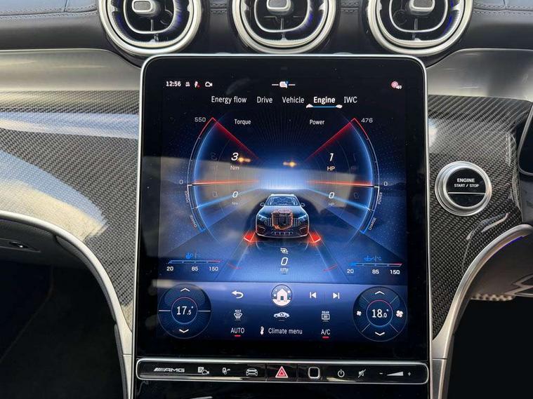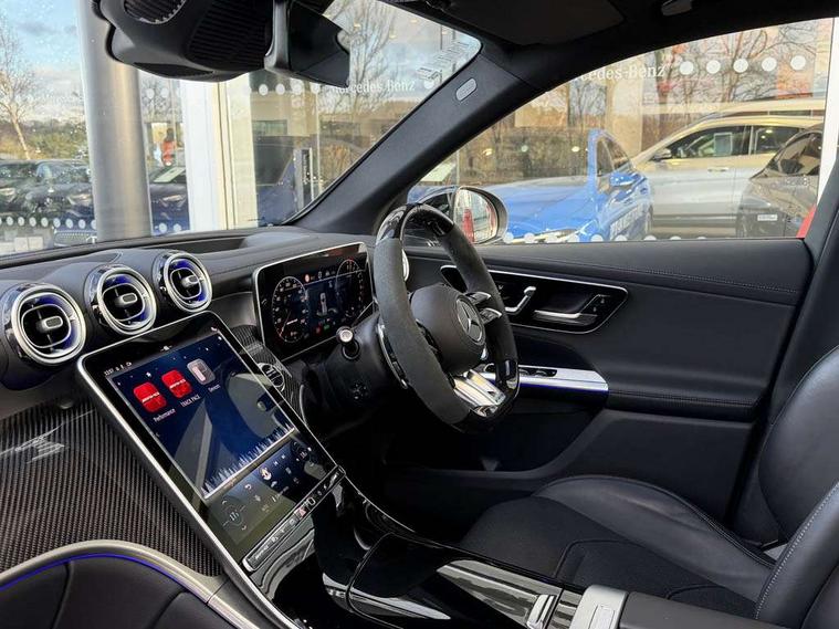 11.9" high resolution multimedia colour display, 12.3" Digital individually configurable instrument display, Acoustic ambient protection, Acoustic presence indicator, Active lane keeping assist, AMG DYNAMIC SELECT with a choice of eight driving modes(Electric, Comfort, Battery Hold, Sport, Sport+, Race, Slippery and Individual), AMG track pace, Attention assist, Bluetooth interface for hands free telephone, Collision prevention assist plus, Dashcam - front camera for video recording, eCall emergency call system, Fingerprint scanner, Fluorescent jacket for driver, Head up Display, Instrument display in miles with English lettering, MBUX augmented reality for navigation, MBUX navigation premium, MBUX voice control activated by keywords "Hey Mercedes", Mercedes connect me with remote online services, Multi function trip computer, Outside temperature display, Pre-installation for digital key transfer, Pre-safe function, Rear axle steering, Remote and charging services plus, Remote boot release, Road sign recognition system, Service indicator (ASSYST), Smartphone integration, Sports direct steer system with speed sensitive steering, Status display for rear seat belts in instrument cluster, Tailgate, Traffic sign assist, Wireless charging system for mobile devices in the front, 4MATIC permanent four wheel drive, 5m charging cable for household socket (mode 2), 5m charging cable for wall box/public charging stations(mode 3), 65 litre fuel tank, 9G TRONIC plus automatic transmission, Alternating current charging system (AC charging), AMG Active Ride Control roll stabilisation, AMG Ride Control suspension, Petrol Particulate Filter (PPF), Burmester 3D surround sound system, DAB digital radio tuner, MBUX extended functions, Sound personalisation, Adaptive brake lights, Adaptive high beam assist plus, Aluminium look running boards with rubber studs, AMG exhaust system with sporty engine sound, AMG fuel cap, AMG radiator grille with vertical struts in high gloss chrome and AMG logo, AMG Real Performance Sound, AMG spoiler lip, Auto dimming rear view mirror, Auto headlights, Black roof rails, Digital light LED headlights, Electric panoramic glass sunroof, Electric windows with one touch opening/closing and obstruction sensors, Electrically adjustable and heated door mirrors, EQ Hybrid badging on front wings, Headlight washers, Heat and noise insulating acoustic glass, Heat insulating dark tinted glass, Heated rear window, High level LED brake light, Integrated LED daytime running lights, LED indicator lights, LED rear fog lights, LED tail lamp, Mercedes AMG exterior, Rain sensor windscreen wipers, Range adjustable headlights, Rear side wing doors, Rear wiper, Transparent Bonnet, Variable front intermittent wipers, Welcome and follow-me home light functionality, Wheel arch liners in the vehicle colour, 3 seat bench in 2nd row, 40:20:40 split folding rear seats, Ambient lighting premium with projection of brand logo, AMG floor mats, AMG Nappa leather upholstery, AMG performance steering wheel in carbon fibre design / MICROCUT microfibre with AMG steering wheel buttons, Artico leather dashboard with contrast stitching, Audio and onboard settings control on multifunction steering wheel, Automatic child seat recognition sensor, Double cup holder in centre console, Electrically height/reach adjustable steering column, Front centre armrest with stowage compartment, Front head restraints, Front seats with electric backrest, height adjust with 4 way electric lumbar support, Gearshift paddles on steering wheel, Heated steering wheel, Illuminated door sill panels with AMG lettering and with exchangable cover, Illuminated glove compartment, Load compartment cover, Mercedes AMG interior, Partition net, Rear head restraints, Rear top tether child seat ISOFIX attachment, Single front passenger seat, Sports pedals with stainless steel surfaces and rubber studs, Sun visors with illuminated vanity mirrors, THERMATIC automatic climate control, AMG Aerodynamics package - GLC AMG, AMG Driver's package - GLC AMG, AMG Exterior Night pack - GLC Coupe AMG 63 Se, Boot comfort package - GLC, Easy tailgate pack - GLC, Interior lighting pack - GLC AMG, Keyless-Go comfort package - GLC, Memory pack - GLC, Mirror pack - GLC AMG, Parking package with 360 degree camera - GLC, Stowage space package - GLC, USB Plus Pack - GLC, 3 rear 3 point seatbelts, Active bonnet, Anti-lock braking system (ABS), Automatic front passenger airbag deactivation, Black seat belts, Child proof door locks, Dual-stage airbags - driver and front passenger, driver knee bag and window bags for driver, front passenger and rear passengers, Electronic key chrome surround, Electronic parking brake, Electronic stability programme (ESP) with curve dynamic assist and cross wind assist, Evasive steering assist, Front and rear seatbelt reminder, Front passenger seat occupancy sensor, Front seatbelt pretensioners, Hill start assist, Pre safe plus, Red painted brake callipers, Tyre pressure monitoring system, Warning triangle and first aid kit, Anti theft alarm system with preinstallation for collision detection, Central locking with interior switch, automatic locking and crash sensor with emergency opening function, Guard 360 degree vehicle protection plus, Immobiliser, Increased anti-theft protection, AMG Carbon fibre with centre console in high gloss black, TIREFIT with tyre inflation compressor,