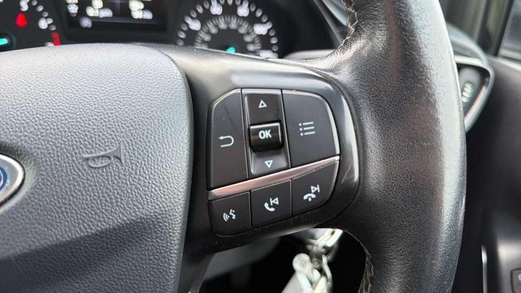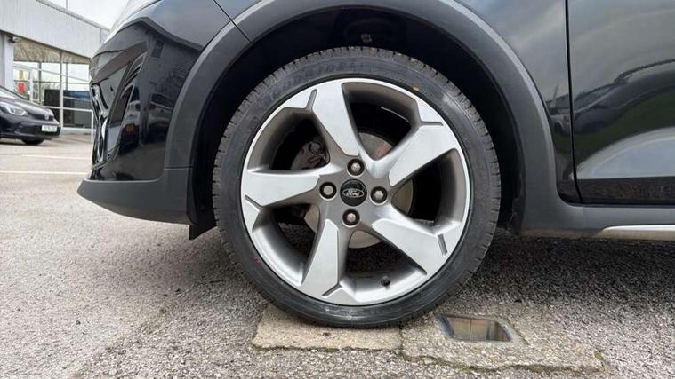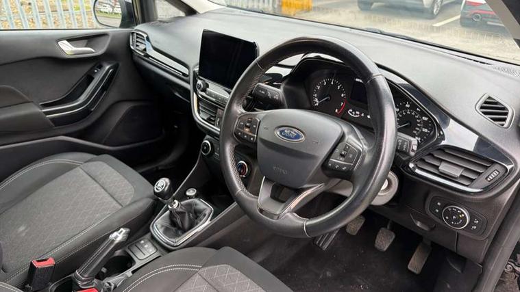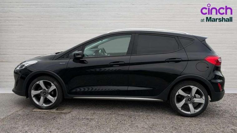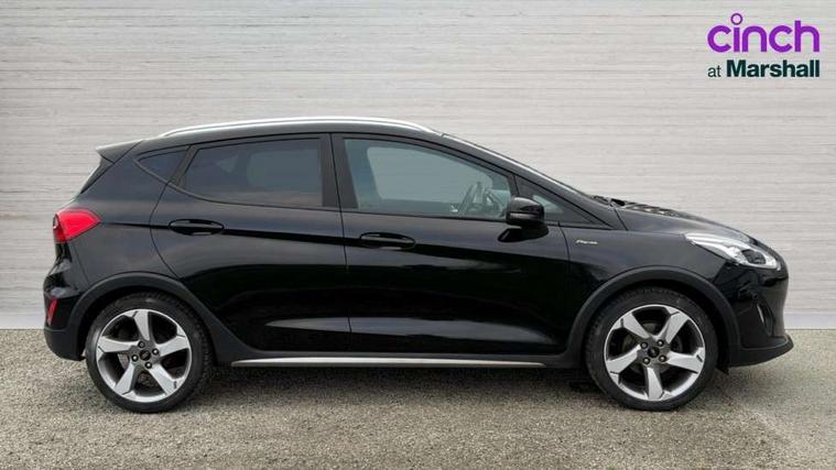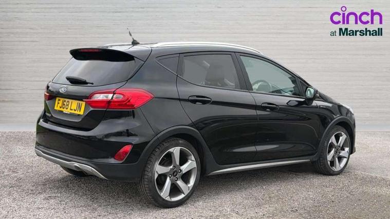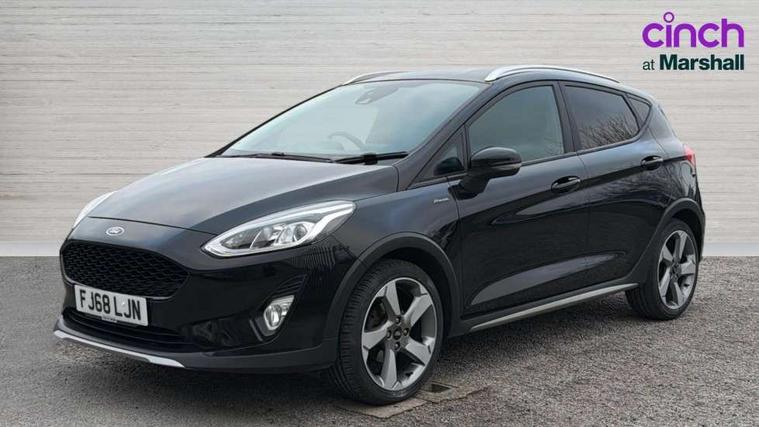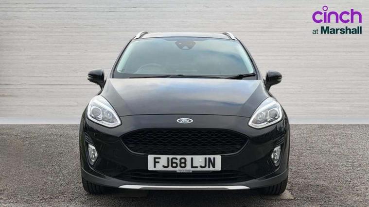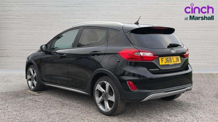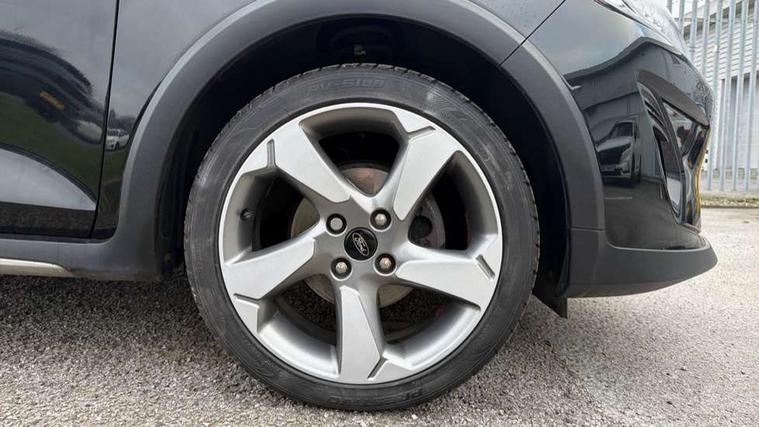 Bluetooth system, Drive mode selector, Electric power steering, Ford easy fuel, Trip computer, Rough road suspension with increased ride height adjust, Auxiliary input socket, Steering wheel mounted controls, USB connection, Active logo front door thershold plates, Automatic headlights, Body colour bumpers, Body colour door handles, Body colour electric adjustable heated door mirrors with integral indicators, Body colour rear spoiler, Chrome beltline trim, Chrome lower window surround, Cornering front fog lights, Electric front windows/one touch facility, Electric rear windows, LED Night signature to rear lights, LED rear lights, Quickclear heated windscreen, Rear privacy glass, Rear wiper, Rugged body styling kit with active front wing badges, Tinted glass, Upper front grille chrome surround, 12V Accessory socket in centre console, 3 spoke leather trimmed steering wheel with audio control, 60/40 split folding rear seat, Adjustable head restraints, Ambient lighting, Boot carpet, Chrome inner door handles, Cloth upholstery, Driver's seat lumbar support, Footwell illumination, Front floor mats, Front map reading lights, Front seat and rear pockets, Height adjustable driver's seat, Illuminated glovebox, Leather gear knob, Leather trimmed handbrake handle, Load area light, Luxury woven headliner, Manual air conditioning, Overhead console with sunglasses holder, Pollen filter, Rake/reach adjustable steering wheel, Rear centre head restraint, NCAP Pack - Fiesta, 3 point seatbelts on all rear seats, ABS+EBA, Curtain airbags, Driver and passenger airbags, Drivers knee airbag, Electronic stability control with hill start assist, Front passenger airbag deactivation, Front side airbags, Seatbelt warning, Tyre pressure monitoring system, MyKey system, Remote central locking & engine immobiliser, Thatcham Cat.1 alarm, 17" 5 spoke alloy wheels with rough metal machined finish,
