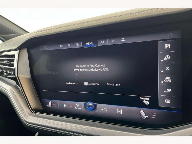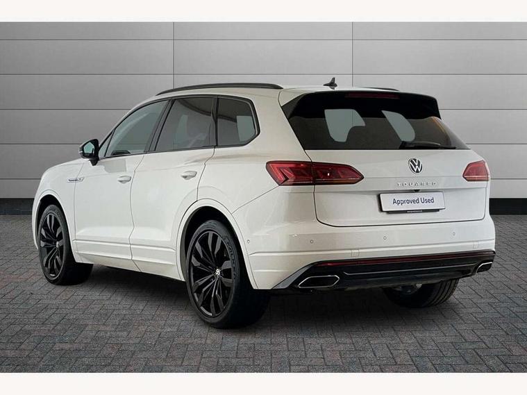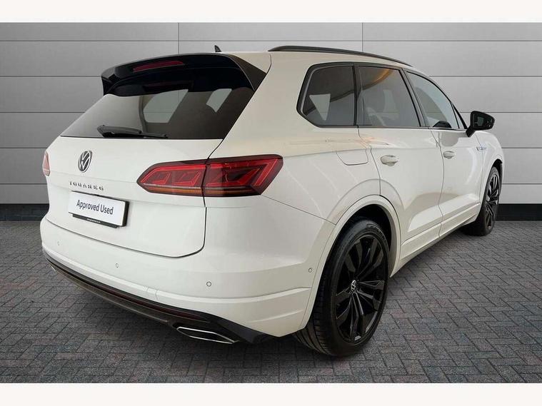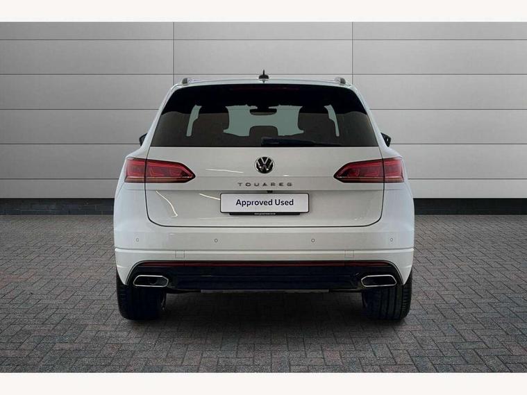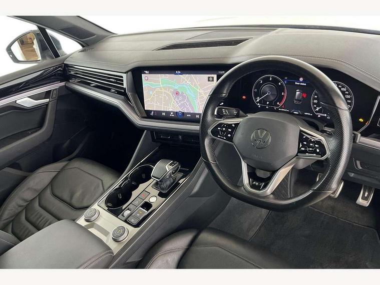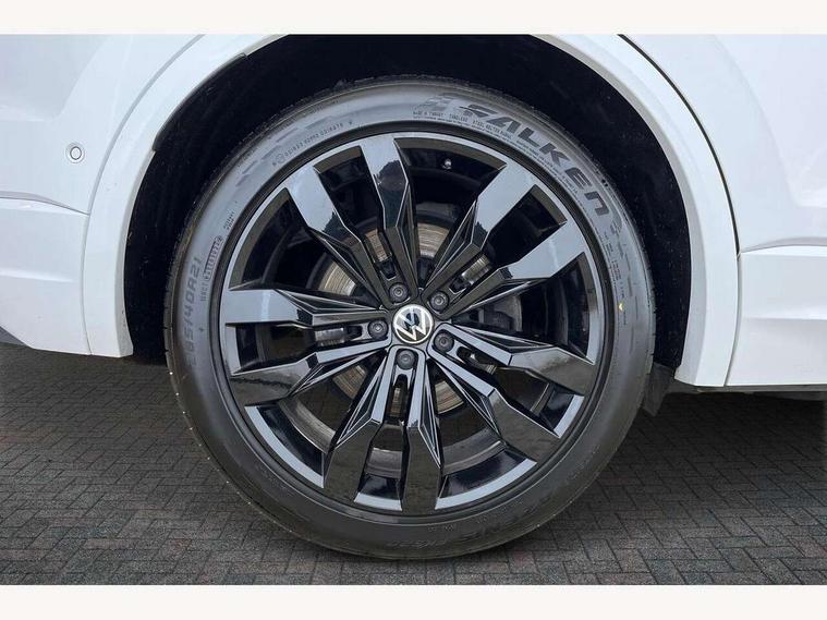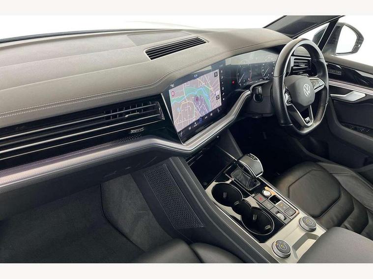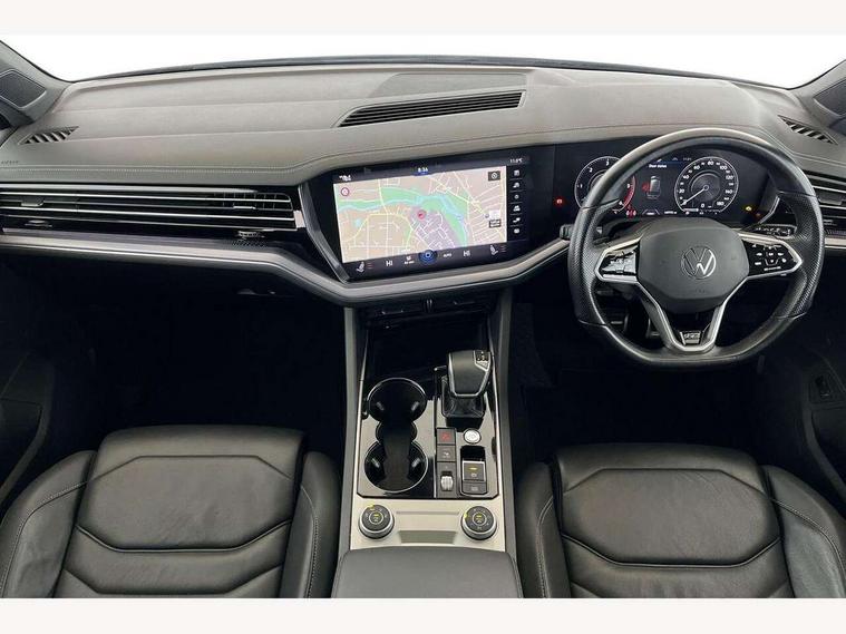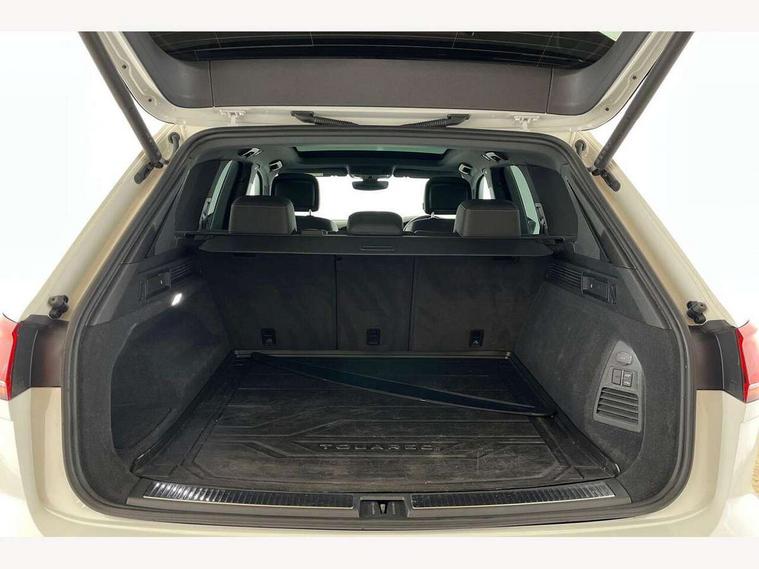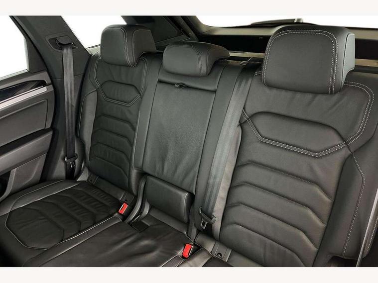 2D/3D map view, ACC - Adaptive cruise control with front assist, forward collision warning, distance monitoring, city emergency brake and speed limiter, Apple car play/Android Auto, Audible and visual fatigue detection system, Bluetooth hands free telephone connection, Car information display, Drive select with Damper control, Driver alert system, Dusk sensor, Dynamic road sign display camera controlled system with visual warning for traffic and road signs, eCall emergency system, Fully electric tailgate + keyless entry and start, Instrument cluster, MirrorLink, Multifunction camera with lane assist, Multifunction computer premium with 7" colour display, One touch indicators with repeat function, Service interval indicator, Speed sensitive power steering, Start/stop system with regenerative braking, Tailgate power latch, Think blue trainer driver tips and journey analysis, Traffic sign recognition, Voice control system, Wireless Smartphone charger, Torsen limited slip differential, DAB Digital radio, Dynamic navigation based on TMC+, Gesture control for infotainment system, Multi device interface (MDI) with illuminated USB-C connection, Music playback - MP3, WMA and AAC files, SD card slot, Simultaneous pairing of 2 compatible mobile devices, SMS functionality - read, compose and send SMS messages using touch-screen display, Title and cover art display, Volkswagen media control, Adaptive low beam for urban and motorway use, Auto dimming rear view mirror, Automatic coming/leaving home lighting function, Automatic headlights, Black anodised roof rails, Black door mirrors, Black rear diffuser, Black side window surrounds, Black upper and lower grille louvres extending into headlights and radiator grille, Body colour door handles, Body coloured wheel arches, C signature gloss black front air intake, Chromed tailpipe on the left and right integrated in the bumper with trapezoid design, Dynamic headlight range control, Electric front tilt/slide panoramic sunroof and fixed rear sunroof, Electrically power adjustable, heated, folding, auto dimming, front passenger exterior door mirror lowering function, Front and rear electric windows, Galvanised body, Gloss black finish B pillar, Gloss black rear diffuser, Headlight washers, Heat insulating glass in side and rear windows, Heated windscreen washer jets, IQ.Light-LED matrix headlight, daytime running light with dynamic cornering light and indicator, LED rear fog light, LED rear number plate lights, Plastic scuff plates in door apertures, Poor weather light, Puddle lights, Rain sensor, Rear wiper, 12V socket in front and rear centre console and boot, 2 Coat hooks on B pillar, 3 rear head restraints, 3 spoke sport heated leather multi-function sports steering wheel with gear shift paddles - generation 2, 4 way adjustable front head restraints, 4 way electric lumbar support for driver and front passenger, 4 zone climate control, 40:20:40 split folding slide/recline rear seat, B pillar vents, Black lower edge of door extending sills, Branded points of interest, Double sun visor for drivier and passenger with LED illuminated vanity mirrors, Electric luggage compartment cover, Folding rear centre armrest with 2 cupholders, Front + rear carpet mats, Front centre armrest with storage box, Gear shift indicator, Height/reach adjust steering wheel, Illuminated air conditioned glovebox, Isofix preparation for 2 rear child seats, Jack and tool kit, Leather trimmed gear knob with gloss black inlay/aluminum trim, Leatherette door trim, LED luggage compartment lighting, Load through provision, Luggage compartment with load lashing rings, Plastic loading edge protection, Rear seat remote release levers, Soul black headlining, Stainless steel pedals, Innovision cockpit pack - Touareg, R line styling pack - Touareg, 3 point front seatbelts with pre-tensioners, ABS, Active bonnet, Automatic post collision braking system, Curtain airbags, Driver/Front Passenger airbags, EBD + Brake Assist, EDL, Electronic parking brake with auto hold, ESC with ASR, Front seat side impact airbags, Hill descent control, Hill start assist, Passenger airbag deactivate switch, Seatbelt warning lamp and buzzer, Three 3 point rear seatbelts, Two tone horn, Volkswagen roadside assistance, Warning triangle and first aid kit, Alarm with interior monitoring in cab, backup horn and towing protection, Child security locks for front and rear doors, Electronic engine immobiliser, Remote central locking, Black decorative trims on the side windows, High gloss black centre console,