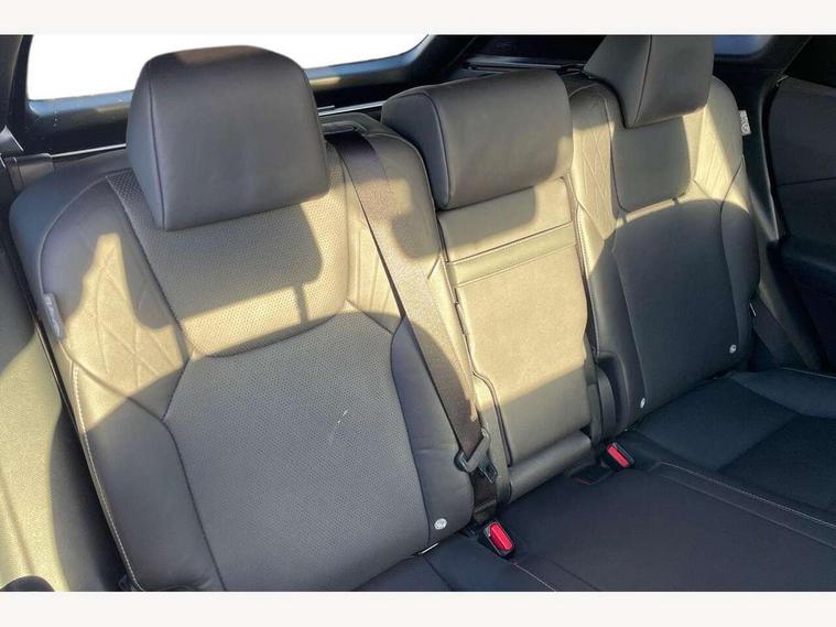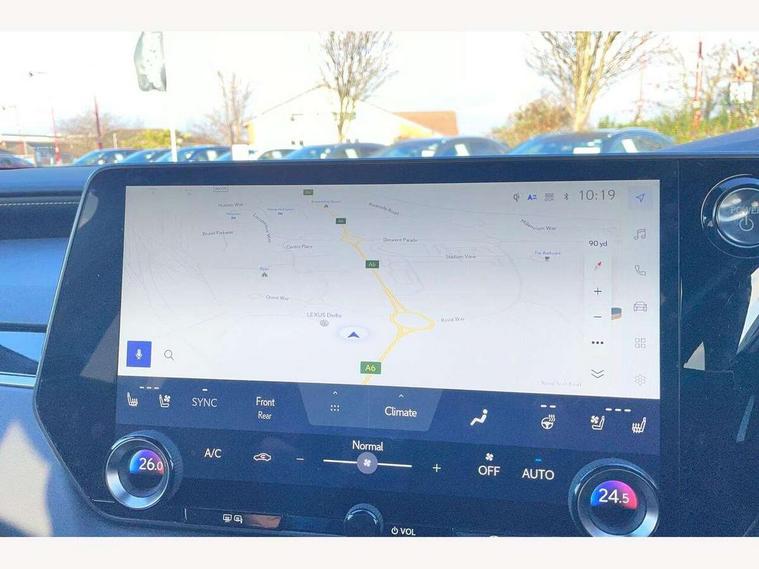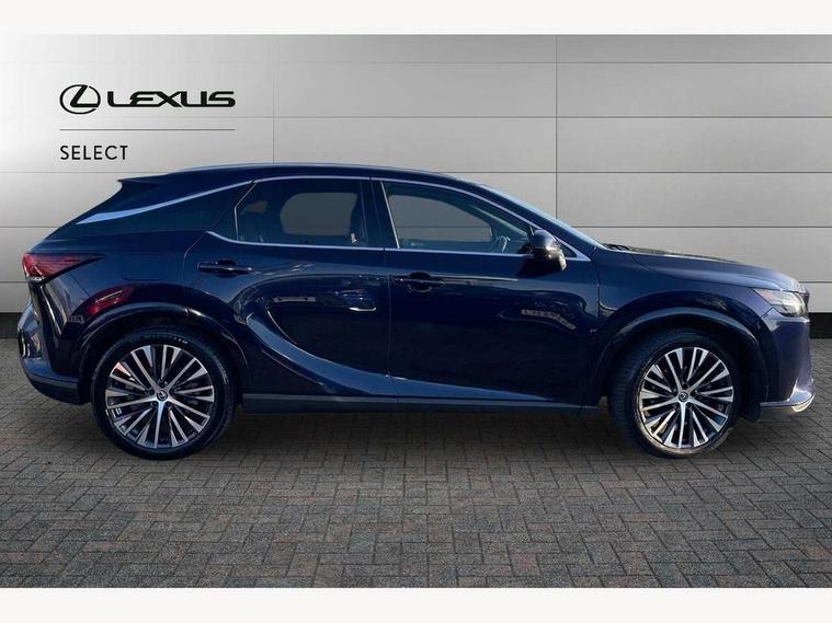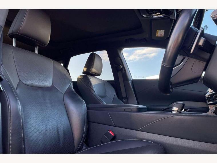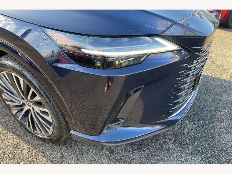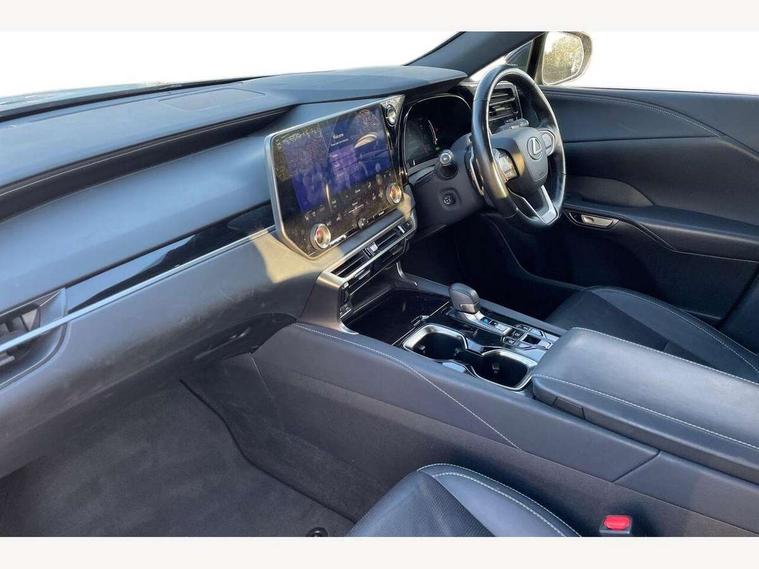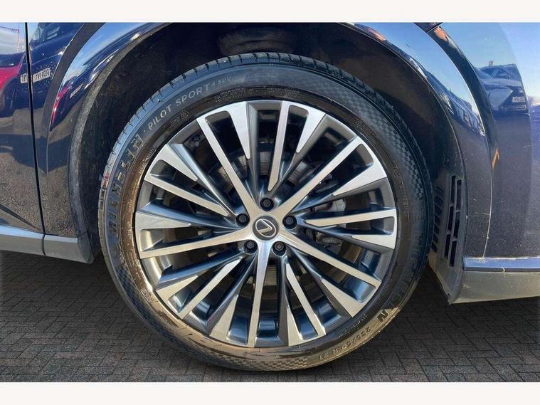 360 degree panoramic view monitor, Bluetooth mobile phone connectivity, BSM - Blind spot monitoring, Drive mode selector, Driver monitoring system, E-call, Head up Display, Intelligent clearance sonar, Lexus link connected services including over the air updates, MM21 Lexus link pro - 14" HD touchscreen with embedded and cloud based navigation, voice assistant, connected services, over the air and always online, Push button starter, Rear cross traffic alert, Speed sensitive electric power assisted steering, Ultrasonic parking sensors, Wireless Apple CarPlay and wired Android Auto, Wireless Smartphone charger, 3 pin to Type 2 10A charging cable, 6.6 kW onboard charger, E-Four Automatic transmission, Type 2 AC charging, Type 2 mode 3 32A charging cable, Vehicle Stability Control (VSC), 12 speakers audio, 5 USB ports (3 front USB C and 2 rear USB C), DAB Digital radio, 3 projector bi-beam LED headlight with auto high beam, Auto dimming rear view mirror, Auto headlights, Front and rear one touch power windows with voice command, Front and rear silver window frame mouldings, Glove and towel set, Headlight washers, Heated, auto-folding door mirrors, auto dimming with rerverse tilt, turn indicators and panoramic view sensors, L-shaped rear light bar, LED brake lights and rear lights with emergency brake signal, LED cornering headlights, LED daytime running lights, LED front and rear fog lights, LED Indicators, Power back door with kick sensor, Privacy UV glass, rear doors and tailgate, Rain sensor windscreen wipers, Rear side wing doors, Rear wash/wipe, Roof rails, Variable front intermittent wipers, 12V accessory port centre console and luggage compartment, 2 cup holders in centre console, 2 way electric lumbar support for driver and front passenger, 2 x Sunvisors with vanity mirror and lamp, 3 rear headrests, 3 seat bench in 2nd row, 40:20:40 split folding rear seats, 64 colour LED ambient interior illumination with 14 pre-set themed colour tones, 8 way electrically adjustable front seats, Charge cable bag, Driver seat memory function, Easy access driver seat, Easy access steering wheel, Front aluminium scuff plates, Front headrests, Front tray in front of centre console, Glovebox, Heated and ventilated front seats, Heated steering wheel, Leather steering wheel, Lever type shft control, Manually adjustable rear seats, Power adjustable steering wheel, Rear resin scuff plates, Single front passenger seat, Smooth leather upholstery, Textile carpet mats, Three zone climate control air conditioning system, Two way opening centre armrest with storage, 2 x Isofix child rear seat restraints, 3 point ELR front and rear seatbelts with pretensioners, ABS, Curtain shield airbags (front and rear), Driver and front passenger 2 stage airbag, Driver/front passenger side airbags, Drivers knee airbag, E-Latch with safe exit assist, EBD + Brake Assist, Electronic parking brake, Electronically controlled braking, Extended lexus safety system+ 3 - lane change assist, front cross traffic assist, Front and rear left/right force limiters and tension reducers, Front and rear left/right seatbelt reminders, Front centre airbag, Hill assist control, Lexus safety system+ 3 - dynamic radar cruise control, pre collision system day and night, lane tracing assist, road sign, Manual child lock in rear doors, Passenger airbag cut-off device, Traction control, Tyre pressure warning, 2 x remote key fobs, Customisable auto door lock, Locking wheel nuts, Motion sensor key, Smart keyless entry, Thatcham category 1 alarm + immobiliser, VIN etching, Black Inlay, 21" Alloy wheels,