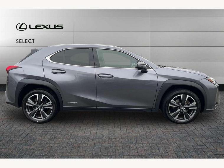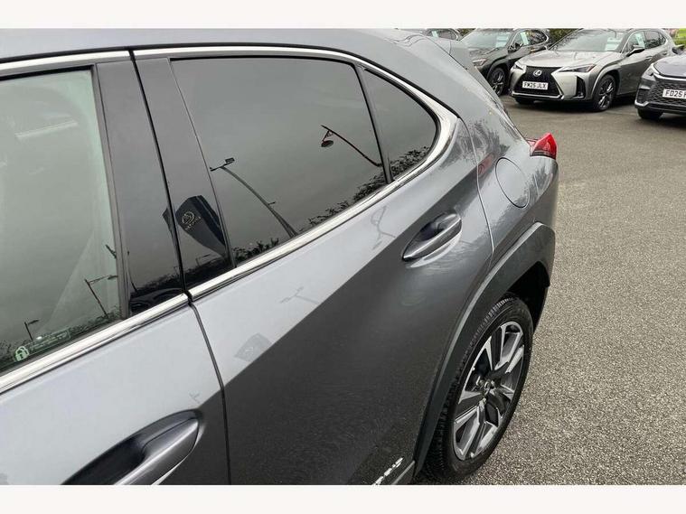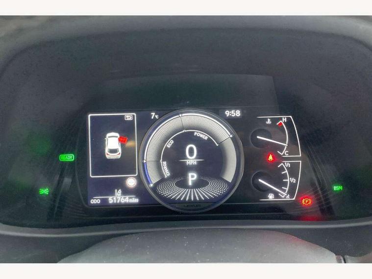 4 driving modes EV/Eco/Normal/Sport, 7" Lexus media display, 7" TFT instrument cluster, Analogue clock with GPS function, Apple car play/Android Auto, Compatible mobile phone bluetooth with audio streaming, E-call, Electric power steering (EPS) with speed sensitive features, Lane change flasher function, Lexus link connected services, Lexus safety systems + includes dynamic radar cruise control, pre collision system day and night, lane tracing assist, road sign assist, Push button start, Remote touch interface, Reversing camera with back guide lines, Trip computer, Vehicle Dynamics Integrated Management (VDIM), Vehicle Stability Control (VSC), 2 front USB and 2 rear USB charging points, 6 speakers, AM/FM and DAB radio, AUX socket with VTR compatibility, CD player, Acoustic windscreen, Aero stabilising arch mouldings, Aero stabilising rear lights, Aero ventilated wheels, Aluminium roof rails, Bi-LED (low and high beam) headlights with Auto High Beam (AHB), Body adhesive, laser screw welding and laser brazed roof structure, Electric adjustable/heated door mirrors, Front and rear one touch power windows, with anti-jam protection, Headlight cleaners, LED daytime running lights, LED front and rear fog lights, LED tail lights, Light green UV glass, Rain sensor windscreen wipers, Rear wiper, Shark fin roof aerial, Single hidden exhaust pipe, Towing preparation, 12V accessory port centre console and luggage compartment, 2 cup holders in the front and rear centre console, 2 x folding shopping bag hooks in boot, 2 x sun visors with vanity mirror and lamp, 4 x tie down hooks in the boot, 5 headrests, 6 way driver and passenger manually adjustable front seats, 60/40 split folding rear seat, Card holder installed in driver and passengers sun visors, Centre armrest with storage, Driver and passenger door pocket, Dual zone electronic climate control + Nano-E humidity sensor, Glovebox, Leather gear lever, Leather steering wheel, LED interior illumination, Map pockets in the rear of passenger's front seat, Premium fabric upholstery, Rear air vents with 2 USB chargers, Rear armrest with 2 cupholders, Storage tray under audio panel, Textile carpet mats, Tilt/reach adjustable steering column, Under deck storage, Under desk side storage, 2 x Isofix child rear seat restraints, 3x3 point rear seatbelts, Anti-lock braking system (ABS), BAS (Brake Assist System), Driver and front passenger 2 stage airbag, Driver and front passenger knee airbag, Driver/front passenger side airbags, EBD - Electronic brakeforce distribution, ECB (Electronically Controlled Brake System), Electric parking brake, Front adjustable seatbelt anchor points, Front and rear curtain shield airbags, Front outer seatbelt+pre-tensioners, force limiter+tension reduction: 3-point with active safety link to PCS, Hill start assist control (HAC), Passenger airbag cut-off device, Rear outer seatbelt+pre-tensioners, force limiter+tension reduction: 3-point with active safety link to PCS, Centre belt w/o pre tensioner+force limiter, Secondary Collision Brake (SCB), TRC (Traction Control), Tyre pressure warning, 2 x remote key fobs, Anti theft system : Alarm instruction sensor, glass breakage sensor and engine immobiliser, Locking wheel nuts, Remote central door locking, Speed sensitive auto door locking, Two motion door lock with double lock, VIN Window etching, 17" Alloy wheels, Tyre repair kit,