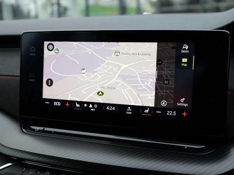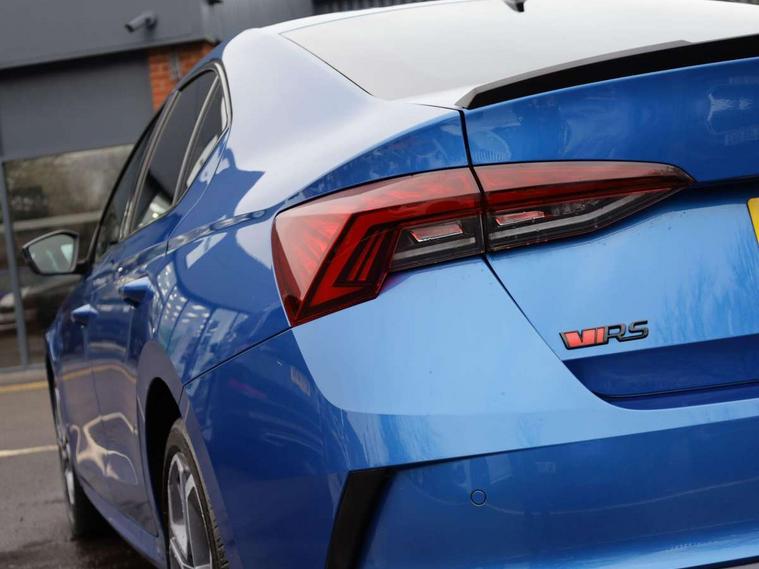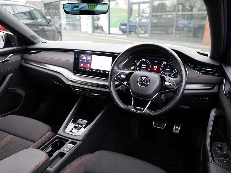 1x USB Type C port in rear view mirror (charging only), 2x USB Type C ports in rear of front centre armrest (charging only), Bluetooth system, Columbus satellite navigation with 10" touchscreen display, Driver fatigue sensor, eCall emergency system, Front and rear parking sensors with manoeuvre assist, Front assist system, Progressive dynamic steering, Speed limiter, Turn Assist, Virtual Cockpit - 10.25" digital display, Virtual pedal with electrically operated boot door (Rear LED lights (high functionality), dynamic indicators, Voice control system, Wireless SmartLink for Apple Car Play, Electronically controlled limited slip differential, Front and rear stabilizers, 2x USB Type C ports (for charging and data transfer), 8 Speakers, DAB Digital radio, Aero front windscreen wipers with intermittent function, Auto dimming rear view mirror, Body colour door handles, Chrome exhaust tailpipes, Door sills with vRS logo, Electric front and rear windows, Exterior gloss black sports styling including front grille, side strip, window surrounds, door mirror and badging, Full LED Matrix headlights with AFS, rear LED lights (high functionality) and dynamic indicators and cornering front fog lights, Headlight washers, Heated rear windscreen, High level third brake light, Ice scraper in fuel cap, LED daytime running lights, Rain and light sensors, Rear fog light on one side, Rear privacy glass, Rear side wing doors, vRS bumpers and lip spoiler, 3 rear headrests, 3 seat bench in 2nd row, 4 foldable roof handles, Aluminium pedals, Black headlining, Black microsuede padded dash panel with red contrast stitching, Chrome inner door handles, Front centre armrest, Front head restraints, Heated front seats, Illuminated glovebox, Leather trimmed gearshift lever, Luggage compartment lighting x1 light, Mechanical rear seat release, Parcel shelf - folding, Single front passenger seat, Sunglasses storage, Textile floor mat set, Three spoke leather sports multifunction steering wheel with paddles, Ticket holder, Umbrella in door panel, Unsplit rear bench seat and split folding backrest, LED interior light pack - Octavia, 3 point front/outer rear seatbelts+pre-tensioners, Alarm with interior monitoring, tilt sensor and back up horn, Automatic door unlocking in case of crash, Automatic fuel cut off in case of crash, Automatic warning lights in case of emergency braking, Curtain airbags and front side airbags, Driver and front passenger airbags, Drivers knee airbag, Electronic parking brake, ESC including ABS, EBV, MSR, ASR, EDS, HBA, DSR, Front and rear disc brakes, Front central airbag, Hill hold control, Hill start assist, ISOFIX on front passenger seat and outer rear seats, Manual rear child locks, Passenger airbag deactivate switch, Pro active services, Red brake calipers, Two tone horn, Tyre pressure monitor, Visual and acoustic seat belt reminder, Warning reflectors in front door, Door locks with immobiliser, Keyless entry and start/stop including rear doors, Remote central locking, Carbon optic decorative inserts, Gloss black air vent surrounds, 19" Altair anthracite alloy wheels,