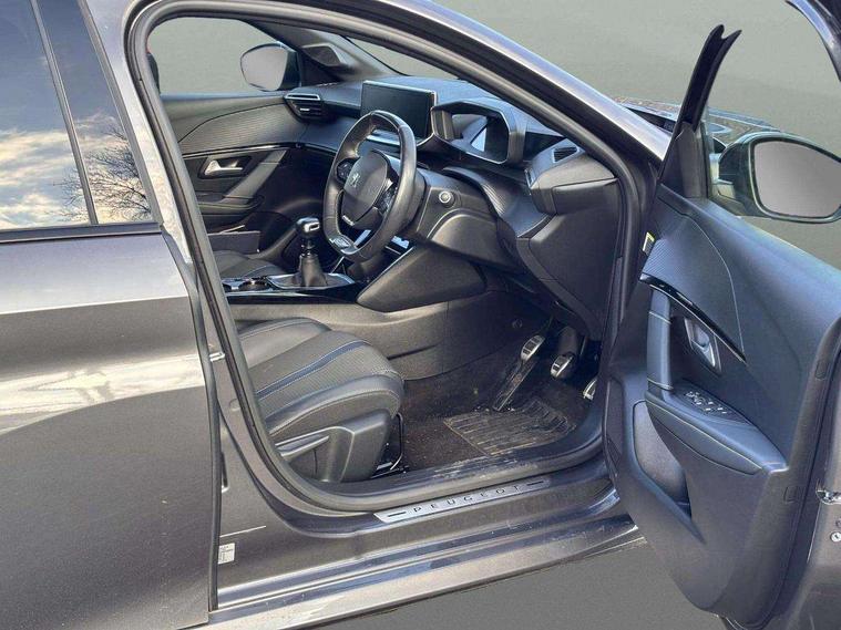 10" Capacitive colour touchscreen with connected 3D navigation, Bluetooth telephone facility, Driver attention warning, Exterior temperature indicator with ice warning, Front and rear parking sensors, Lane keep assist, Mirror screen with mirror link, apple carplay and android auto, Multi function trip computer, Passive blind spot detection, PEUGEOT i-Cockpit with compact steering wheel, PEUGEOT i-Cockpit with configurable 3D headup instrument panel, PEUGEOT SOS and assistance, Push button start, Smart phone docking station, Speed limit recognition and recommendation, Visio Park 1 with 180 degree Colour reversing camera, 2 front USB socket with USB-C, 2x USB sockets in rear, 6 speakers radio with mp3 compatible, DAB Digital radio, Voice recognition for radio, navigation and telephony features, 2 X Rear number plate lights, Automatic hazard light activation upon heavy brake application, Automatic lights, Automatic windscreen wipers, Body coloured exterior door handles, Dark tinted rear side and tailgate windows, Diamond black rear spoiler (roof), Diamond Black roof, Electric front windows + one touch + anti-pinch, Electric rear windows with one touch/anti-pinch, Electrically adjustable, heated and power folding door mirrors, Follow me home headlights, Frameless electrochrome interior rear view mirror, Front windscreen wiper with magic wash cleaning system, Full LED headlights with smartbeam assist, Gloss black finish on B pillar, Gloss black rear cluster connecting strip, Gloss black wheel arch extensions, Gloss black window surround, GT Line model designation badging on C pillar, GT Line model designation badging on tailgate, Headlights left on audible warning, LED daytime running lights with 3 claw headlight with distinctive tooth design, LED side indicator lights integrated into door mirrors, Model designation badges front and rear, Nera black door mirror shells, Radiator grille - Dark chrome chequered and gloss black edge trim, Rear bumper with gloss black finish, Rear full LED 3D peugeot signature claw effect lights with daylight function, Rear lower bumper diffuser effect trim in gloss black, Rear reversing lights, Rear windscreen wiper triggered automatically in reverse gear, Stainless steel door sill scuff plates, Tailgate with heated rear windscreen and wiper blade, Twin chrome exhaust tailpipes, 1/3 to 2/3 split folding rear seats, 12V socket, 8 Colour personalisable ambient lighting, Aluminium pedals and foot rest, Driver and front passenger seat manual adjustment in longitudinal and back rest angle, Driver and front passenger seat mechanical height adjustment, Driver and front passenger sport seats, Dual zone electronic climate control, Electric power steering with reach and rake adjustable steering column, Front and rear carpet mats in black with lime green stitch detail, Front centre armrest with storage compartment, Front LED interior light with 2 reading spotlights and rear interior light with timer, High centre console with 2 cup holders, ISOFIX child seat mounting points on passenger seat, Lime green contrast stitching to armrest, front centre console, door panels and dashboard facia, Map pockets on the backs of the front seats, Mistral full grain perforated leather steering wheel with aikinite stitch detail and satin chrome 'GT' emblem, Piano keys gloss black plated toggle switches to access main functions of the vehicle, Piano keys gloss black plated toggle switches to access touchscreen functions, Roof lining - Mistral black, Satin chrome gear lever, Seatbelt unfastened on the move audible and visual alert for front and rear seats, 2x 2nd row ISOFIX child seat mountings, 3 point seatbelts on all rear seats, 3 rear 3 point seatbelts, 3x3 point rear seat belts, 3x3 point rear seatbelts, ABS (Anti-lock Braking System) with EBD (Electronic Brakeforce Distribution) and EBA (Emergency Braking Assistance), Active safety brake with night function/cyclists/pedestrians, Child locking functionality on rear doors, Driver and passenger airbags with Passenger airbag deactivation system, Driver/front passenger side airbags, Electric parking brake, ESP with Hill Assist, Front and rear curtain airbags, Front and rear disc brakes, Front optimised safety headrests and 3 x rear retractable headrests with height adjustable, Front three point retractable seatbelts with force limiters, Tyre pressure sensor, Automatic door locking when moving off, Deadlock, Electronic code immobiliser, Thatcham Cat.1 alarm, Carbon effect Dashboard, front and rear door panel finish, 17" Camden diamond cut two tone alloy wheels, Space saver spare wheel,