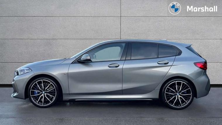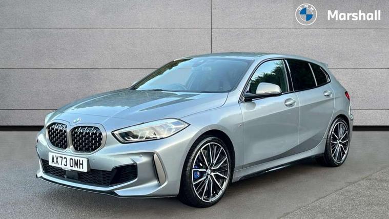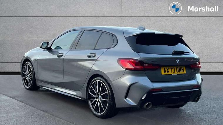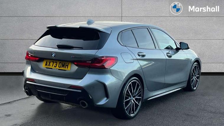 Active guard plus, Attentiveness assist, BMW ConnectedDrive online services, BMW Teleservices, Check Control warning system for monitoring of lights and door/luggage compartment open warning, Cruise control with speed limiter, Eco pro mode, Electric power steering, Electro hydraulically controlled multi-plate clutch transfers drive to rear axle and with power take-off device located on the front differential., Energy efficient operating strategy, Front axle single joint with specific axle kinematics to minimise drive influences on steering + provide increased rigidity agile driving behaviour, Gearshift time display in manual mode, Integrated owners handbook, Lane departure warning system, M Sports steering with M135i xDrive specific settings, Oil sensor for level and grade, On board computer, Optimum shift indicator, Personal Profile, Pull away assistant, Rigidly mounted rear subframe - Multi link construction with separate spring / damper configuration and excellent driving characteristics, Speed limit Info including no-overtaking indicator, Sporty fast gear shifting in sport mode, Aluminium lightweight construction, Anti roll bar front and rear, Balancer shaft, Double VANOS, Drive Performance Control, Eight speed sport automatic transmission with gearshift paddle switches, Electronic differential lock, Electronic selector lever, Engine cover with M performance designation, High precision injection, Larger fuel tank capacity (50 litres), Launch control, M135i specific heavily de-throttled engine intake air guide, M135i specific high-performance cooling package, M135i specific larger turbocharger with integrated divert-air valve, Petrol Particulate Filter, Twin tube gas filled shock absorbers with degressive characteristic curve, VALVETRONIC engine management, Variable, stepless and infinitely adjustable distribution of drive torque between the front and rear axles, xDrive intelligent all wheel drive with M135i specific reinforced components, DAB Digital radio, Auto dimming rear view mirror, Automatic headlight beam throw control, Automatic windscreen wipers and automatic headlight, Body colour door handles, Body colour roof trims, Cerium grey exterior mirror caps, Direction indicator side lights in exterior mirrors, Electrically adjustable exterior mirror with mirror adjustment switch on drivers armrest and aspheric on driver side, convex on passenger side, Exhaust tailpipe, Cerium Grey with bevelled finish - twin, round 100mm, left and right split, Fading support, Folding side mirrors with auto dimming/folding wing mirrors with auto dimming, Follow me home headlights, Front and rear bumper system with replaceable deformation elements, Front and rear electric windows with open and close fingertip control, anti trap facility and comfort closing, Front door sill finishers with M135i designation, Green tinted heat protection glazing, High gloss shadowline window frame, Recess cover mirror frames and B/C pillar embelisher trim, High level third brake light, Integrated front windscreen with washer jets, Kidney grille frame in Cerium Grey with Mesh design, LED daytime running lights, LED eyebrow turn indicators, Lightweight engineering, M logo designation side in cerium grey, M Performance exhaust system with valve control and minimised exhaust back pressure, M Performance specific setup, M Sport spoiler, Matt black air guide grilles, Matt black wheel arch trim, Model designation on electric bootlid includes xDrive designation for M135i xDrive, Nearside reverse light in rear light cluster, Preparation for high beam assistant, Rear fog lights, Rear side wing doors, Rear window wiper, Reinforced crank drive, new pistons and adapted con rods, Shark fin antenna, Trailer stabilisation logic, Visible VIN plate, Welcome lighting, 12V power socket in front centre console with blanking plug, 3 rear seat head restraints, 3 seat bench in 2nd row, 3 spoke sports leather steering wheel with black leather and stitching, pearl chrome decorative finish, specific M Badge, Anthracite headlining, Black boot net with lashing eyes, Cargo function on 2nd seat row, Child seat ISOFIX attachment for two outer rear seats and front passenger seat with anchorage points, Conditioned based service, Driver and front passenger backrest net on rear, Driver and front passenger seat heating, Driver side folding compartment in instrument panel, Folding rear clothes hook, Four grab handles integrated in roof lining, Front and rear door pockets with bottle holders, Front and rear side armrest integrated into door trim, Front armrest, Front M sports seats, Glove compartment, Height adjustable front head restraints, Luggage compartment for bag hooks on left and right, foldable luggage compartment liner and four lashing eyelets, Manual adjust steering wheel, Multi-function controls for steering wheel, Single front passenger seat, Storage compartment in centre console, Storage compartment in luggage compartment, Stowage of the parcel shelf in luggage compartment trim, Sun visors with vanity mirrors and insert tab, Two front centre console cupholders, Two zone automatic air conditioning, Type C two USB ports in rear centre console, Velour floor mats, Additional interior lighting pack - 1 Series M135i, BMW live cockpit professional pack- 1 Series, Connected pack professional - 1 Series, Interior lights pack - 1 Series, M Sport exterior styling aerodynamics pack - 1 Series 135i, 2 tone horn, 3 point seatbelts on all seats, front pyrotechnic belt tensioners, stopper and belt force limiters, rear coded belt buckles, Airbags - Front driver/passenger, front and rear curtain head protection, front side, manual deactivation of front passenger airbag, Anti lock braking system (ABS) with brake assist, BMW emergency call, Brake drying, Braking readiness, Child proof locking system in rear door, City braking function, Comfort modes, Cornering brake control, Crash sensor activating of airbags, Unlocking doors, hazard warning lights, interior light
