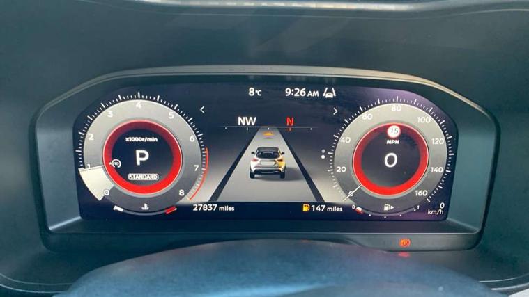 12.3" full colour TFT screen combimeter, Drive modes select (Eco, normal and sport), Emergency and breakdown call, Front parking sensor, Idle start/stop system, Intelligent driver alert system, Intelligent lane intervention, Lane departure warning system, Nissan connect 12.3" touch screen entertainment system, Nissan connect nav with TomTom traffic, Nissan connect services and Wifi connection, Outside temperature sensor, Power Steering, Rear parking sensor, Stop/start button, Traffic sign recognition, Trip computer, Voice recognition, Wireless Apple CarPlay and Google Android auto, Wireless Smartphone charger, 2 X Rear console USB port, 6 speakers, Bluetooth system, USB, Aux-in and 12V socket, DAB Digital radio, Auto dimming frameless rear view mirror, Automatic hazard signal with emergency stop signal, Body colour door handles, Electrically adjustable door mirrors with integrated indicators, Follow me home headlights, Front and rear electric window with one touch driver window, Heated and auto folding door mirrors, High beam assist, LED 3rd brake light, LED daytime running lights, LED headlamps, LED rear fog lamp, LED rear lamps, One touch passenger window, Rain sensor windscreen wipers, Rear privacy glass, Rear side wing doors, Rear wiper, Roof spoiler, Shark fin roof antenna in solid Black, Three blink turn signal, 3 height adjustable rear headrests, 3 seat bench in 2nd row, 60/40 split folding rear seat, Automatic climate control, Card holder on driver sunvisor, Cloth/Synthetic leather with melange fabric inserts, Driver side rear coat hanger, Driver/passenger sunvisors and vanity mirrors, Front and rear cabin lights, Front armrest, Front door pockets with bottle holders, Front head restraints, Front/rear passenger grab handles, Height adjustable driver's seat, Internal chrome door handles, Leather gearshift knob, Leather steering wheel, Luggage board, Luggage space lighting, Monoform sporty seats, Multifunction steering wheel, Rear door bottle holders, Single front passenger seat, Steering wheel mounted gearshift paddles, Synthetic leather kneepad, Telescopic steering wheel adjustment, Two cupholders in front centre console, Two rear isofix child seat anchorage points with top tether, Welcome light and console tray ambient lighting, ABS with EBD and brake assist, Active ride control, Active Trace Control, Driver and passenger airbags, Driver and passenger side airbags, Electric handbrake with auto hold function, Electronic Stability Programme (ESP), Front and rear curtain airbags, Height adjustable seatbelts, Hill start assist, Intelligent emergency braking with pedestrian and cyclist recognition, Rear door child safety locks, Seatbelt reminder for driver/front passenger and rear seats, Three 3 point rear seatbelts, Traction control, Tyre pressure monitoring system, VDC Dynamic Vehicle Control, Alarm, Immobiliser, Intelligent key and start push button with walk away lock and approach unlock functions, Remote central locking, 17" Alloy wheels,