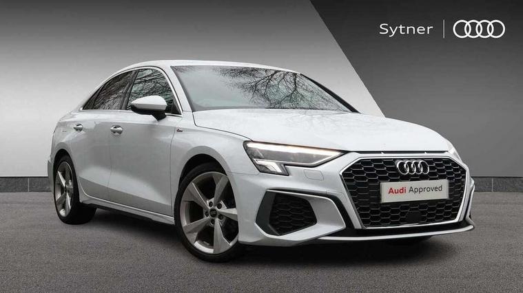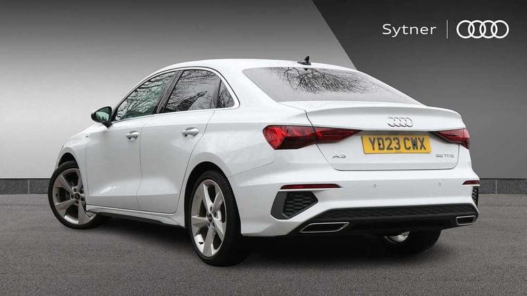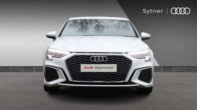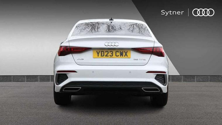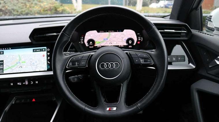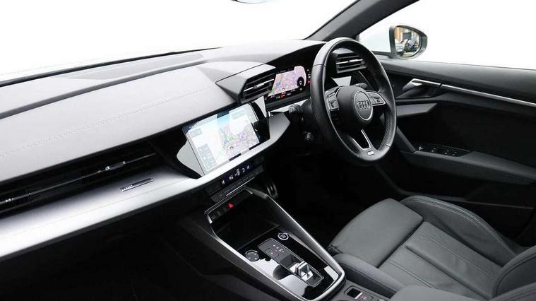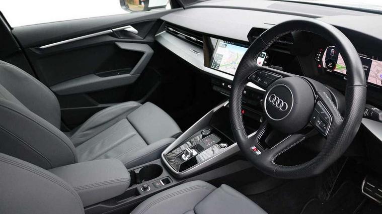Audi connect emergency call and service, Audi drive select (Auto, Comfort, Dynamic, Efficiency and Individual), Audi smartphone interface, Audi Virtual Cockpit - 10.25" digital and colour instrument cluster, Automatic start/stop system with recuperation, Bluetooth interface, Collision avoidance assistant, Electromechanical power speed sensitive steering, Lane departure warning system, MMI Navigation Plus with high resolution 10.1" colour touch screen display, Service indicator, Voice control system with natural language interaction, Sports suspension, 2x USB Type C ports (for charging and data transfer), 6 passive loudspeakers, CD player, DAB Digital radio, 3rd brake light, Acoustic glass windscreen, Aluminium window trim, Auto dimming frameless rear view mirror, Body colour exterior mirrors, Electrically adjustable/heated/folding/auto dimming door mirrors with integrated LED indications + kerb view function for passenger side, Front electric windows, Illuminated door sills with aluminium inserts at the front with S logo, LED daytime running lights, LED headlights with LED rear lights and dynamic rear indicators, Light and rain sensors, Model and engine designation badges at rear, Privacy glass - dark tinted rear window, rear door and side windows, Rear boot, Rear electric windows, Rear side wing doors, S line bumpers, S roof spoiler, 12V socket and storage compartment in front centre console, 3 seat bench in 2nd row, 3 spoke leather multifunction steering wheel with gear shift paddles, 40/20/40 split folding rear seat bench with cupholder, Black cloth headlining, Dual zone electronic climate control, Front and rear centre armrest in leather, Front and rear headrests, Front/rear floor mats, Height and reach adjustable steering wheel, Illuminated vanity mirror, Interior lighting - glove compartment light and right hand side, Luggage compartment floor covering, Manual boot compartment lid, Manually adjustable front sport seats, Seat side bolsters, Single front passenger seat, Stainless steel pedals and front footrest in black, Twin leather upholstery with front sports seats S embossed logo, Aluminium interior elements pack - A3, LED interior lighting pack - A3 Saloon, S line styling pack - A3 Saloon, 3x3 point rear seat belts, Driver and front passenger airbag with passenger airbag deactivation, Electronic Stabilisation Control (ESC) including ABS, ASR and EDL, First aid kit with warning triangle and 2 safety vests, Front side airbags with head airbags and interaction airbag, Hill hold assist, Pre-sense front with pedestrian and cyclist detection, Seatbelt monitoring, Tyre pressure loss indicator, Anti theft alarm, Anti-theft wheel bolts, Electronically operated child locks, Immobiliser, Remote control central locking, Aluminium air vent surrounds, Aluminium trim elements, Dark spectrum aluminium inlays, accent surfaces in the dashboard and centre console in platinum grey silk effect paint finish,