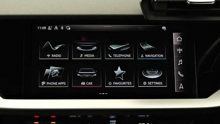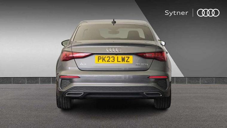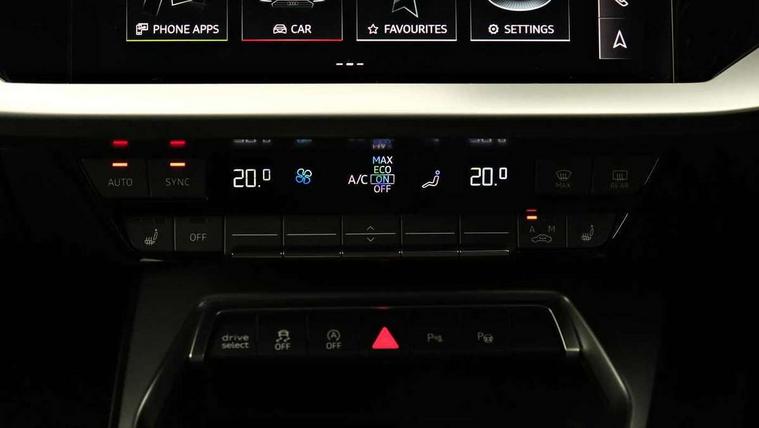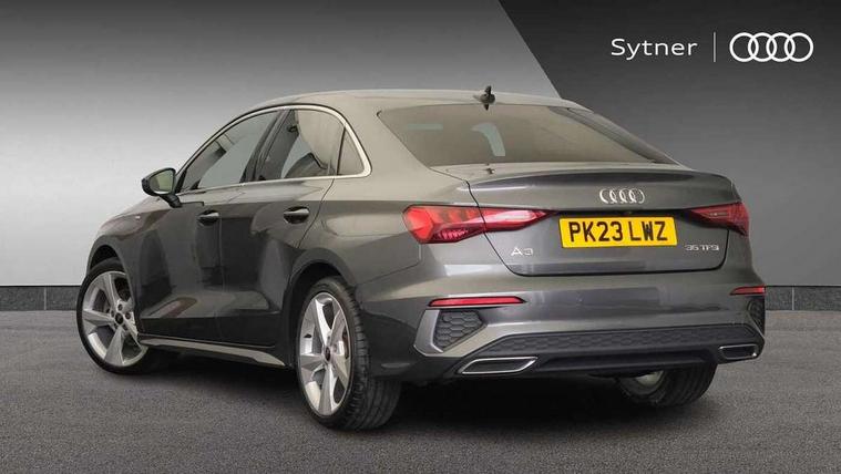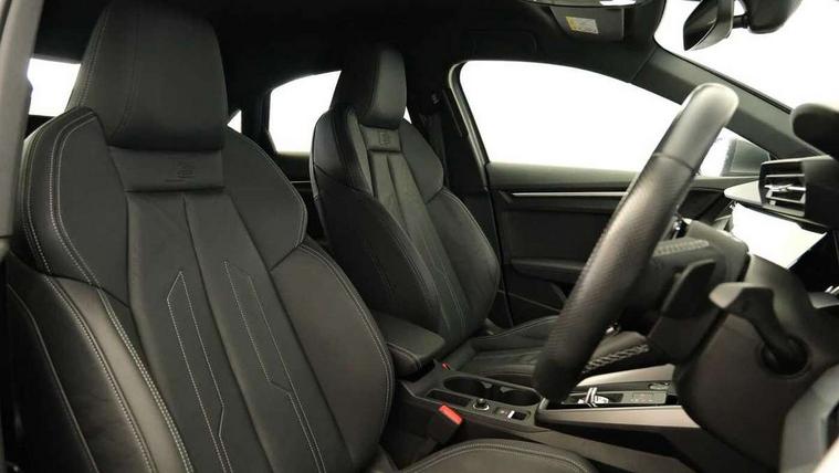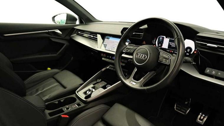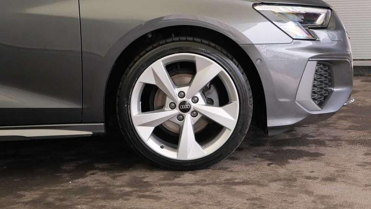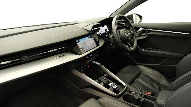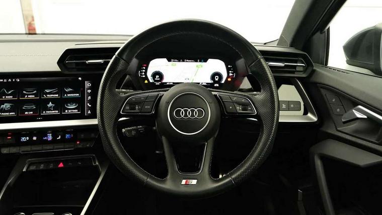 Audi connect emergency call and service, Audi drive select (Auto, Comfort, Dynamic, Efficiency and Individual), Audi smartphone interface, Audi Virtual Cockpit - 10.25" digital and colour instrument cluster, Automatic start/stop system with recuperation, Bluetooth interface, Collision avoidance assistant, Electromechanical power speed sensitive steering, Lane departure warning system, MMI Navigation Plus with high resolution 10.1" colour touch screen display, Service indicator, Voice control system with natural language interaction, Sports suspension, 2x USB Type C ports (for charging and data transfer), 6 passive loudspeakers, CD player, DAB Digital radio, 3rd brake light, Acoustic glass windscreen, Aluminium window trim, Auto dimming frameless rear view mirror, Body colour exterior mirrors, Electrically adjustable/heated/folding/auto dimming door mirrors with integrated LED indications + kerb view function for passenger side, Front electric windows, Illuminated door sills with aluminium inserts at the front with S logo, LED daytime running lights, LED headlights with LED rear lights and dynamic rear indicators, Light and rain sensors, Model and engine designation badges at rear, Privacy glass - dark tinted rear window, rear door and side windows, Rear boot, Rear electric windows, Rear side wing doors, S line bumpers, S roof spoiler, 12V socket and storage compartment in front centre console, 3 seat bench in 2nd row, 3 spoke leather multifunction steering wheel with gear shift paddles, 4 way electrically adjustable lumbar support for driver and front passenger, 60/40 split folding rear seat bench, Black cloth headlining, Dual zone electronic climate control, Front and rear centre armrest in leather, Front and rear headrests, Front/rear floor mats, Height and reach adjustable steering wheel, Interior lighting - glove compartment light and right hand side, Luggage compartment floor covering, Manual boot compartment lid, Manually adjustable front seats, Seat side bolsters, Single front passenger seat, Stainless steel pedals and front footrest in black, Twin leather upholstery with front sports seats S embossed logo, Aluminium interior elements pack - A3, LED interior lighting pack - A3 Saloon, S line styling pack - A3 Saloon, 3x3 point rear seat belts, Driver and front passenger airbag with passenger airbag deactivation, Electronic Stabilisation Control (ESC) including ABS, ASR and EDL, First aid kit with warning triangle and 2 safety vests, Front side airbags with head airbags and interaction airbag, Pre-sense front with pedestrian and cyclist detection, Seatbelt monitoring, Tyre pressure loss indicator, Anti theft alarm, Anti-theft wheel bolts, Electronically operated child locks, Immobiliser, Remote control central locking, Aluminium air vent surrounds, Dark spectrum aluminium inlays, accent surfaces in the dashboard and centre console in platinum grey silk effect paint finish,