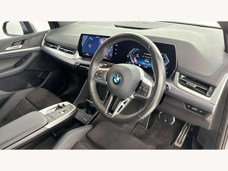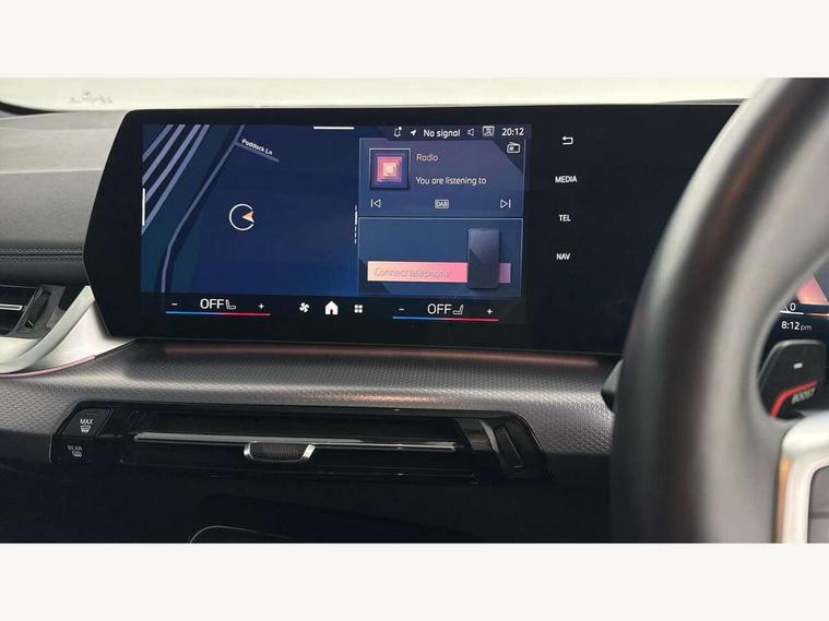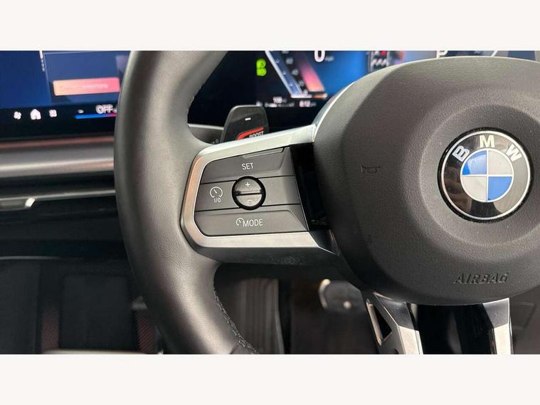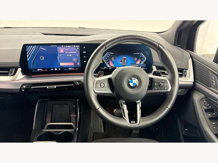 Active Guard, Attentiveness assist, Automatic powered tailgate, Automatic start/stop function, BMW Online services, BMW Operating system 9 with BMW Maps, real-time traffic information, in-car experiences, remote services and smartphone integration, BMW Teleservices, Brake pad wear indicator in front and rear, Condition based service, ConnectedDrive Services, Drive off assistant, Flat air vents on instrument panel in high gloss black, adjustable slats with elements in pearl chrome, iDrive controller, Instrument cluster with speedometer with miles per hour read out, tachometer and fuel gauge, Language version English, On board computer - average speed+fuel consumption, service interval, clock/date, odometer/trip meter, outside temperature display and ice warning, Parking assistant with active park distance control, reversing assistant, lateral parking aid and rear view camera, Servotronic variable electric power steering (EPS), Widescreen display, Wireless charging, 54 litre fuel tank, Drive performance control with ECO PRO comfort + sport mode, Gear selector switch with toggle operation, M Adaptive suspension, Performance Control, Petrol Particulate Filter, Steptronic transmission with double clutch and gear shift paddles, 2x USB Type C ports in front centre console for charging and data transfer, 2x USB Type C ports in rear centre console for charging, DAB Digital radio, Personal eSim, Welcome sound upon opening of the front driver or passenger door, Air inlet middle part on front apron in lines specific design with trim strip in satinised aluminium, Automatic headlights, Black rear bumper trim strip, BMW emblem, engine compartment lid and tailgate, Body colour roof mouldings, Body coloured door mirror caps, Contoured rear roof spoiler in vehicle colour with side aeroblades in black high-gloss, Driver side exterior mirror lighting with BMW logo projection, Dynamic brake lights, Electric adjustable heated door mirrors, Electric windows - front and rear, with open/close fingertip control, anti-trap facility and comfort closing, Folding door handles integrated flush with surface, Front and rear windscreen wipers with heated front washer nozzles, Front bumper cover with independent design in body colour with inserts in black high gloss, Front bumper design elements in satinised aluminium, Front door exit lights, Front door sill finishers aluminium inserts with M inscription, Front entry sills with aluminium inserts + BMW inscription, Front oramental grille with radiator grille bars in satinised aluminium, Heated rear window, Hidden exhaust pipe, High gloss shadow line, High gloss shadowline roof rails, Home light, Key with M identification, LED Daytime running lights and parking lights with turn indicators, LED number plate light, LED third brake light in rear spoiler, M identification on sides, Manual headlight range control, Model inscription on right tailgate, Rain sensor, Rear bumper cover with independent design in body colour with inserts in black high gloss, Rear side wing doors, Shark fin antenna, Side sill covers with independent design in Body colour, Trailer stabilisation logic, Trims on front and rear bumper covers colour-coordinated with side window graphic, Visible VIN plate, Welcome lighting, Windscreen washer nozzle for rear view camera, 12V power socket in luggage compartment and front centre console, 12V socket in right side trim panel, 2 bag hooks in luggage compartment, 2 front reading lights, 2 open cup holders in front centre console, 2 x USB Type C ports for charging in front centre console + 2 x USB Type C ports for charging in rear centre console, 3 seat bench in 2nd row, Ambient lighting front and rear, Automatic two zone climate control air conditioning, Bottle trays in all doors, Child seat ISOFIX attachment for two outer rear seats and front passenger seat with anchorage points, Driver and front passenger sports seats, Embellishers on steering wheel spokes in pearl chrome, Four grab handles integrated in roof lining, Front and rear door pockets, Front and rear footwell lighting, Front and rear side armrest integrated into door trim, Front centre console storage compartment, Front head restraints, Glovebox with light, Heated front seats, Height adjustable 3 rear head restraints, Illuminated wireless charging tray, Interior door handle recess light on all doors, Luggage compartment lighting, M Anthracite headlining, M specific floor mats, M sport leather steering wheel, Manual adjustment of seat height, fore/aft position, seat depth, backrest tilt and head restraint height, Map pockets, Mechanical rear seats with fore/aft adjustment, Middle centre console storage compartment, Multi-function controls for steering wheel, One piece parcel shelf opens together with tailgate and removable, Rear cloth hooks, Single front passenger seat, Stainless steel pedals, Steering wheel column manual adjustment, Storage compartment lighting in centre console and storage tray in centre stack, Storage compartment net in left side trim panel, Storage compartment with folding cover under centre console armrest cushion, Sunvisors with illuminated vanity mirrors, 3 point seatbelts on all seats, front pyrotechnic belt tensioners, stopper and belt force limiters, rear coded belt buckles, Airbag - Front driver and passenger, front and rear head, front side, curtain head protection, manual deactivation of front passenger airbag possible, Anti lock braking system (ABS) with brake assist, Automatic hold function, BMW emergency call, Brake drying, Braking readiness, Child proof locking system in rear door, Cornering brake control, Crash Sensor - activates hazard/interior lighting + unlocks doors, DSC - Dynamic Stability Control, Dynamic brake control, Dynamic Traction Control - DTC, Electromechanical parking brake, Energy recovery system, Front disc brakes, Integrated braking system, PC iBrake PostCrash approach control warning with light braking function, Rear disc brakes, Tyre pressure monitor