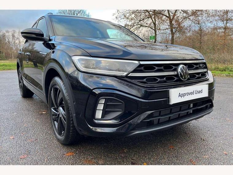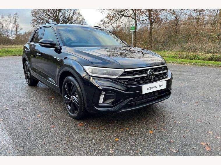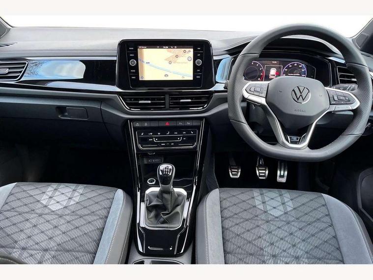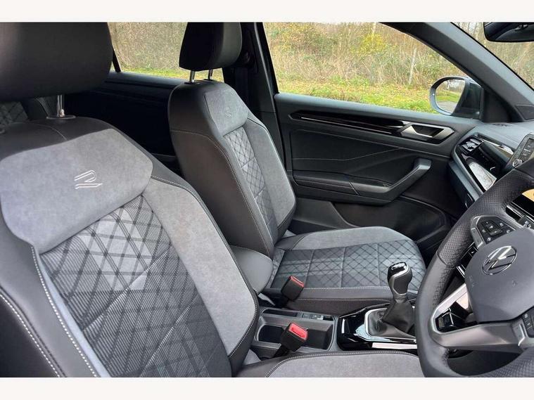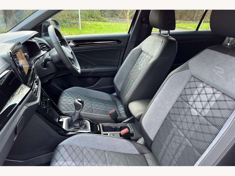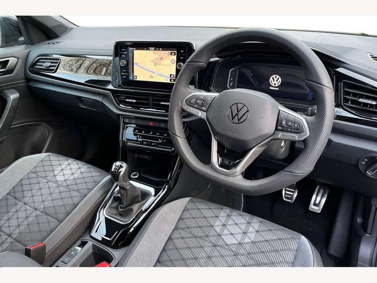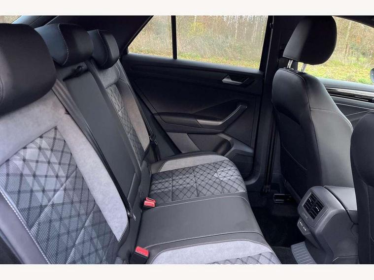 10.25" Digital cockpit pro, Advanced driver attention and drowsiness monitor, Emergency call service, Lane keeping system Lane Assist, Mobile phone interface, Modified key software - reduce switch off time for key status change to Long no motion, Online services, Park assist including front and rear parking sensors, Power assisted speed sensitive steering, Service interval indicator, Tailgate/trunk lid release from outside, Think blue trainer driver tips and journey analysis, Warning sound and light for front seatbelts unfastened, Wireless app connect, Battery regeneration during braking, Rear shock absorption chassis with increased ride height, Start/stop function with battery regeneration, DAB Digital radio, Diversity antenna for FM reception, Front and rear 6 speakers, Music playback - MP3, WMA and AAC files, Premium USB cable in choice of either Apple or Android smartphone compatibility, SD card slot, Simultaneous pairing of 2 compatible mobile devices, Title and cover art display, We Connect and We Connect Plus functionality, Auto dimming interior rear view mirror, Automatic hazard lights activation under emergency braking, Automatic headlight control with LED separate daytime running lights with coming/leaving home function, Dynamic cornering light, Electrically adjustable and heated door mirrors, Extended roof spoiler, Exterior mirrors aspherical on driver side, convex on front passenger side, External USB type C socket and charging sockets, Front windscreen wiper with intermittent wipe and 4 position delay, Heated rear window, Illuminated front grille, IQ LED matrix headlights, LED 3rd brake light, LED rear number plate lights, LED rear tail lights with dynamic turn signal, Light mode for poor weather, rain, fog or snow, Power windows with comfort operation and circuit breaker, R-Line design body coloured bumpers, Rain sensor, Rear exhaust tailpipe, Rear fog light on one side and reversing lights on both sides, Rear side wing doors, Rear wash/wipe with intermittent wipe setting, Remote electrically foldable door mirrors, puddle lights and reverse activated passenger's door mirror, 12V power socket in centre console, 3 rear head restraints, 3 seat bench in 2nd row, 4 load lashing points in luggage compartment, Air care climatronic air conditoning system with active combination filter and 2-zone temperature control, Artvelours cloth upholstery, Black roof lining, Chrome plated radiator grille inserts, air vent surrounds and light switch surrounds, Door and side trim panel with leatherette insert, Drawer under drivers seat, Driver seat height adjust, Driver's seat lumbar support, Front + rear carpet mats, Front centre armrest, Front comfort sports seats, Front cupholders x 2, Front footwell illumination, Front reading light, Front scuff plates with R Line logo, Front seat back storage pockets, Glove compartment door with light, Instrument lighting, white adjustable panel illumination, Interior ambient lighting and surround lighting, Interior light delay, Isofix child seat preparation, Leather gearshift handle, Load-through provision with cup holder when folded down ('Unsplit rear seat bench, split folding backrest, with centre armrest), Luggage compartment lighting, Non-folding front passenger seat backrest, Passenger seat height adjuster, Passenger seat lumbar support, Single front passenger seat, Stainless steel pedals, Storage compartment in left and right luggage area, Storage compartment in rear doors, Storage compartments in driver and front passenger doors, Sunvisors with illuminated vanity mirrors, Variable boot floor, height adjustable and removable, Winter pack without heated windscreen washer jets - T-Roc, 3 point height adj front seatbelts + pretensioners, 3 point seatbelts in outer rear with ECE label, ABS, Child locks on rear doors, City emergency braking and pedestrian monitoring, Driver and front passenger airbag with front passenger airbag deactivation, Driver and front passenger safety-optimised head restraints, Drivers seatbelt reminder, Electronic parking brake, Electronic Stability Control (ESC) inc EDL (Electronic Differential Lock) and ASR (Traction Control), Front and rear passengers curtain airbag system including front side airbags, Front disc brakes, Hill start assist, Predictive pedestrian protection, Rear disc brakes, Two tone horn, Tyre pressure loss indicator, Volkswagen roadside assistance, Tool kit, Trims for alloy wheels, Tyre mobility kit including compressor and sealing foam,