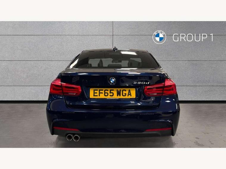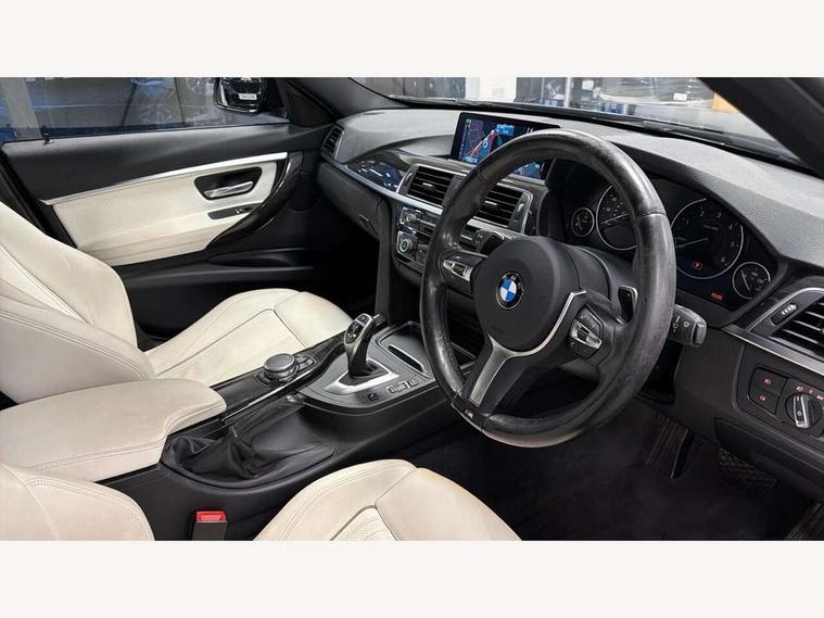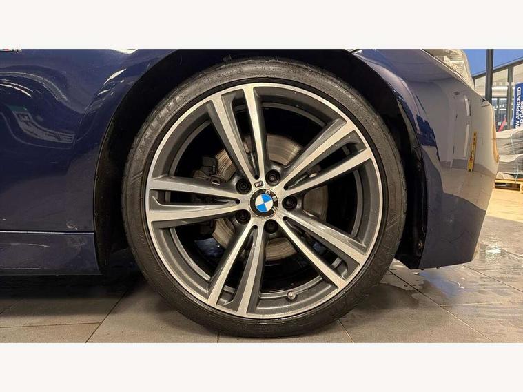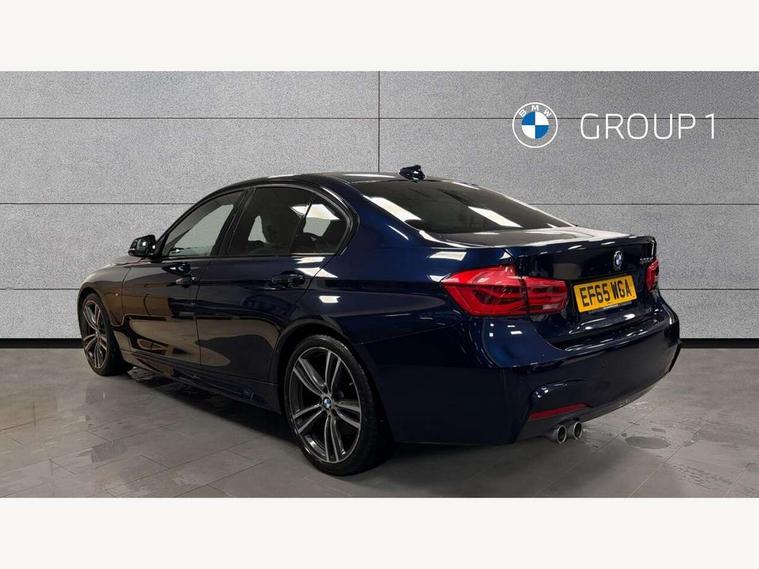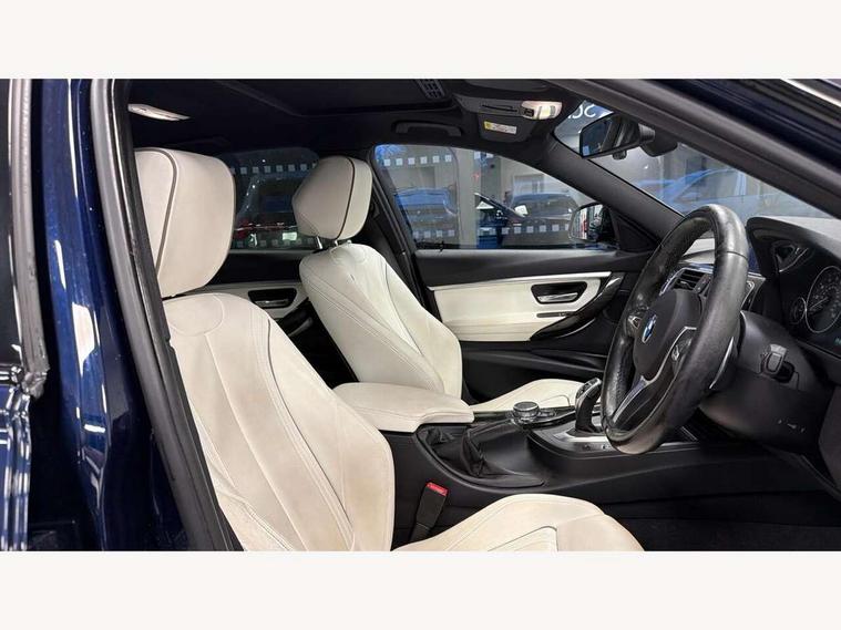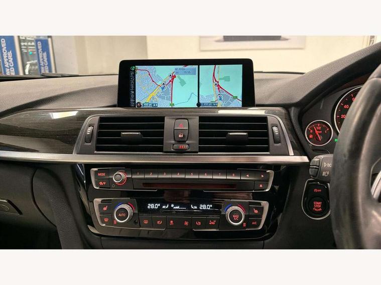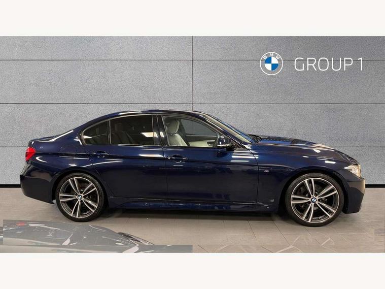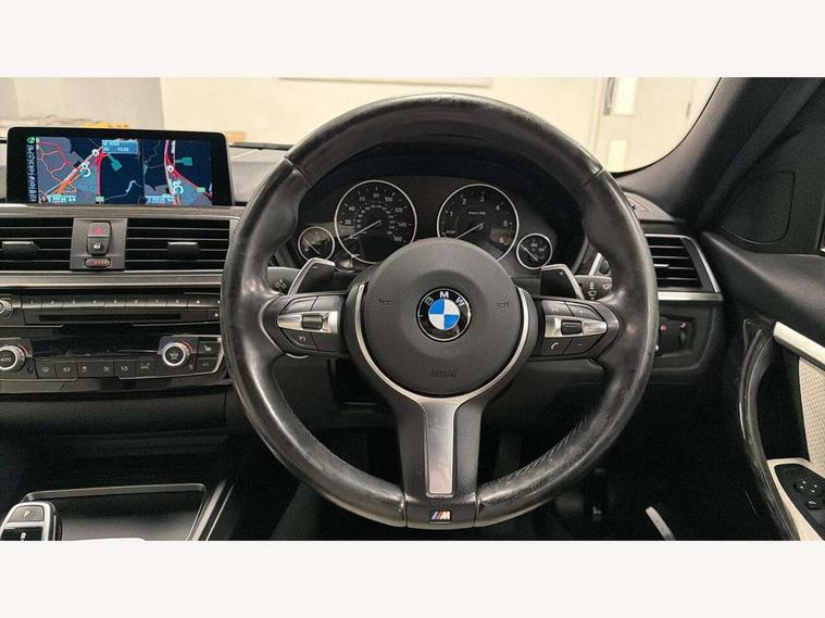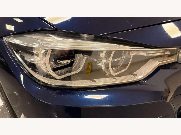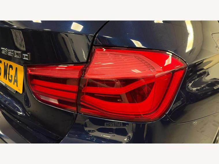 BMW Teleservices, Brake force display, Brake pad wear indicator warning light, Check control system, Digital clock, Door/boot open warning light, Front/rear park distance control, Lights on warning, Oil temperature gauge, On board computer, On board diagnostics, Operation warning of all exterior lights, Outside temperature display, Push button starter, Run flat tyre indicator, Service interval indicator, Traffic message channel (TMC), Diesel particulate filter, Drive Performance Control, Electronic differential lock, Sports function on gearbox with steering wheel mounted gearshift paddles, Auxiliary point for auxiliary devices, BMW professional radio/CD/MP3, CD Changer preparation, DAB Digital radio, 'Guide me home' headlamps, 2 speed adjustable intermittent wipers with wash/wipe function, Auto dimming rear view mirror, Automatic headlight beam throw control, Body colour bumpers, Body colour door handles, Body colour electric adjustable door mirrors, Body colour roof mouldings, Chromed finished twin exhaust, Clear indicator lenses, Door sill finishers, Dynamic brake lights, Electric front and rear windows with one touch/convenient open/close function, Front ornamental grille with chrome plated kidney bars and chrome bezel, Green tinted heat insulating glass, Heated rear window with automatic switch off, Heated windscreen washer jets, High gloss shadow line, LED daytime running lights, Rain sensor + automatic driving lights control, Shark fin roof aerial, 12V sockets in front centre console and passenger footwell, 2 x folding cupholders in instrument panel above glovebox, 3 rear seat head restraints, 4 foldable grab handles - rear with clothes hook, 4 lashing points to secure luggage, Automatic interior light soft on/soft off system, Driver and passenger sunvisors with vanity mirrors + slide cover, Dual zone automatic air conditioning, Folding front centre armrest + storage, Front and rear door armrests, Front and rear velour floor mats, Front door storage bins with bottle holder, Front sports seats with electric side bolster adjustment, Glovebox light, Height adjustable front headrests, Indirect front interior illumination - soft-light function, Individual anthracite headlining, Isofix system on outer rear seats, Leather gear knob, Leather gear selector lever handle, Leather handbrake grip, Lockable glovebox, Luggage compartment lighting, M sports leather steering wheel, Multi-function controls for steering wheel, Reach + rake adjustable steering column, Rear centre armrest with 2 cupholders, Rear storage compartment in multifunction centre console with sliding cover, Storage compartment in rear doors, Toolkit located in luggage compartment, Extended lighting package - 3 Series, 3 point inertia reel seatbelts + pre-tensioners on outer rear seats, ABS, Automatic Stability Control (ASC), BMW emergency call, Cornering brake control (CBC), Crash sensor, Driver and passenger airbags, DSC+, Dynamic brake control, Dynamic Traction Control - DTC, Front and rear head airbags, Front passenger airbag deactivation, Front seat side impact airbags, Front seatbelt pretensioners + load limiters, Hill start assist, Rear child proof door locks, Seatbelt warning, Three 3 point rear seatbelts, Twin horns, Tyre pressure monitor, Warning triangle and first aid kit, Automatic drive away locking facility, Central locking fuel filler cap, Centre lock switch, Electronic immobiliser, Key integrated remote control central locking, Remote control alarm, Low rolling resistance tyres, Run-flat tyres,