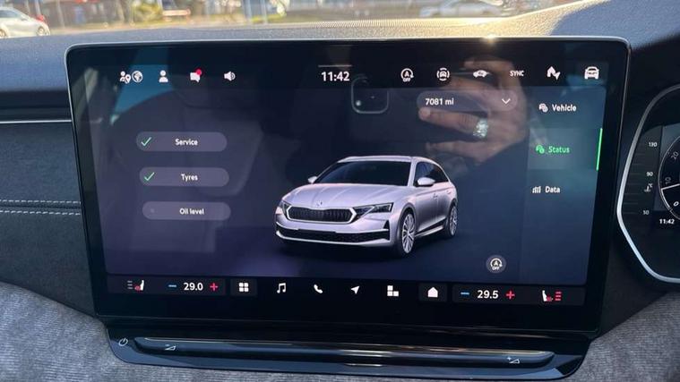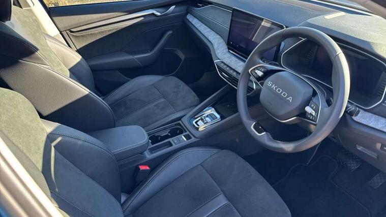 1x USB Typc C port in rear view mirror, 4x USB Type C ports - 2x in front centre console and 2x in rear (45W), Drive mode selection, Driver fatigue sensor, eCall emergency system, Electro-mechanical power steering, Front assist system, Traffic jam assist, Traffic sign recognition, Turn Assist, Virtual Cockpit - 10.25" digital display, Voice control system, Wireless charging (15W) with cooling function, Wireless SmartLink for Apple CarPlay and Android Auto, 13" touchscreen display with navigation, DAB Digital radio, Aero front windscreen wipers with intermittent function, Auto dimming rear view mirror, Body colour bumpers, Body colour door mirrors and handles, Chrome grille surround, Chrome roof rails, Chrome strip in lower front bumper, Chrome window surrounds, Electric front and rear windows, Heated rear windscreen, High level third brake light, Ice scraper in fuel cap, LED daytime running lights, LED Headlights, Logo projection in front doors, Rain and light sensors, Rear fog light on one side, Rear privacy glass, Rear side wing doors, Rear spoiler, Rear window wiper, 12 volt socket in boot, 3 rear headrests, 3 seat bench in 2nd row, 4 foldable roof handles, Front head restraints, Heated front seats, Illuminated glovebox, Interior door handles in dark chrome, Jumbo Box storage, Luggage compartment lighting x2 lights, Mechanical rear seat release from boot, Single front passenger seat, Steering wheel in black leather with black stitching, Storage compartments in left and right of boot, Sun visors with mirrors, Sunglasses storage, Ticket holder, Umbrella in door panel, Unsplit rear bench seat, split folding backrest with centre armrest with cupholder, Comfort package - Octavia Estate, Simply clever package premium - Octavia, 3x3 point rear seat belts, Alarm with interior monitoring, tilt sensor and back up horn, Curtain airbags and front side airbags, Driver and front passenger airbags, Drivers knee airbag, Electronic parking brake, ESC including ABS, EBV, MSR, ASR, EDS, HBA, DSR, Front central airbag, Hill hold assist, ISOFIX on front passenger seat and outer rear seats, Passenger airbag deactivate switch, Three point seat belts in front and rear, Two tone horn, Tyre pressure monitor, Visual and acoustic seat belt reminder, Warning reflectors in front door, Anti-theft wheel bolts, Keyless start/stop, Remote central locking, Chrome air vent surrounds,