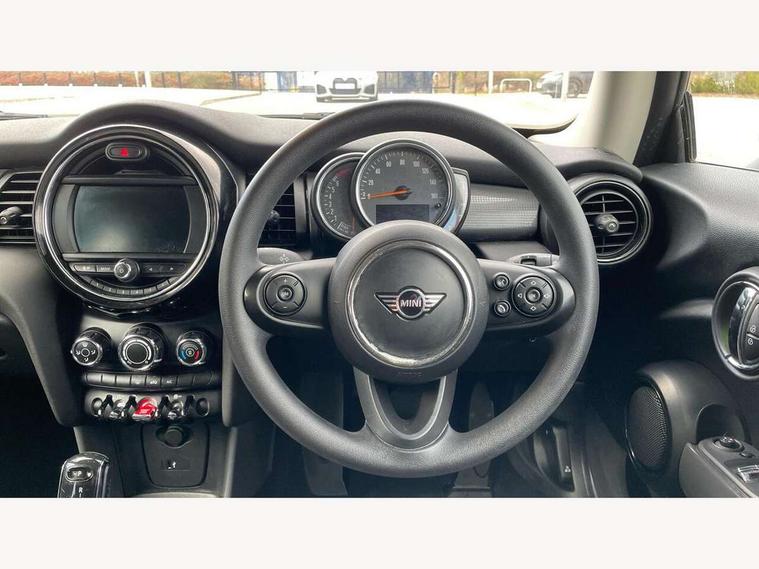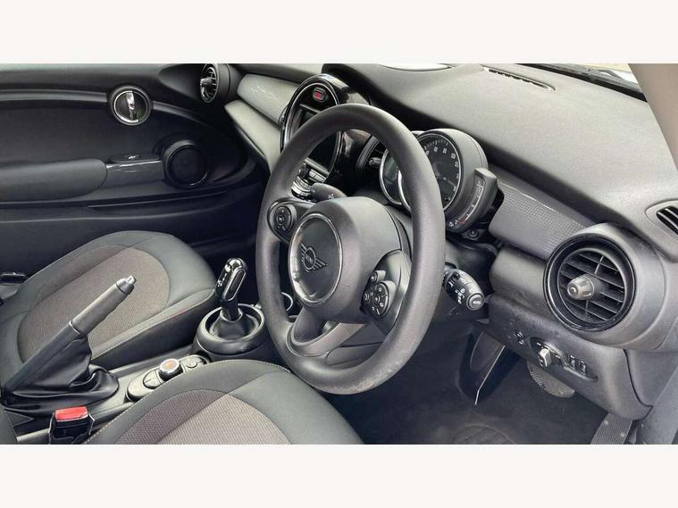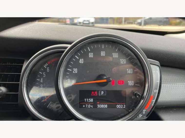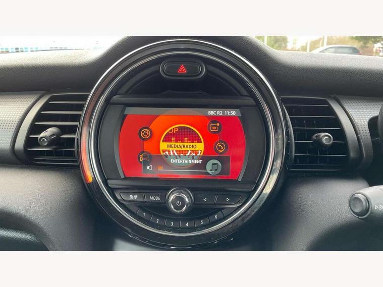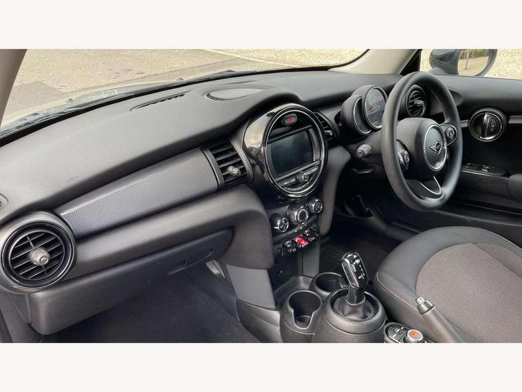 Compatible mobile phone bluetooth with audio streaming, Instrument cluster, Mini E-call, MINI TeleServices, On board computer, Service interval indicator, Steptronic transmission with double clutch, 6.5" touchscreen with LED ring, FM tuner and DAB digital radio, Automatic headlight activation switch, Body colour fuel filler cap, Chrome border high gloss black slats radiator grille, Dynamic brake lights, Electric front windows, Heated rear window, Heated windscreen washer jets, LED headlight with closed ring and daytime driving lights, Left exhaust tailpipe with chrome finisher, Metal door sill strips with MINI imprint, Model logo Cooper on right of tailgate, Rain sensor window wipers, Rear fog lights, Rear LED lights with union jack design, Rear window wiper, Side scuttle panel with integrated indicator, Sun/heat protection glass, White indicator lenses, 12V Accessory socket in centre console, 4 lashing eyes in luggage compartment, 60/40 split folding rear seat, Chrome interior highlights, Colour line - Carbon black, Cupholders, Front and rear isofix with front passenger airbag deactivation, Glove compartment, Height and length steering column adjustment, Interior lighting with 12 basic colours selectable via toggle switch in roof, Leather gearshift lever and handbrake gaiters, Manual air conditioning, Mechanical seat adjustment, driver seat height adjust, forward/back and front seats backrest, Mini logo projection on floor from drivers exterior mirror, Multifunction steering wheel, Satellite grey headlining, Storage compartments in doors, Sunvisors with vanity mirrors, 3 point seatbelts on all four seats, 6 Airbags - front, side, head and seat belt tensioners, Anti-lock braking system (ABS), DSC - Dynamic Stability Control, Front and rear disc brakes, Hill start assist, Single tone fanfare horn, Tyre pressure monitoring system, Alarm system with tilt sensor, monitoring doors, bonnet interior and tailgate, Electronic vehicle immobiliser, Start/stop toggle with keyless go, Tool kit,