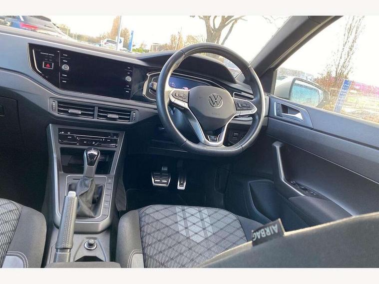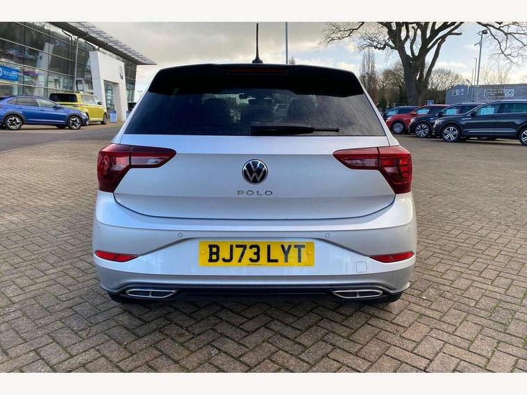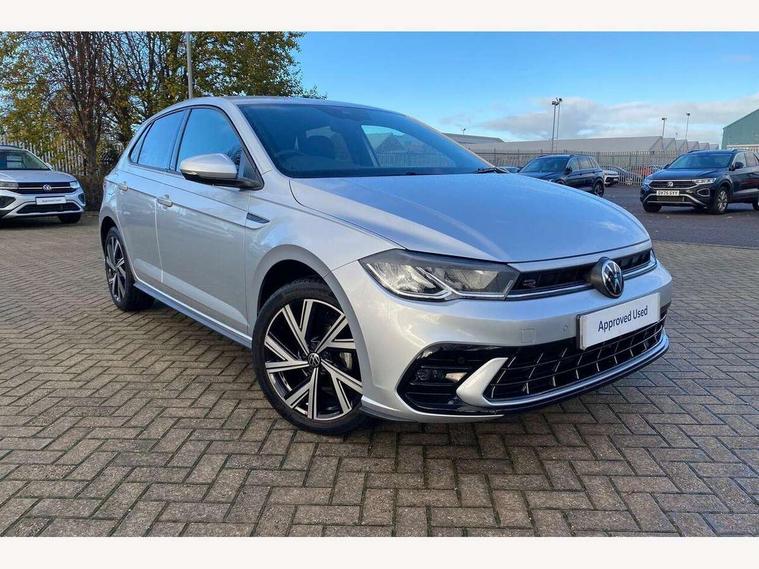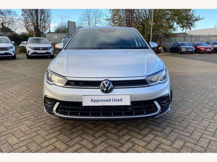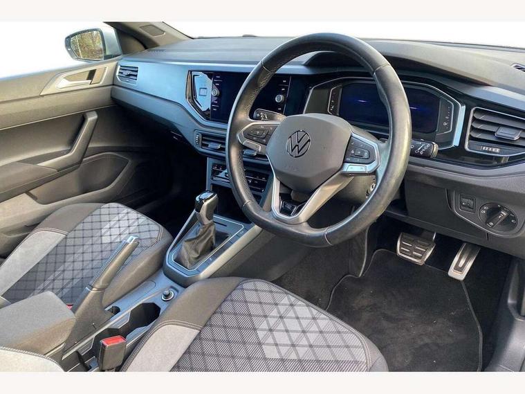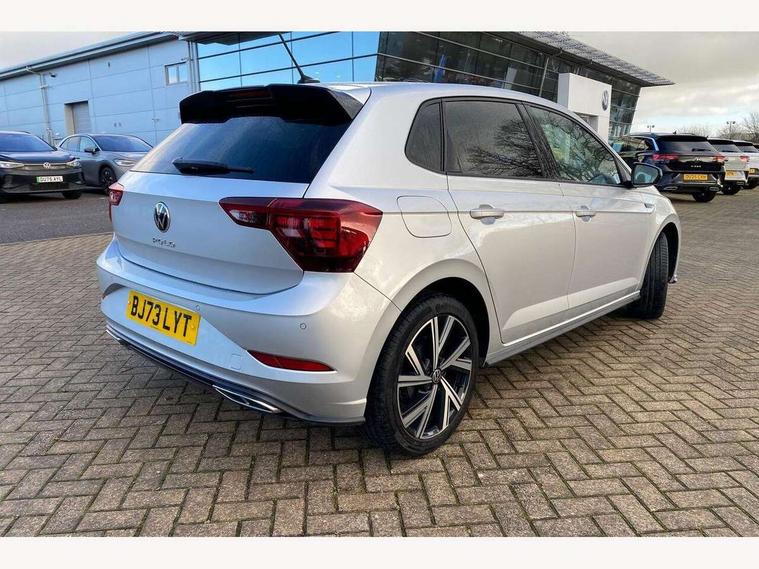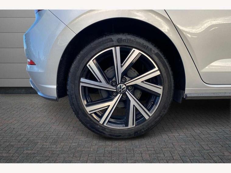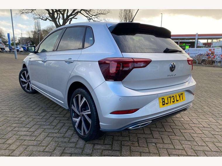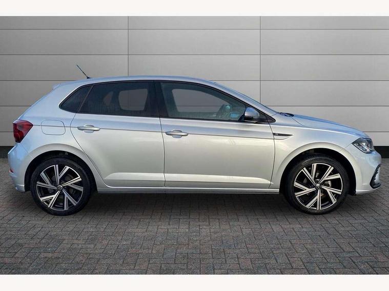Adaptive cruise control with follow-to-stop and speed limiter, Bluetooth mobile phone interface, Digital Cockpit Pro with 10.25" Display, Driver alert system, Dynamic road sign display, Emergency call service, Power assisted speed sensitive steering, Preparation for We connect and We connect plus, Speedo and rev counter, electronic odometer, trip, service interval display and fuel gauge, Standard rear axle, Travel Assist - Lane keeping system and traffic jam assist, Travel assist including emergency assist, Trip computer, Warning signal and warning light for front and rear seatbelts not fastened, Washer fluid level indicator, Wireless app connect, Front wheel drive, Rear shock absorpion, Start-stop system with battery regeneration (recuperation - energy recovery during braking), DAB Digital radio, Diversity antenna for FM reception, Front and rear 6 speakers, Body colour bumpers, Body colour door handles, Body colour door mirrors, Electric front windows, Front scuff plates with R-Line logo, Heat insulating darkened glass in side and rear windows, Heat insulating glass windscreen, Power folding adjustable/heated exterior mirrors and front passenger exterior mirror lowering function, Rear electric windows, Rear fog light, Rear side wing doors, Rear tinted glass from B-pillar backwards approx 65% tinted, Rear windscreen washer and wiper with interval delay, Third brake light, 12V power socket in centre console, 2 USB-C ports in the front, 2 USB-C charging sockets on the center console in the rear, 3 rear head restraints, 60/40 split folding rear seat and rear seat bench not split, Air care climatronic air conditoning system with active combination filter and 2-zone temperature control, Black roof lining, Chrome plated radiator grille inserts, air vent surrounds and light switch surrounds, Door and side trim panel, Driver and front passenger seat height adjustment, Driver/passenger sunvisors with illuminated vanity mirrors, Front + rear carpet mats in recycled material, Front centre armrest, Front footwell illumination, Front seat backrest storage pockets, Front sports comfort seats, Handbrake lever handle in leather, Headliner in recycled material, Isofix child seat preparation easy-fit (for two outer rear seats, and front passenger seat) compatible with I-size, Karoso artvelours cloth upholstery, Leather trimmed gear knob, LED interior light with switch off delay and dimmer, 2 reading lights front and rear, Luggage compartment cover, Luggage compartment floor, Luggage compartment lighting, Lumbar adjustment for front seats, Single front passenger seat, Stainless steel pedals, Standard pedal cluster, Three spoke leather wrapped multifunction steering wheel with shifting paddles, Light and sight pack - Polo R-Line/Black Edition, 3 point height adj front seatbelts + pretensioners, 3x3 point rear seatbelts, ABS, Driver and front passenger airbag with front passenger airbag deactivation, Drivers and front passengers safety optimised head restraints, ESC (Electronic stability control) + EDL (Electronic Differntial lock) and ASR (Traction control), Extended and predictive pedestrian/ cyclist protection, Front curtain and side airbags with center airbag, Hill hold control, Manual child lock in rear doors, Single tone horn, Tyre pressure loss indicator, Alarm with interior protection, Anti-theft alarm system with interior monitoring, backup horn, and towing protection, Anti-theft wheel bolts, Electronic engine immobiliser, Chrome applications on rotary light, mirror adjustment, window regulator switches, outlet with frame in black, Dark grey anodised matt decorative inserts in dash and front door panels, Low rolling resistance tyres,