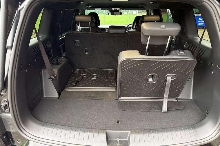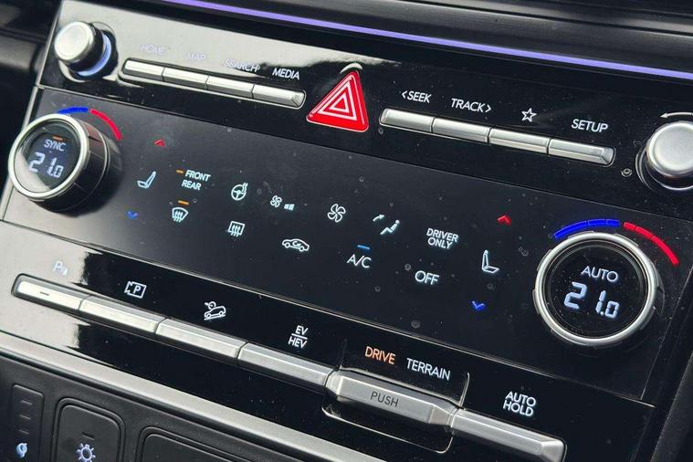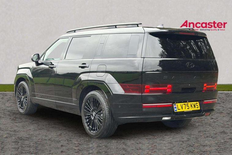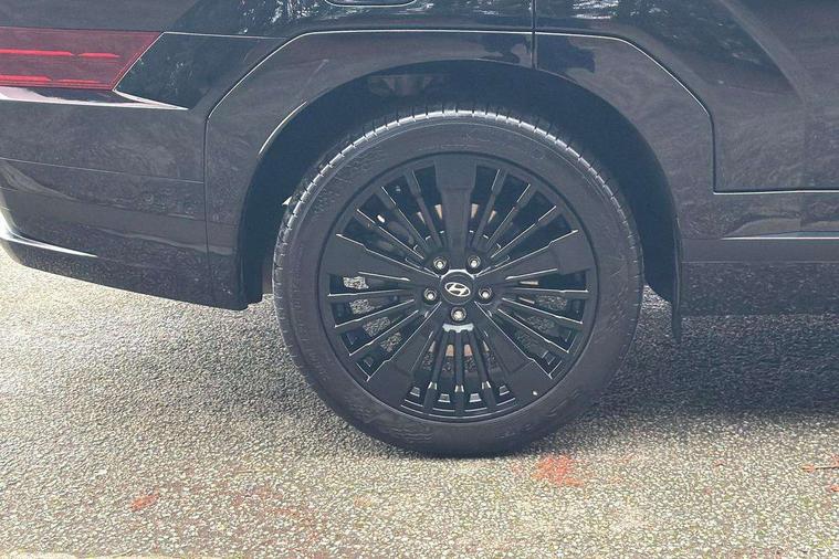 12.3" Drivers supervision instrument cluster with LCD display, 360 degree parking sensors, Blind spot collision avoidance assist (BCA), Blind spot view monitor (BVM), Bluelink and Wireless Apple Carplay/Android Auto, Bluetooth connectivity with voice recognition, Drive mode selector, Driver status monitor (DSM), Dual wireless phone charging pad, Emergency services call system, Forward collision avoidance assist (FCA 2.0), Head up Display, Highway drive assist 2 (HDA 2), Intelligent speed limit assist (ISLA), Lane departure warning system (LDW), Lane Follow Assist 2 (LFA 2), Lane keeping assist (LKA), Low washer fluid warning, Navigation based smart adaptive cruise control with stop and go, Over the air software updates (OTA), Parking Collision Avoidance Assist-Reverse (PCA-R), Power assisted steering, Remote smart parking assist, Safe exist assist (SEA), Smart electric tailgate with hand's free opening function, Surround view monitor, Self levelling suspension, Shift by Wire Gear Selector (SBW), 12.3" Touchscreen display with satellite navigation, 2nd Row USB C Ports x2 Charging, 3rd Row USB C Ports x2 Charging, Front USB C port 1 charging and 1 data/charging, Premium BOSE sound system with 12 speakers and subwoofer, Steering wheel audio, phone and cruise controls, Automatic headlights with dusk sensor, Automatic windscreen wipers with rain sensor, Black Styling (Skid plate, Fender upper garnish, Door side garnish, C/D pillars, Rear bumper moulding, DLO), Body colour bumpers, Digital centre mirror, Dynamic welcome lights, Electric adjustable/heated/auto power folding door mirrors, Front and rear electric windows, Heated rear window, Hidden C pillar assist handle, Hidden rear wiper, High beam assist, LED daytime running lights, LED Headlights, LED indicator lights, LED indicators in door mirrors, LED positioning lights, LED taillights, LED third brake light, Manual rear door blinds, Rear side wing doors, Rear windows and tailgate privacy glass, Roof rails, Solar glass windscreen and front windows, Windscreen acoustic film, Windscreen auto defog function, 2nd and 3rd row center armrest with cupholder, 3rd row head restraints, Centre rear head restraint, Driver and front passenger premium relaxation seats, Dual zone climate control air conditioning, Electrically adjustable front seats with 2 way electric lumbar support, Front head restraints, Front seats with memory, Heated front seats, Heated rear seats, Height and reach electrically adjustable steering column, Leather wrapped heated steering wheel, Luggage cover, Luggage hooks, Luggage net, Multi colour LED ambient lighting, Nappa leather upholstery, Rear head restraints, Single front passenger seat, Split folding (50/50) third row seats, Split folding (60/40), sliding and reclining second row seats, Sun Visors with driver and passenger illuminated vanity mirrors, Two front cup holders, UV-C Tray, Ventilated front seats, Trailer wiring pack - Santa Fe, 3 point seatbelts on all seats, Adjustable regenerative braking paddle shifters, Airbag - Front, front side, curtain and centre front airbags, Anti-lock brake system (ABS), Dynamic brake control, Electric parking brake with auto hold function, Electronic Stability Control (ESC), Hill start assist control (HAC), Manual child lock in rear doors, TSA (Trailer Stability Assist), Tyre pressure monitoring system, Immobiliser, Smart Key - Keyless entry with Power On/Off button, Black ink interior decals, 20" Black calligraphy alloy wheels, Tyre mobility kit,