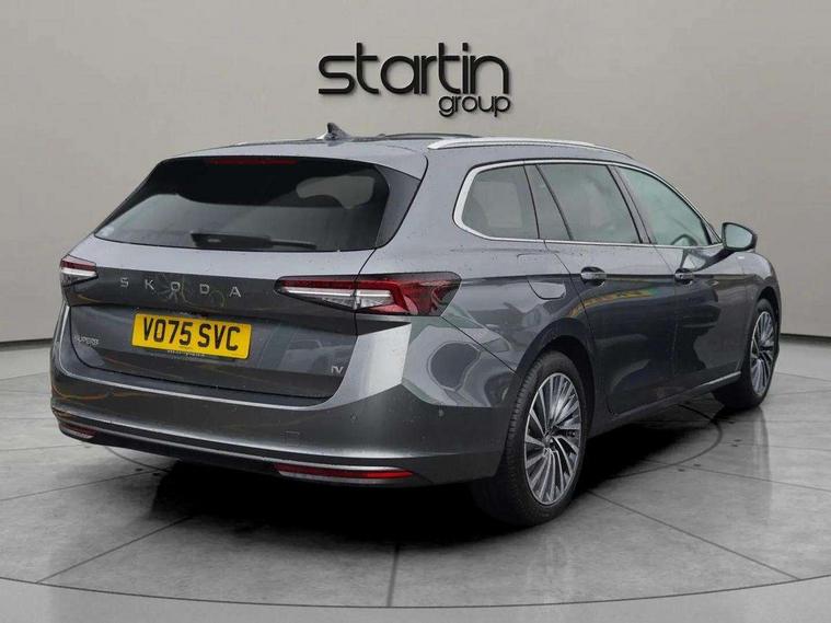 13" touchscreen display with satellite navigation, 4x USB-C ports (2x in front centre console and 2x in rear) (45W), Adaptive cruise control with speed assist, lane assist plus and traffic tram assist, Blind spot detection with door exit warning, Bluetooth system, CareConnect and Emergency Call, ChatGPT functionality, Drive mode selection, Driver fatigue sensor, Front assist with extended predictive pedestrian protection, Front cross traffic assist, PAS, Quick start all heating software functionality, Remote park assist, Stop/start engine system, Traffic sign recognition, Turn assist with evasive assistance, Virtual Cockpit - 10.25" digital display, Voice control system, Washer for rear camera, Wireless charging for one smartphone (15W) with cooling function, Wireless smartlink apple carplay, SmartLink+ android auto, Dynamic chassis control plus with progressive dynamic steering, Mode 3 charging cable, Canton sound system - 14+1 speaker, DAB Digital radio, Display cleaner, FM radio connection, Web radio connection, Acoustic side windows and interior noise suppression, Backdrop lighting, Body colour door handles, Body coloured door mirrors, Chrome roof rails, Chrome window surround, Dynamic range control with poor weather light and integrated fog light, Electrically adjustable, heated, folding and driver side auto-dimming door mirrors with memory function, integrated indicators and logo projection, Frameless auto-dimming rear view mirror with USB-C, Ice scraper in fuel tank cap, LED 3rd brake light, Light assist with High beam control, Light assistant (coming/leaving home/tunnel light), Privacy glass, Rear fog lights (x2), Rear roof spoiler, Rear side wing doors, Rear windscreen wiper, Unique dark chrome design logo on alloy wheels, Unique dark chrome grille surround with dark chrome rib elements, plus dark chrome rear diffuser strip, Windscreen wipers with rain sensor, 12V socket 1x centre console 1x boot, 14-way electrically adjustable, memory, front seats with 4-way pneumatic lumbar support, and extendable thigh support with smart comfort entry aid, 2x cargo elements in boot, 2x light in boot, 3 seat bench in 2nd row, 4x foldable bag hooks in boot, 60:40 Split folding rear seats, Advanced massage function for front seats, Bottle holders in the front doors 1.5 litre bottle and rear 1.5 litre bottle, Cup holder in front with easy open mat, Front armrest with storage box, Front sports comfort seats, Heated and ventilated front seats, Height adjustable front and rear head restraints, Illuminated glovebox, Interior lights with control switches, Isofix child seat fittings in outer rear and front passenger seats, LED front and rear reading lights, Single front passenger seat, Skoda lettering on steering wheel, Storage compartment with cover, Storage pockets on back of front seats, Sun visors with illuminated vanity mirrors, Ticket holder on A Pillar, Tri zone climate control, Umbrella in driver's door, Light and view package - Superb, Parking package - Superb, Transport package - Superb Estate, Winter package - Superb, 3 rear seatbelts, 8 Airbags - Front driver and passenger, front side driver and passenger, centre, curtain front and rear, drivers knee, Crew protect assist, Driver and passenger seatbelts with warning light, Electronic parking brake, ESC including ABS, EBV, MSR, ASR, EDS, HBA, DSR, RBS, CBC, multi-collision brake (MKB) and Auto hold, Hill hold assist, Power operated child lock in rear doors, Alarm with interior monitoring tilt sensor and back up horn, Backrest remote release from trunk, Electronic engine immobiliser, Keyless start/stop, Remote central locking with SAFE system, Third key, Walk away locking, Decorative front door sills, Tyre repair kit,