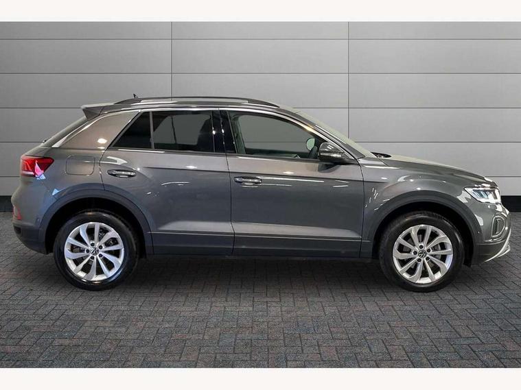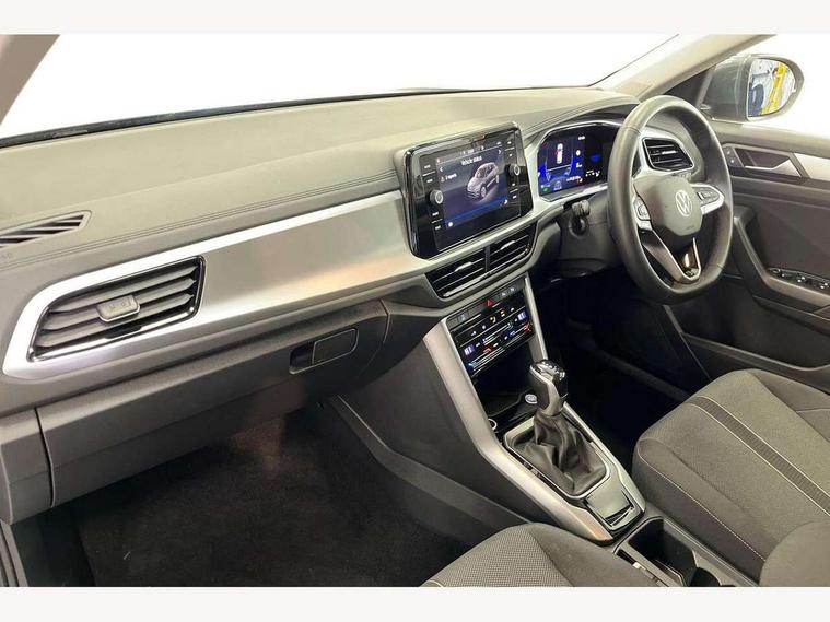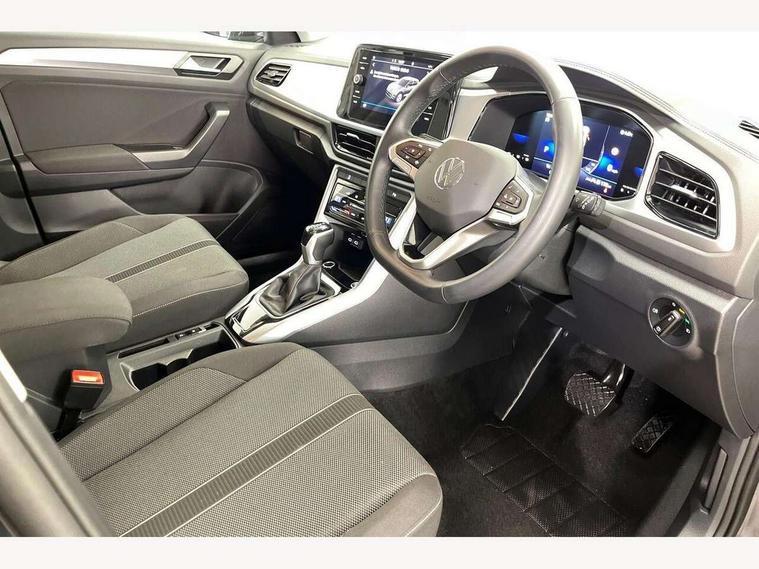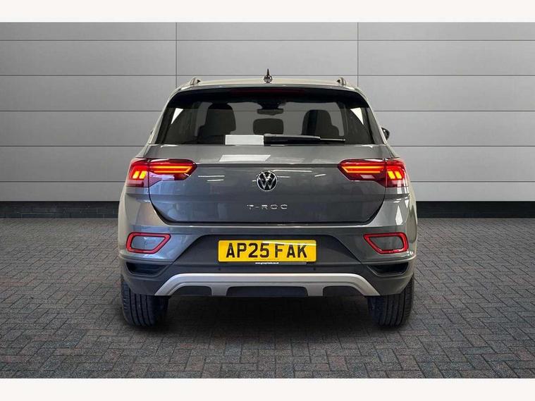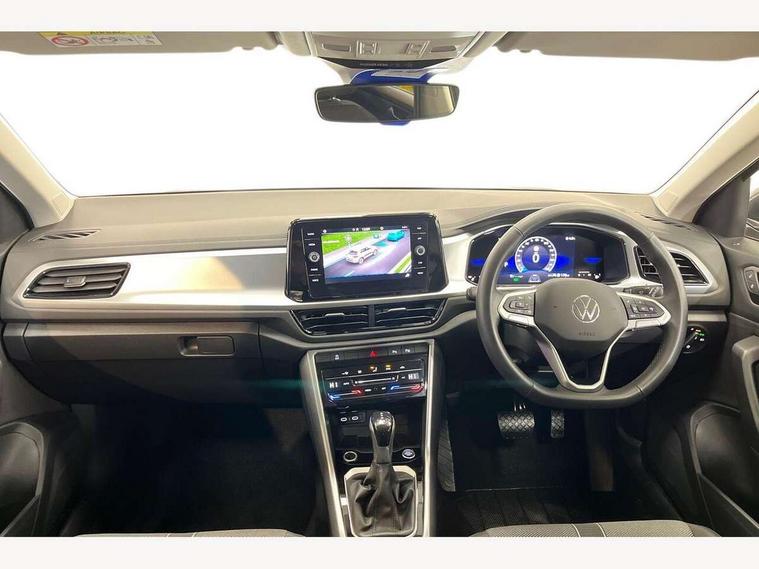 Advanced driver attention and drowsiness monitor, Dynamic road sign display, Emergency call service, Lane keeping system Lane Assist, Mobile phone interface, Modified key software - reduce switch off time for key status change to Long no motion, Online services, Park assist including front and rear parking sensors, Power assisted speed sensitive steering, Rear view camera, Service interval indicator, Tailgate/trunk lid release from outside, Think blue trainer driver tips and journey analysis, Warning sound and light for front seatbelts unfastened, Wireless app connect, Battery regeneration during braking, Front shock absorption, Rear shock absorption chassis with increased ride height, Start/stop function with battery regeneration, DAB Digital radio, Diversity antenna for FM reception, Music playback - MP3, WMA and AAC files, Premium USB cable in choice of either Apple or Android smartphone compatibility, SD card slot, Simultaneous pairing of 2 compatible mobile devices, Title and cover art display, We Connect and We Connect Plus functionality, Auto dimming interior rear view mirror, Automatic hazard lights activation under emergency braking, Automatic headlight control with LED separate daytime running lights with coming/leaving home function, Black roof rails, Body coloured bumpers and radiator grille with chrome trim and front fog lamps with chrome bezel, Body coloured exterior mirror housings and door handles, Electrically adjustable and heated door mirrors, Extended roof spoiler, Exterior mirrors aspherical on driver side, convex on front passenger side, External USB type C socket and charging sockets, Front windscreen wiper with intermittent wipe and 4 position delay, Heated rear window, LED 3rd brake light, LED rear combination lamps, LED rear number plate lights, Power windows with comfort operation and circuit breaker, Privacy glass for rear side windows and rear window, Rain sensor, Rear exhaust tailpipe, Rear fog light on one side and reversing lights on both sides, Rear side wing doors, Rear wash/wipe with intermittent wipe setting, Remote electrically foldable door mirrors, puddle lights and reverse activated passenger's door mirror, 12V power socket in centre console, 3 rear head restraints, 3 seat bench in 2nd row, 4 load lashing points in luggage compartment, Air care climatronic air conditoning system with active combination filter and 2-zone temperature control, Black stitching for floor mats, Ceramique roof liner, Cloth upholstery, Door and side trim panel in cloth, Drawer under drivers seat, Driver/front passenger seat height adjustment, Front centre armrest, Front comfort sports seats, Front cupholders x 2, Front reading light, Front seat back storage pockets, Glove compartment door with light, Instrument lighting, white adjustable panel illumination, Interior ambient lighting and surround lighting, Interior light delay, Isofix child seat preparation, Leather gearshift handle, Load-through provision with cup holder when folded down ('Unsplit rear seat bench, split folding backrest, with centre armrest), Luggage compartment lighting, Lumbar support for driver's and front passengers seat, Non-folding front passenger seat backrest, Single front passenger seat, Storage compartment in left and right luggage area, Storage compartment in rear doors, Storage compartments in driver and front passenger doors, Sunvisors with illuminated vanity mirrors, Variable boot floor, height adjustable and removable, Driver assistance pack without proactive passenger protection - T-Roc Life/Match, 3 point height adj front seatbelts + pretensioners, 3 point seatbelts in outer rear with ECE label, ABS, Child locks on rear doors, City emergency braking and pedestrian monitoring, Driver and front passenger airbag with front passenger airbag deactivation, Driver and front passenger safety-optimised head restraints, Drivers seatbelt reminder, Electronic parking brake, Electronic Stability Control (ESC) inc EDL (Electronic Differential Lock) and ASR (Traction Control), Front and rear passengers curtain airbag system including front side airbags, Front disc brakes, Hill start assist, Predictive pedestrian protection, Rear disc brakes, Two tone horn, Tyre pressure loss indicator, Volkswagen roadside assistance, Alarm with interior protection, Keyless locking and starting system keyless access with safelock, Pewter matt decorative inserts for intrument panel, centre console and door panels at the front, Trims for alloy wheels,