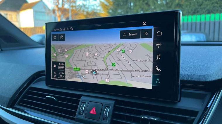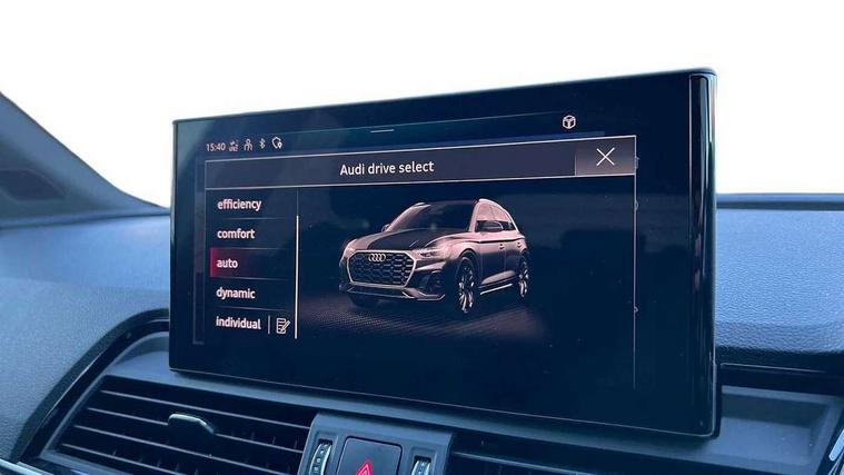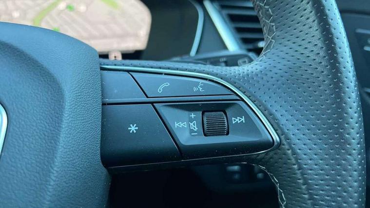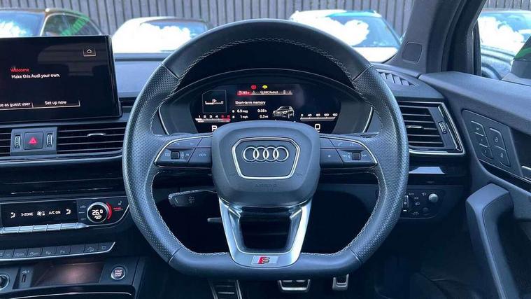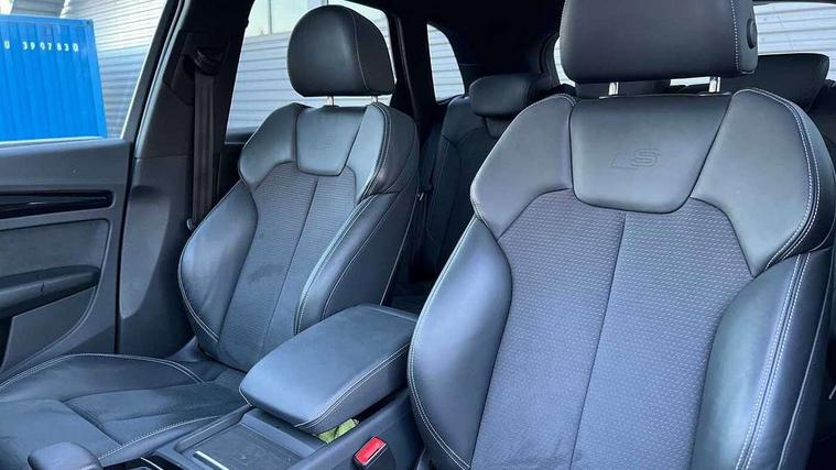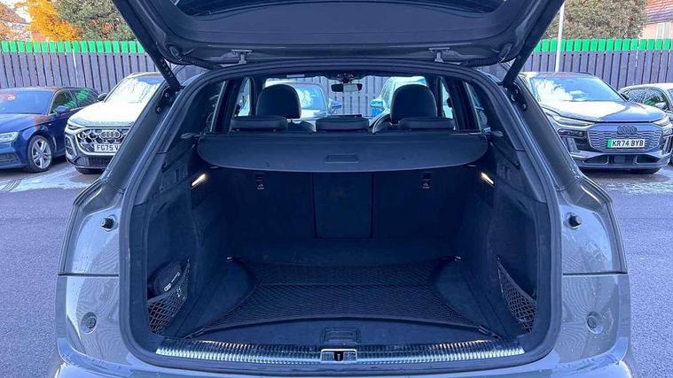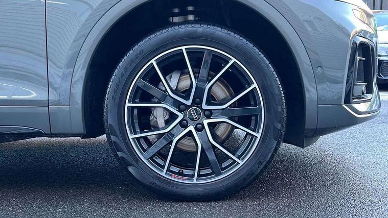 Acoustic front and rear parking sensor, Audi connect safety and service (e-call), Audi drive select, Audi virtual cockpit plus with 12.3" screen and three different layout designs, Audi wireless smartphone interface, Automatic start-stop system with coasting functionality and efficiency programme, Bluetooth interface, Camera based traffic sign recognition, Electro - mechanical power assisted steering, Lane departure warning, MMI navigation plus with 10.1" touch screen, Power tailgate, Reversing camera, Service interval indicator, Voice control system with Audi hotword activation "Hey Audi", Diesel particulate filter, Quattro on demand, S line sports suspension, 8 loudspeakers, DAB Digital radio, Acoustic windscreen, Auto dimming door mirrors, Auto dimming frameless rear view mirror, Automatic headlight adjustment, Automatic headlights and windscreen wipers, Black roof rails, Black styling with black rings, Body colour bumpers, Body colour rear diffuser with matt aluminium silver surrounds, Body colour underbody protection, Chrome plated exhaust trims, Daytime running lights, Door sills in Selenite silver, Electric adjustable/heated/folding door mirrors, Front air inlet surrounds in aluminium, Front and rear electric windows, Front radiator grille in honeycomb design, LED 3rd brake light, LED headlights and LED tail lights, Lower bumpers painted in contrast Manhattan grey, Rear chrome trim strip below lights, Rear privacy glass and rear side windows, Rear side wing doors, Rear wiper, Roof bars, S Line badges on the front wing panels, S Line front and rear bumpers, S Line rear spoiler, S Line side skirts, 2 x USB charging port with aux input socket, 3 rear headrests, Black cloth headlining, Comfort front centre armrest, Contrast stitching on seats, steering wheel and gear lever gaiter, Deluxe 3 zone electronic climate control, Front head restraints, Front sport seats with S embossed logo, Front/rear floor mats, Gear lever in black leather, Heated front seats, Height/reach adjustable steering column, Illuminated door sill trims with S logo, Loading edge protection in stainless steel, Luggage compartment cover, Manual seat adjustment with 4-way electric lumbar support, Single front passenger seat, Stainless steel pedals, Sunvisors with vanity mirrors, Tool kit, Top surface of the rear centre armrest in artificial leather, High gloss pack - Q5, LED interior light pack - Q5, 3 point seatbelts on all seats, 6 airbags - Driver, front passenger, curtain and side airbags, Attention and drowsiness assist, Electrically operated child locks on rear doors, Electromechanical parking brake, Electronic stabilisation control including ABS, ASR and EDL, First aid kit with warning triangle and vests, Front passenger airbag deactivation, Hill descent control, Hill hold assist, ISOFIX child seat mounting for front passenger seat and ISOFIX child seat mounting with Top Tether for outer rear seats, Multi collision brake assist, Pop-up bonnet for pedestrian protection, Pre sense city, Seatbelt monitoring, Tyre pressure warning, Anti theft alarm, Anti-theft wheel bolts, Remote central locking, Remote control key with SAFELOCK and keyless go, Air vents inserts and centre console in gloss black, Tyre repair kit,